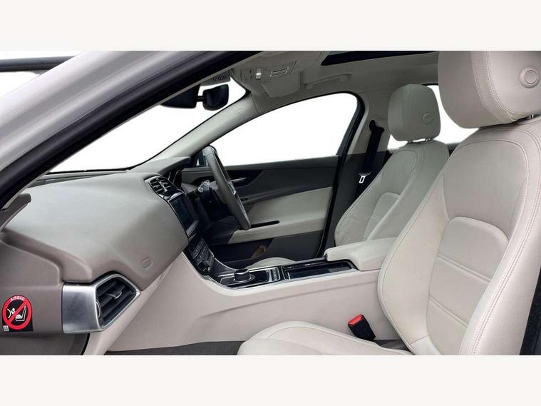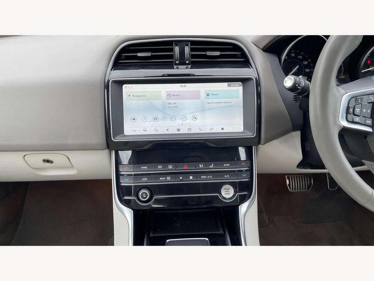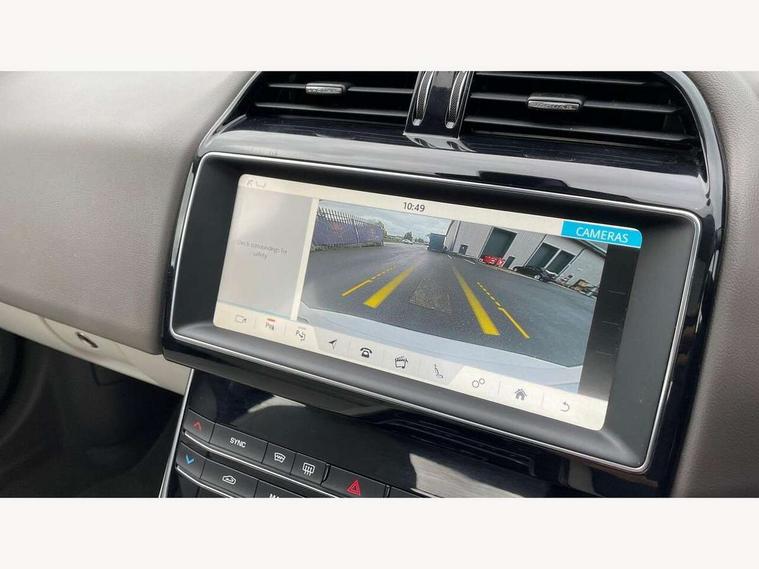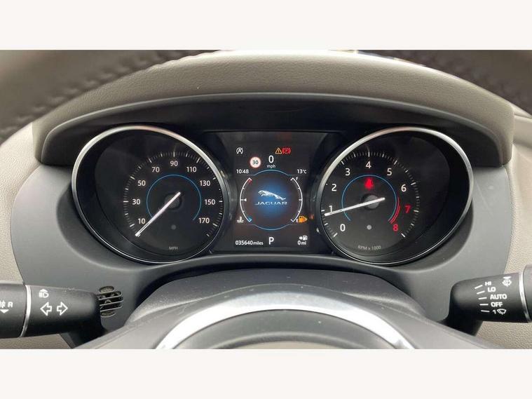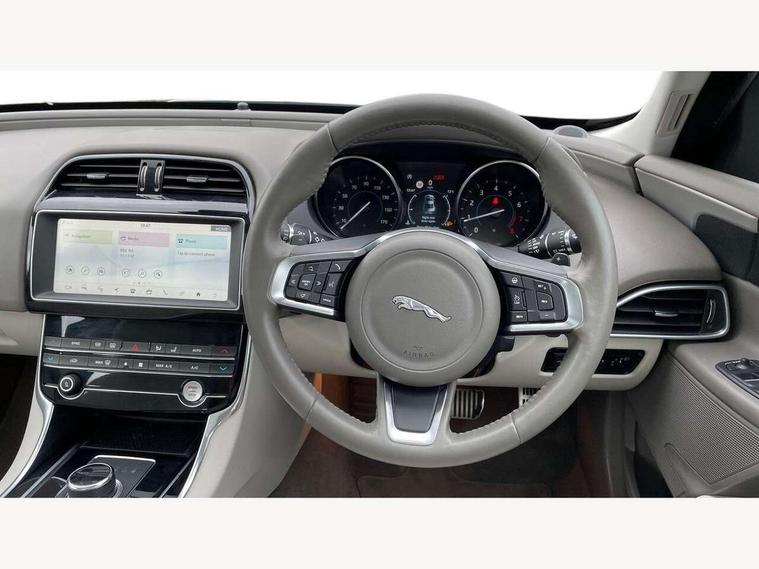 Analogue dials with 7" central TFT display, Bluetooth telephone connectivity, EPAS, InControl remote premium, Lane departure warning system, Outside temperature gauge, Pro services and wifi hotspot, Push button starter, Satin chrome surround on touch screen, Service interval indicator, Traffic sign recognition with adaptive speed limiter, Trip computer, Voice control system, Bluetooth audio streaming, Dynamic volume control, InControl apps, InControl protect, USB/aux input socket, Approach lamps, Auto dimming interior rear view mirror, Automatic headlamps, Body colour bumpers, Body colour door mirrors, Chrome side power vents, Chrome side window surrounds, Daytime running lights, Electric front/rear windows with one touch/auto up/down, Green tinted heat insulating glass, Heated rear windscreen, LED tail lights, Rain sensing windscreen wipers, Trailer stability assist, Variable front intermittent wipers, 12V socket in front and rear, 3 rear seat head restraints, Bright metal foot pedals, Chrome seat switches, Chrome tread plates, Dual zone automatic climate control, Front and rear reading lights, Front centre armrest with storage compartment, Front map lights, Illuminated glovebox, Illuminated trunk, Isofix child seat mountings in rear, JaguarDrive selector, Lockable glovebox, Luggage tie-down hooks, Multifunction sports steering wheel, Overhead console with sunglasses holder, Premium carpet mats, Rear air vents, Rear armrest with twin cupholders, Shopping hook in boot, Sliding cover on front cupholder, Soft grain sport leather steering wheel, Standard seats, Storage compartment in front doors, Storage compartment in rear doors, Sunvisors with illuminated vanity mirrors, ABS, All surface progress control (ASPC), Anti-whiplash front headrests, Autonomous emergency braking, Brake pad warning light, Driver/Front Passenger airbags, DSC - Dynamic Stability Control, Electronic parking brake, Emergency brake assist, Front and rear seatbelt reminder, Front passenger seat occupancy sensor, Front side airbags, Hill start assist, Pedestrian contact sensing and deployable bonnet, Power child locks, Side curtain airbags, Three 3 point rear seatbelts, Torque vectoring brake, Traction control, Tyre pressure monitoring system, Driver's central locking switch, Immobiliser, Locking wheel nuts, Perimeter alarm, Remote central locking, Smart key start system, Standard instrumental panel topper,