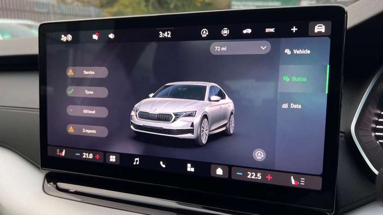1x USB Typc C port in rear view mirror, 4x USB Type C ports - 2x in front centre console and 2x in rear (45W), Driver fatigue sensor, eCall emergency system, Electro-mechanical power steering, Front and rear parking sensors with manoeuvre assist, Front assist system, Traffic sign recognition, Turn Assist, Virtual Cockpit - 10.25" digital display, Voice control system, Wireless charging (15W) with cooling function, Wireless SmartLink for Apple CarPlay and Android Auto, 13" touchscreen display with navigation, 8 Speakers, DAB Digital radio, Aero front windscreen wipers with intermittent function, Auto dimming rear view mirror, Black window surrounds, Body colour bumpers, Body colour door mirrors and handles, Chrome grille surround, Chrome strip in lower front bumper, Electric front and rear windows, Heated rear windscreen, High level third brake light, Ice scraper in fuel cap, LED daytime running lights, LED Headlights, Manually operated boot, Rain and light sensors, Rear fog light on one side, Rear side wing doors, 12 volt socket in boot, 3 rear headrests, 3 seat bench in 2nd row, 4 foldable roof handles, Dual zone air conditioning, Front head restraints, Heated front seats, Illuminated glovebox, Interior door handles in dark chrome, Jumbo Box storage, Luggage compartment lighting x2 lights, Parcel shelf - folding, Single front passenger seat, Steering wheel in black leather with black stitching, Storage compartments in left and right of boot, Sun visors with mirror for driver, Sunglasses storage, Ticket holder, Umbrella in door panel, Unsplit rear bench seat, split folding backrest with centre armrest with cupholder, 3x3 point rear seat belts, Alarm with interior monitoring, tilt sensor and back up horn, Curtain airbags and front side airbags, Driver and front passenger airbags, Drivers knee airbag, Electronic parking brake, ESC including ABS, EBV, MSR, ASR, EDS, HBA, DSR, Front central airbag, Hill hold assist, ISOFIX on front passenger seat and outer rear seats, Manual rear child locks, Passenger airbag deactivate switch, Three point seat belts in front and rear, Two tone horn, Tyre pressure monitor, Visual and acoustic seat belt reminder, Warning reflectors in front door, Anti-theft wheel bolts, Keyless start/stop, Remote central locking,