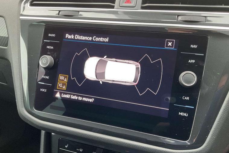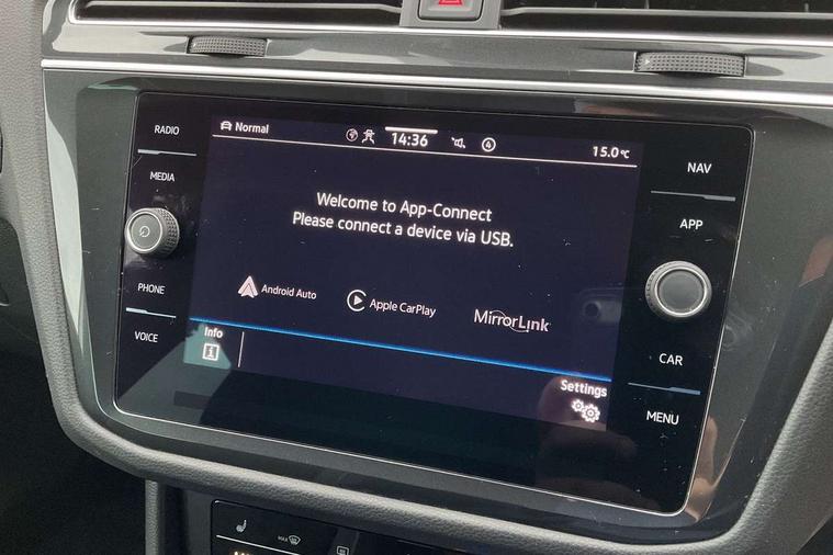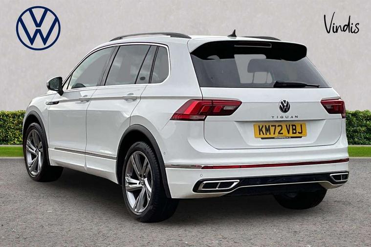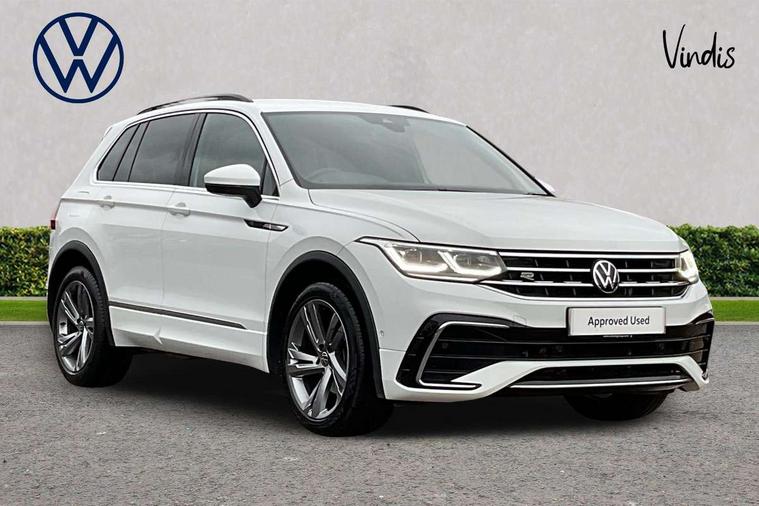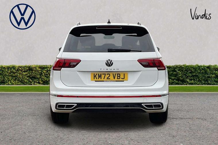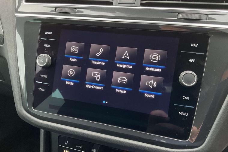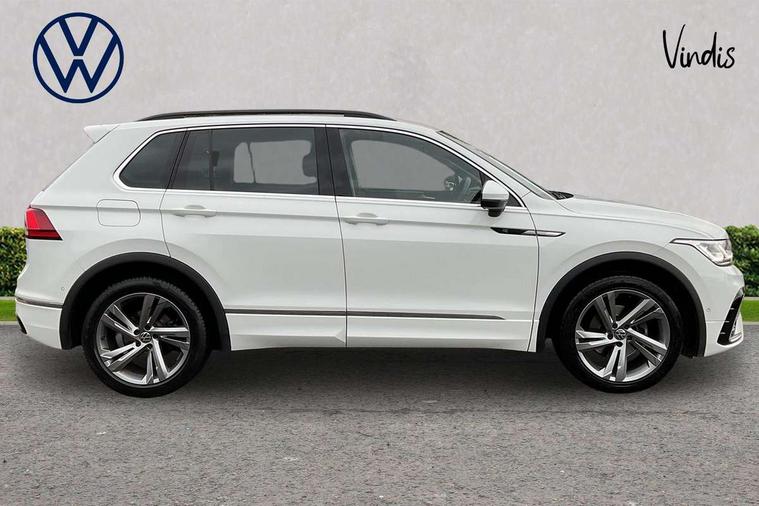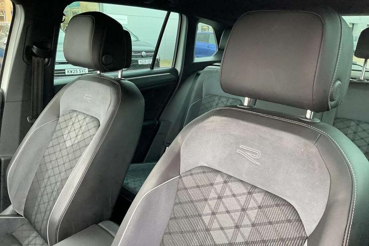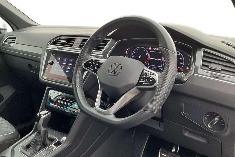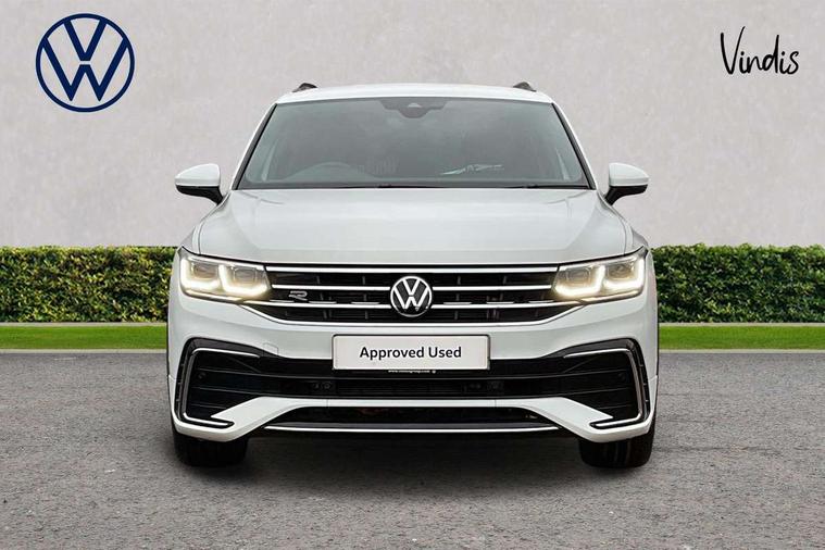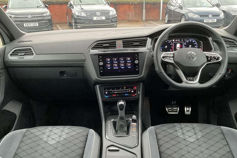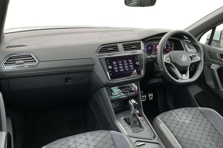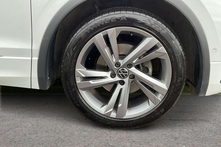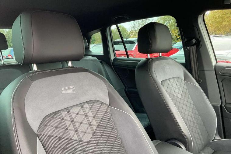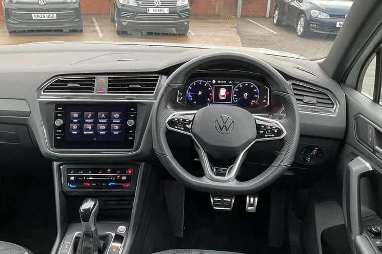 Adaptive cruise control ACC stop and go including speed limiter, App-Connect incl. App-Connect Wireless for Apple CarPlay and Android Auto, Bluetooth phone integration system, Comfort drive travel assist, Digital cockpit pro, Driver alert system, Driver profile selection, Dynamic road sign display, eCall emergency call system, Electromechanical speed sensitive power steering, Emergency assist, Front and rear parking distance sensors, Instrument cluster mph speedometer Great Britain, Lane keeping system Lane Assist, Lights on warning, Multifunction front facing camera, Outside temperature display, Premium multifunction display with multi colour display, Preparation for subsequent activation Navigation feature Discover Media includes Streaming and Internet, Remote control boot opening, Rev counter, Service interval indicator, Speed limit display, Start/stop system with regenerative braking, Tailgate/trunk lid unlocking from outside, Trip computer, Warning sound and light for doors and tailgate open, Battery regeneration during braking, Sports suspension, 8 Speakers, Digital radio reception DAB+, Diversity antenna for FM reception, Radio, Auto dimming interior rear view mirror, Automatic headlight control system, Body colored bumpers in R-Line style, Body colored exterior mirror housings, Body colour door handles, Chrome moldings on the side windows, Coming/leaving home lighting function, Dynamic headlight range control, Front and rear electric windows, Heated rear window, High level 3rd brake light, Laminated safety glass windshield, heat and sound insulating, LED headlamps with LED separate daytime running light and dynamic cornering light, LED rear combination lamps, LED rear number plate lights, License plate carrier in front and rear, Poor weather light and cornering light, Power adjustable, folding and heated door mirrors with surround lighting, front passenger exterior mirror lowering function, Privacy glass for rear side windows and rear window, R Line body kit, R Line side sills, Rain sensor, Rear exhaust tailpipe, Rear fog lamp, Rear side wing doors, Rear spoiler in R style, Rear windscreen washer and wiper with interval delay, Side and rear windows in heat insulating glass, Trailer Stability Programme, Unique R Line badging, Windscreen wipers/ intermittent wipe + 4 position delay, 12V outlet in center console rear and in luggage compartment, 12V outlet in front and tray, 2 LED front reading lights, 2 LED rear reading lights, 3 bench rear seats in 2nd row, 3 rear headrests, Air Care Climatronic 3 zone automatic climate control with enhanced air filter and controls in the rear, Art Velours greyson sports cloth upholstery, Backrest release for left front seat, Black headlining, Brushed stainless steel pedals and footrest, Carpet mats in front and rear with decorative stitching in Gray, Climate control unit rear with touch function, Door and side trim panel in foam film, insert in leatherette, Driver + front passenger lumbar support, Front footwell illumination, Front scuff plates in aluminum with R-Line logo, Front seats head restraints (x-adjustment), Height adjustable front seats, Height/reach adjust steering wheel, Isofix Preparation 2 Rear child seats, Leather gear knob, Rear bench seat asymetrically split folding, longitudinally movable and folding with load-through hatch and center armrest, Remote unlocking for rear seat backrest, Single front passenger seat, Sun visors with illuminated vanity mirrors, Top front comfort seats, Winter pack - Tiguan, 3 point seat belt for centre rear seats, 3 point seat belts with seat belt pretensioners for the outer rear seats, Curtain airbags for front and rear passengers, Driver/Front Passenger airbags, Drivers knee airbag, Electronic parking brake with auto hold, Electronic Stability Control with driver steering recommendation, ABS, ASR, EDL, EDTC and trailer stabilization, Front assist with autonomous emergency braking (for Adaptive Cruise Control ACC up to 130 mph), Front disc brakes, Front passenger airbag deactivation, Front side airbags, Height adjustable front 3 point seatbelts + pretensioners, Manual child proof rear door locks, Pedestrian monitoring system, Proactive passenger protection system in combination with front assist, Rear disc brakes, Two tone horn, Tyre pressure loss indicator, Warning sound and light for front seat belts if unfastened, Warning triangle, Anti theft alarm system with interior monitoring, backup horn and towing protection, Anti theft wheel bolts, Electronic engine immobiliser, Keyless locking and starting system keyless access with safelock, Chrome elements on the mirror switch power window switches and door pulls, Decorative inserts Carbon Gray for dashboard and front door trim panels, Interior door handle in matte chrome, 19" Valencia alloy wheels with AirStop tyres, Tool kit, Tyre mobility kit Includes 12V compressor and tyre sealant,