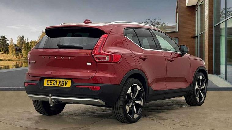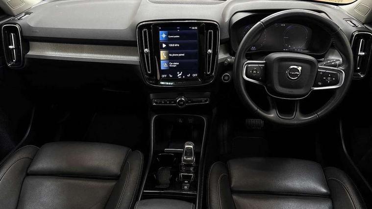 12.3" Active TFT crystal driver's instrument display, 9" centre console portrait touch screen, Adjustable steering wheel force, Bluetooth hands free telephone kit, Drive mode selector, Lane keep assist with driver alert control, Oncoming Lane Mitigation, Power operated tailgate, Sensus navigation with European mapping and traffic information, Speed limiter, Speed sensitive steering, Voice activated control for key functions, Volvo on call, 7m 10amp charge cable with 3 pin plug and 7m 1 phase 16amp type 2/mode 3 charge cable, Dynamic chassis, Electric front axle drive, Recharging port located in nearside front wing, DAB Digital radio, Low speed exterior sound speaker, Steering wheel mounted remote controls, Adaptive brake lights with high level LED brake lights, Auto dimming interior mirror, Automatic headlamp levelling, Chrome window surround, Colour coordinated auto folding and heated power door mirrors, Dual exhaust pipes, Front aluminium tread plates, Front and rear electric windows, Heated front windscreen, Heated washer nozzles, High gloss black front grille with chrome inserts, High gloss black sensus surround deco, High Gloss silver front and rear skid plate, Home safe and approach lighting, LED Headlights + Active high beam incorporating daytime running lights, Rain sensor with automatic windscreen wiper activation, Rear side wing doors, Rear wiper, Roof antenna, Roof spoiler, Silver roof rails, Visible VIN plate, 12V socket in front tunnel console and luggage compartment, 2 zone electronic climate control and rear air vent, 3 seat bench in 2nd row, 3 spoke leather steering wheel with chrome trim, 60/40 versatile split folding rear seat, A-pillar parking ticket holder, Bright metal luggage threshold, Centre console cupholders and storage, Driver's side lower dashboard credit card storage compartment, Front footwell illumination, Front headrests, Front reading light and theatre lighting, Front seat cushion extensions, Glovebox bag hook, Heated front seats, Height/reach adjustable steering column, Height/tilt adjustable driver's seat, High gloss centre tunnel deco, Illuminated glovebox, Illuminated luggage compartment, Illuminated vanity mirrors, Isofix attachments on outer rear seats, Key integrated remote, Leather faced upholstery, Load protection net, Luxury floor mats, Orrefors Crystal gear lever knob, Power driver seat with memory + exterior mirrors memory, Power passenger seat, Rear armrest / integral cup holders / storage tray, Rear coat hook, Single front passenger seat, Underfloor cargo storage, Lighting pack - XC40, Park assist pack - XC40, 3x3 point rear seatbelts, City safety includes pedestrian, cyclist and large animal detection and front collision warning with full auto brake, Drivers knee airbag, Dual stage driver/passenger airbags, Electronic parking brake with auto hold, First aid kit, Front and outer rear seatbelt reminder and pretensioners, Front seats SIPS airbags, Hill descent control, Hill start assist, Inflatable curtain, Passenger airbag cut-off device, Road sign information display, Run off Road Mitigation, Run off Road Protection, SIPS (Side Impact Protection System), Slippery road and hazard light alert, Stability and Traction Control with Spin control, Engine Drag Control and Corner Traction Control, Tyre pressure monitoring system, Vehicle deceleration control with Anti-lock Brake System, Electronic Brake Distribution and Emergency Brake Assist, Warning triangle, WHIPS whiplash protection system - front, Anti-theft alarm including immobiliser/volume sensor + level sensor, Care key with user defined top speed, Key integrated remote control central locking + fuel flap with deadlocking system and auto open/close power windows, Locking wheel nuts, Private locking for tailgate, Driftwood inlays,