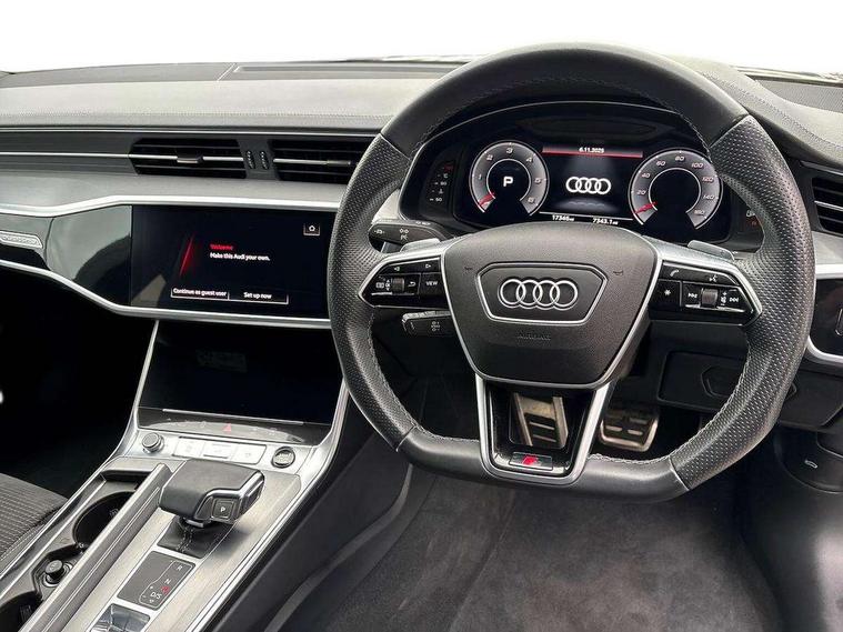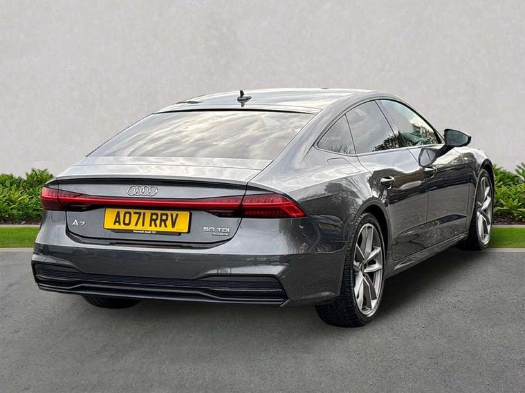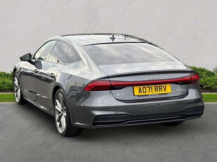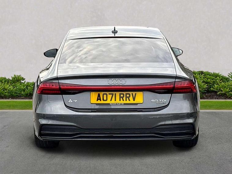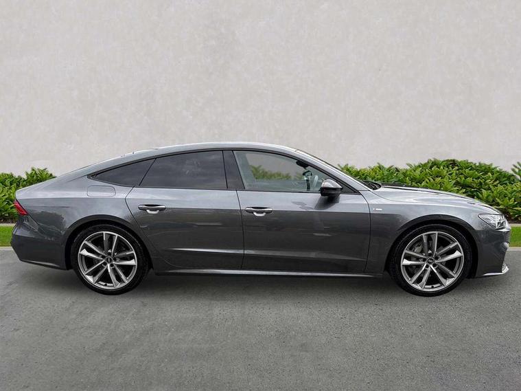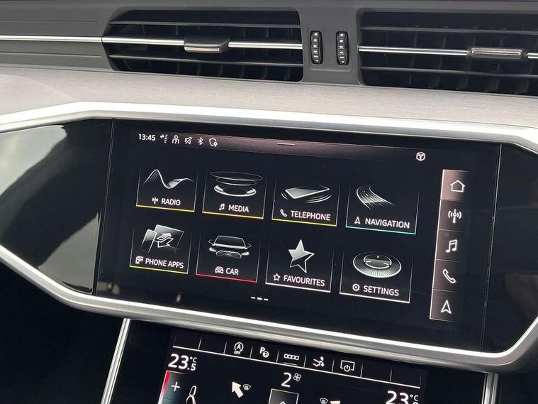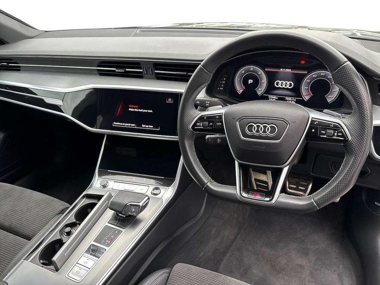Audi connect safety and service (e-call), Audi connect with Amazon Alexa Integration, Audi drive select, Audi parking system plus - acoustic and visual park assist system for front and rear, Audi smartphone interface, Audi virtual cockpit - 12.3" high resolution LCD digital instrument cluster display, Automatic start/stop system with coasting functionality, Bluetooth interface, Colour driver's information system display, Electric boot lid release, Lane departure warning system, MMI nav plus with MMI touch + 10.1" and 8.6" HD haptic touch screen/3D city models/country information/online map/route info and personal route assist, Operating buttons in black, glass look with haptic feedback, Power operated tailgate, Progressive steering, Rear view camera, Service indicator, Voice control system, 24 litre AdBlue tank, Diesel particulate filter, Quattro all wheel drive with self locking centre differential, Sports suspension, Audi music interface - 2 USB ports with charger and data functions, Audi sound system with 6 channel amplifier, 180 watt amplifying capacity and 10 loudspeakers including subwoofer, Auxiliary input socket, DAB digital radio module, Coming/leaving home animations in front and rear, Electrically adjustable, heated and folding door mirrors with driver memory function and integrated LED indicators, Frameless auto dimming interior rear view mirror, Front and rear electric windows, Gloss black exterior mirror housings, Gloss black highlights on the exterior area of the Audi Single frame, Gloss black highlights on the front and rear bumpers, Gloss black highlights on the radiator grille, Gloss black highlights on the side windows trim strips, HD Matrix LED headlights with dynamic front and rear indicators, Headlight washers, Heat insulating darkened glass in side and rear windows, LED rear lights, Rain and light sensors, Retractable rear boot spoiler, S line air inlet design with inlay in high gloss black, S Line badge on front fender, S line badge on front grille, S Line Black rear diffuser with chrome inlays and rear grille, S Line side skirts, Signature LED daytime running lights, Towbar preparation, Windscreen with heat-insulating glass, 2 zone deluxe electronic climate control, 4-way electric lumbar support, 40/20/40 split folding 3 seater rear seat bench with rear centre armrest, Black cloth headlining, Electrically adjustable front seats - driver seat with memory, Front and rear headrests, Front centre armrest, Heated front seats, Height/reach adjust steering wheel, Illuminated door sill trims with S logo, Illuminated sun visors with vanity mirrors, ISOFIX child seat mounting and top tether in front and outer rear seats with front passenger airbag deactivation, Leather gear knob, Leatherette upper instrument panel and door shoulders, Luggage compartment floor, S line front and rear floor mats with contrast stitching, Stainless steel pedals and foot rest, Tool kit and car jack, LED interior ambient lighting pack - A7, Non smoking pack - A7, 3 point seatbelts on all seats, Audi pre-sense front, Driver and passenger airbags, Electromechanical parking brake, Electronic stabilisation control including ABS, ASR and EDL, Extended pedestrian protection measures, Hill hold assist, Seatbelt monitoring, Tyre pressure warning light, Warning triangle and first aid kit, Anti theft alarm with tow away protection, Anti-theft wheel bolts and wheel loosening detection, Immobiliser, Keyless Go, Preparation for tracking system, Remote central locking, Carbon twill inlays, 20" 5 double arm design Audi sport cast aluminium high sheen matt titanium look alloy wheels,