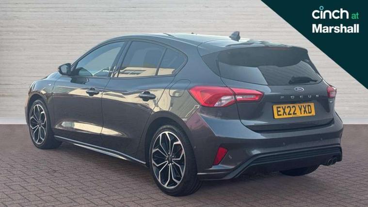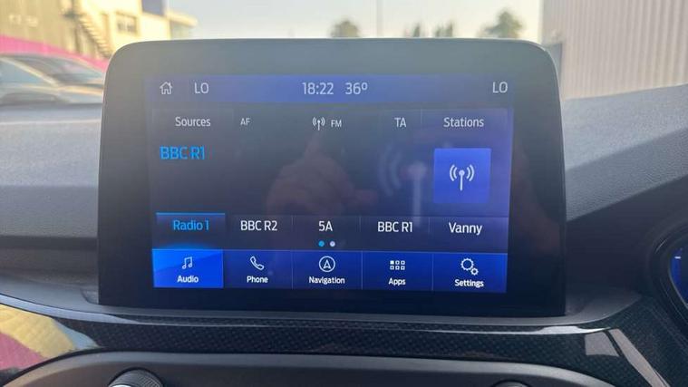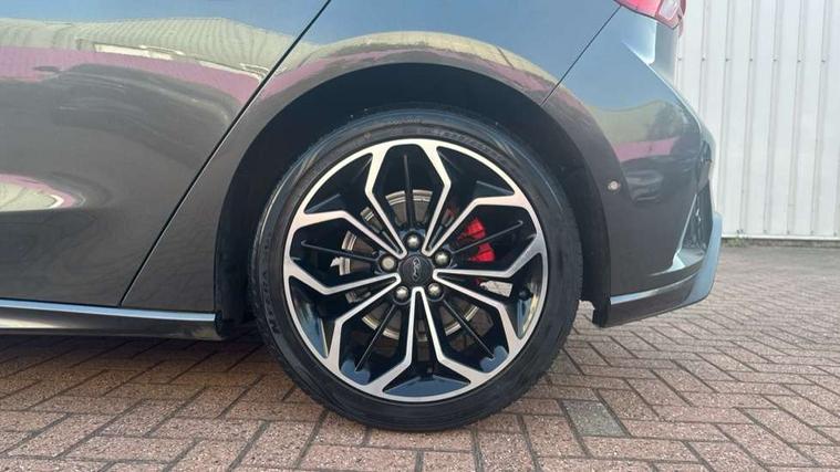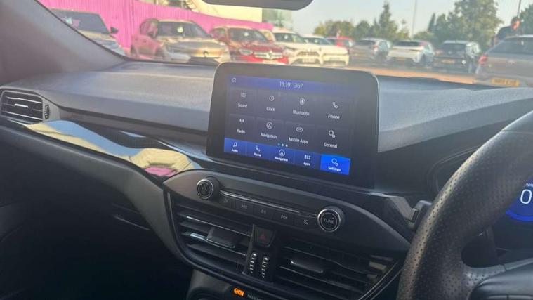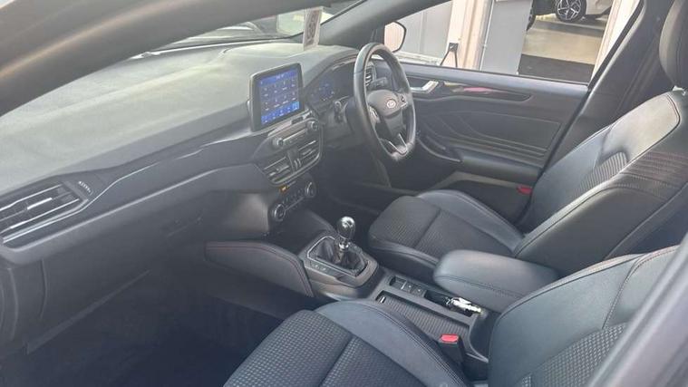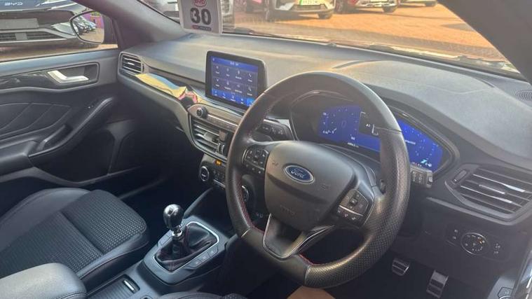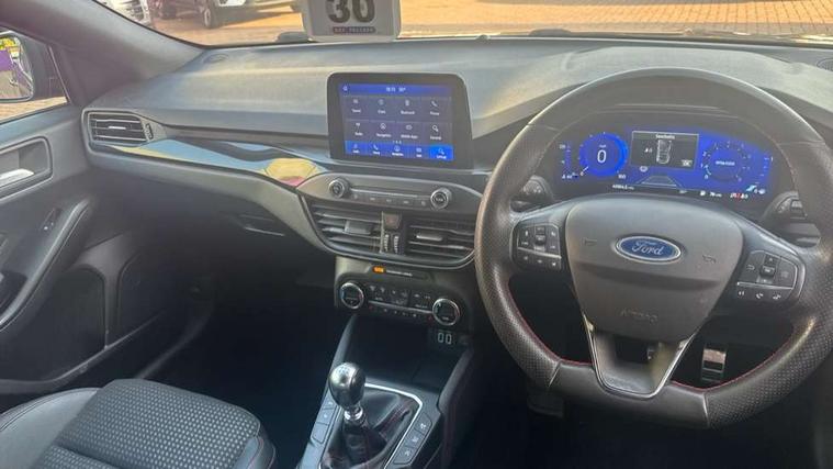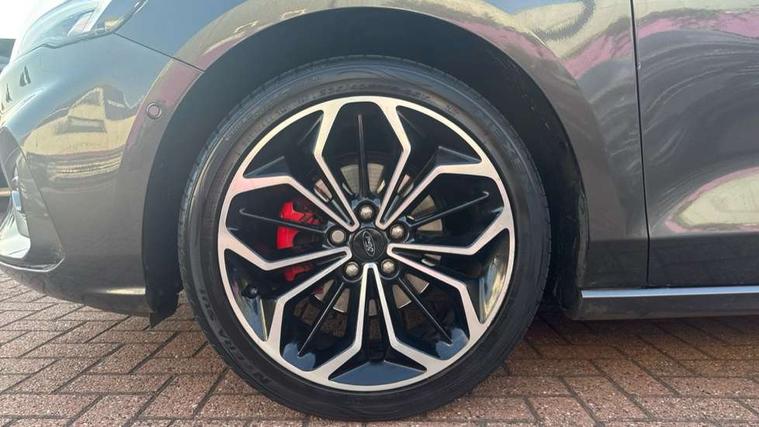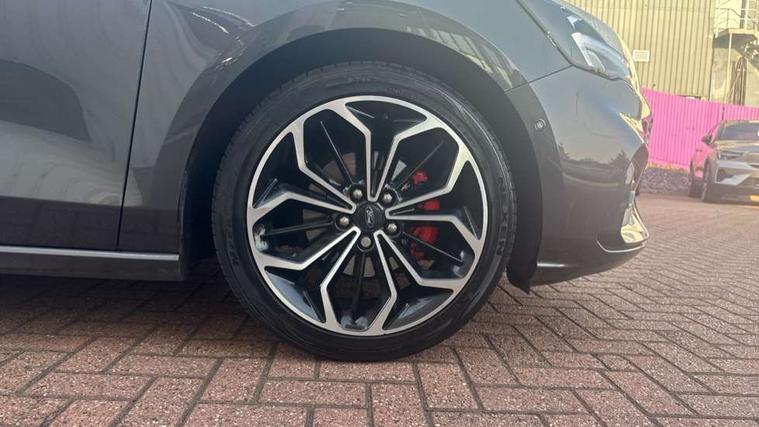 12.3" Digital instrument cluster, Bluetooth system, Digital clock, E-call, Easy fuel capless refuelling system, Eco mode, Ford SYNC 3 navigation with 8" TFT touchscreen, DAB radio and app link Android auto/Apple carplay, Intelligent speed assist, Lane keeping system - lane keeping alert and lane keeping aid, PAS, Selectable drive mode, Trip computer, Sports tuned suspension, 2 USB ports, Aux input, Auto dimming rear view mirror, Auto headlamps (on/off), Automatic rain sensing wipers, Body colour large rear spoiler, Body coloured bumpers, Body coloured door handles, Body coloured electrically operated and heated door mirrors with side indicators, Electrically operated front and rear windows with one touch opening and closing, Front variable intermittent wipers with electric wash, Heated rear window, LED daytime running lamp, Polished twin tailpipe, Power folding door mirrors with puddle lights, Quickclear heated windscreen, Rear privacy glass, Rear side wing doors, ST-Line upper and lower grille with full body styling kit and wing badges, Tailgate wash/wipe, Third brake light, Unique door and instrument panel inserts, 3 seat bench in 2nd row, 3 spoke flat bottomed Sensico steering wheel with red stitching, 6 way power adjustable driver seat, Aluminium gear knob, Dark headliner, Driver's lumbar support, Dual zone electronic air temperature control, Front and rear floor mats with red stitching, Heated driver and front passenger seats, Heating for Sensico steering wheel, Height adjustable front headrests, Isofix child seat preparation, Reach + rake adjustable steering column, Rear centre headrest, Sensico premium upholstery, Single front passenger seat, Soft console knee pads with red stitching, 3x3 point rear seatbelts, ABS+Electronic Brake force Distribution, Auto hold function, Driver airbag, Electronic parking brake, Electronic stability control, Front and rear seatbelt reminder, Front inertia reel height adjustable seatbelts with pre-tensioners, Front passenger airbag, Front side airbags, Hill start assist, Passenger airbag deactivate switch, Post collision braking, Pre collision assist with autonomous emergency braking and pedestrian/cyclist detection, Remote/power child rear door locks, Side curtain airbags, Three rear inertia reel lap/diagonal seatbelts, Tyre pressure monitoring system, Ford keyfree system with Keyless entry and keyless start/sleep mode key fob, MyKey system, Remote central locking & engine immobiliser, Thatcham category 1 alarm, 18" 5x2 spoke gloss black machined finish alloy wheels, Mini steel spare wheel,