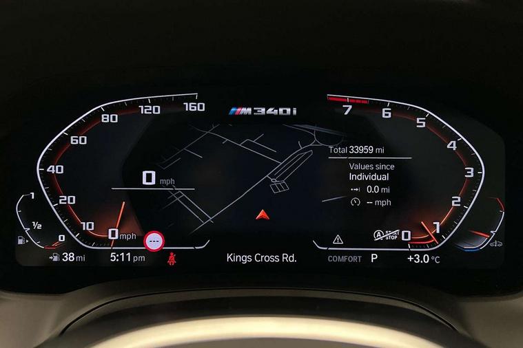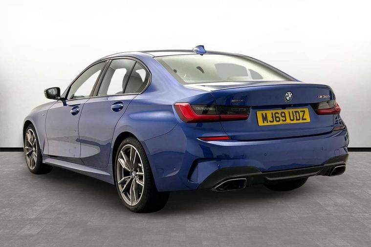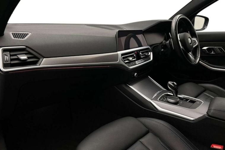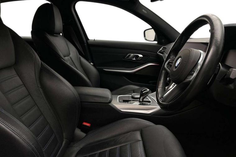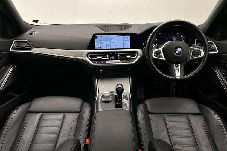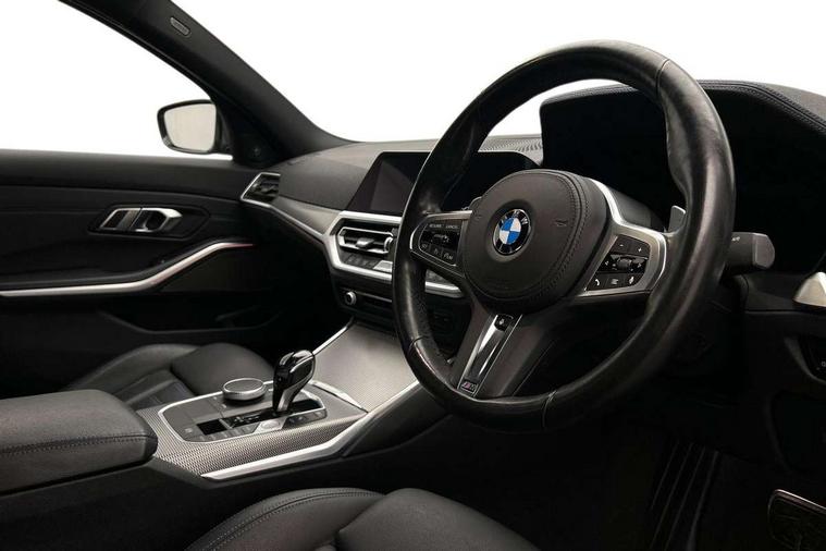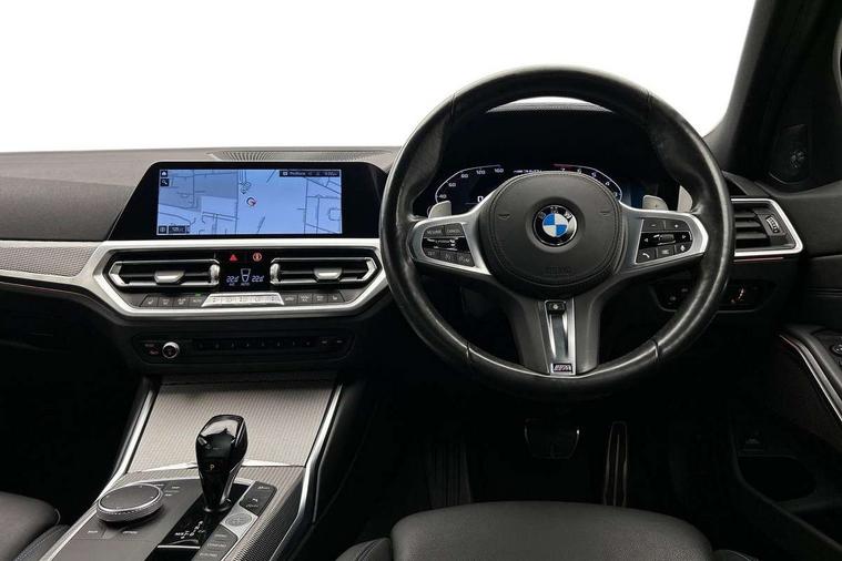 Active guard plus, Attentiveness assist, Auto start-stop, BMW ConnectedDrive online services, BMW iDrive controller on centre console, BMW Live Cockpit Professional sat nav system including 10.25" high resolution display and Intelligent Voice Assistant, BMW service history, BMW Teleservices, Brake pad wear indicator in front and rear, Check Control warning system for monitoring of lights and door/luggage compartment open warning, Condition based service, Instrument cluster with speedometer with mph readout, tachometer, fuel gauge and oil temperature gauge, Integrated owners handbook, Oil sensor for level and grade, On board computer - average speed+fuel consumption, service interval, clock/date, odometer/trip meter, outside temperature display and ice warning, Optimum shift indicator, Variable sport steering, Adaptive M suspension, Battery cut-out switch, Drive performance control with ECO PRO comfort + sport mode, Electronic differential lock, Larger capacity fuel tank, M Sport differential, Petrol Particulate Filter, Sport automatic transmission with steering-wheel mounted gearshift paddles and launch control, Stroke dependent dampers, DAB tuner, Electronic service booklet, 2 x square exhaust tailpipes, Acoustic glazing, Active airstream chrome frame kidney grille with 8 high gloss black vertical slats, Automatic headlight beam throw control with load dependent regulating reaction, dynamic compensation of braking dive and acceleration squat, Black roof mouldings, Body colour fuel filler flap, Dynamic brake lights, Extended LED headlights, Exterior mirrors - electrically folding with anti-dazzle, Front and rear bumper system with replaceable deformation elements, Front and rear electric windows with open and close fingertip control, anti trap facility and comfort closing, Front black door sill finishers with BMW designation, Green tinted heat protection glazing, Interior rear view electrochromatic mirror with automatic anti dazzle function, LED front fog lights, Left and right split exhaust tailpipes, Lightweight engineering, M aerodynamic body styling, M designation on left and right front side panels, M designation side badges, M rear spoiler, Matt black exterior B pillar, Model designation on right side of tailgate, Rain sensor with automatic headlight activation, Shark fin antenna, Two part LED tailights in L-shape with components in smoked glass, brake light, LED turn indicator and rear fog light, Visible VIN plate, Welcome lights in interior and door handle area, Windscreen wipers with integrated washing jets, 12V power socket in front storage compartment, 2 front cupholder in centre console with clamping elements and matt black inlay, 3 rear seats with non folding headrests with 3 point seat belts, 3 spoke M leather steering wheel, 4 pieces lashing eyelets in luggage compartment, Ambient lighting, Anthracite headlining, Armrest integrated in front and rear door trim + front centre console armrest, Centred top Luggage compartment lights, Four grab handles integrated in roof lining, Front and rear door exit lighting (left / right), Front and rear door pockets, Front and rear reading lights, Front and rear velour floor mats, Front head restraints, Front sport seats, Gear selection lever with M specific designation, Heated driver and front passenger seats, Height adjustable mechanically and infinitely variable steering column, Illuminated armrest storage compartment, Illuminated glove compartment with separate small compartment, Interior lighting - front centre over interior mirror with soft light, rear centre and front and rear footwell lighting, Make-up mirror lights, Rear centre armrest with 2 cupholders, Rear centre console with storage compartment and ventilation grille, Steering column length adjustment lever, Sunvisors with vanity mirrors and ticket pocket, Three zone automatic air conditioning, Through loading system with 40/20/40 split folding rear seat, Toolkit located in luggage compartment, Connected pack professional - 3 Series Saloon/Touring, M Aerodynamics pack - 3 Series Saloon/Touring, 2 tone horn, ABS, Automatic Stability Control (ASC), BMW emergency call, Brake assist function, Brake drying, Brake energy regeneration, Braking pre-tensioning, Child proof locking system in rear door, Child seat ISOFIX attachment rear outer seats, Cornering brake control (CBC), Crash sensor activating of airbags, Unlocking doors, hazard warning lights, interior light, safety battery terminal, Driver and front passenger side airbags, integrated in the door side seat backrest bolsters for all seat variants, Driver/Front Passenger airbags, Dynamic brake control, Dynamic Traction Control - DTC, Electromechanical parking brake with automatic drive away release and auto hold function, Front passenger manual airbag deactivation, Head airbags for all 4 outer seats, Hill start assist, M sport seatbelt, Seat belt security check for driver and front passenger, Side impact protection, Three 3 point seat belts on all seats including front belt stopper, pyrotechnic belt tensioners and belt force limiters, Tyre pressure monitoring with three level warning strategy, Ventilated front and rear disc brakes, Warning triangle and first aid kit, Alarm system (Thatcham 1) with remote control and electronic engine immobiliser, Central locking switch for all doors, fuel filler cap and luggage compartment, Remote control with integrated key one button open/close vehicle and windows, sole opening of the luggage compartment lid and panic mode, Selectable automatic lock when driving away, Start/stop button with Comfort Go keyless engine start and auto Start/stop deactivation button, Vehicle key with M specific designation, Sensatec instrument panel, Reduced rolling resistance tyres,