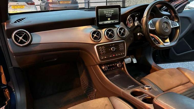 8" colour display screen, Active park assist with parktronic system, Attention assist, Collision prevention assist plus, DYNAMIC SELECT with a choice of driving modes (ECO, Comfort, Sport, Sport+ and Individual), Easy-pack tailgate - Powered opening/closing automatically, Low fuel level warning light, Multi function trip computer, Outside temperature gauge, Reversing camera, Service indicator (ASSYST), Smartphone integration with Apple CarPlay, Sports steering system, Comfort suspension, Bluetooth connectivity including audio streaming, Media interface, SD card slot, USB port, Adaptive brake lights, AMG front and rear apron, Aspherically curved door mirror glass, Automatic headlamp activation, Body colour bumpers, Body colour door handles, Body colour side skirt, Electric front windows, Electric heated + adjustable door mirrors, Electric rear windows, Heated rear window with timer, Heated windscreen wash system, LED indicators in door mirrors, LED tail lights, Rain sensor windscreen wipers, Rear privacy glass, Rear windscreen wiper with auto activation when reversing, Roof spoiler, Twin chrome exhaust tailpipes, 1/3 to 2/3 split folding rear seats, 12V power socket in centre console, 12V socket in luggage compartment, 3 spoke flat bottom multifunction leather steering wheel, Ambient lighting, AMG brushed stainless steel sports pedals with rubber studs, Auto Mercedes-Benz child seat recognition sensor, Black headlining, Centre console storage, Centre console with cupholders, Courtesy light in boot, Footwell lights, Front and rear headrests, Front centre armrest with storage compartment, Gearshift paddles, Heated front seats, Height adjustable front seats, Height/reach adjustable steering column, Illuminated door sills, Illuminated glovebox, Interior door handle illumination, Isofix rear child seat preparation, Load securing rings in luggage compartment, Luggage compartment cover, Luggage compartment lighting, Luggage nets in boot, Overhead storage box/sunglasses holder, Parcel net in front passenger footwell, Parcel net on driver and front seat backrests, Rear armrest with 2 cupholders and load through provision, Rear Reading Lamps, Sports seats, Storage compartment under front seats, Sunvisors with illuminated vanity mirrors, THERMOTRONIC automatic climate control, 3 rear 3 point seatbelts, ABS with Brake Assist, Active bonnet, Adaptive brake system, Brake calipers with Mercedes-Benz lettering + perforated brake discs, Child proof door locks, Crash responsive emergency lighting, Drivers knee airbag, Dual stage driver/passenger airbags, Electronic parking brake, ESP with ASR, Front and rear seatbelt reminder, Front passenger seat occupancy sensor, Front side airbags, Hill descent control, Hill start assist, Tyre pressure monitoring system, Warning triangle and first aid kit, Window airbags, Alarm system/interior protection/immobiliser, Chrome surround in electric key, Remote central locking, Chrome air vent surrounds, Leather gear knob with chrome insert, Light aluminium with longitudinal grain interior trim,