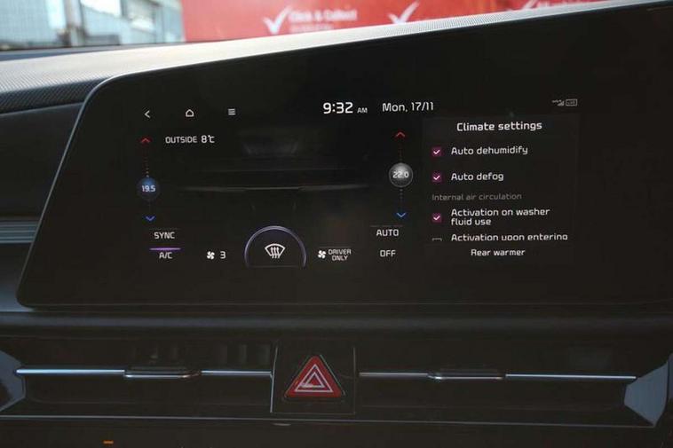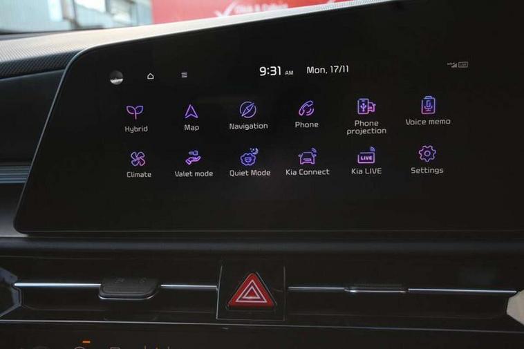 10.25" driver display screen, 10.25" touchscreen satellite navigation, Apple car play/Android Auto with voice control, Blind spot collision avoidance assist, Customisable Head Up Display, Drive mode select (Eco, normal, sport, snow), E-call, Emergency stop signalling system, Forward Collision-Avoidance Assist (FCA) 1.5 - City/Pedestrian/Cyclist/Junction turning, Front parking sensors, Highway Driving Assist (HDA), Intelligent speed limit assist, Kia Connect (UVO), Lane Following Assist (LFA), Lane keep assist, Motor driven power steering, Parking collision avoidance assist (PCA), Rear cross traffic collision avoidance assist (RCCA), Rear parking sensors, Remote smart parking assist, Reversing camera system, Safe exit warning (SEW), Smart cruise control with stop and go functionality, Smart power tailgate, Trip computer with distance/fuel consumption/average speed, Wireless Smartphone charger, 220v AC Inverter, 'Shark fin' mobile antenna, 6 speakers, Bluetooth with music streaming, DAB Digital radio, Steering wheel mounted controls, USB port for connection of a media device, Acoustic windshield, All round electric windows with drivers and front passenger auto up/down and safety function, Auto dimming rear view mirror, Automatic defog system, Automatic headlight control system, Black grille with chrome surround, Black window surrounds, Body colour bumpers, Body colour door mirrors, Body colour exterior door handles, Deluxe door scuff plates, Electrically adjustable and heated door mirrors with LED turn indicator, Electrically folding door mirrors, Front and rear chrome skid plates, Front fog lights, Gloss black wheel arches, Heated rear window, LED daytime running lights, LED Headlights, LED High mounted brake light, LED rear combination lights, Privacy glass - Rear windows and tailgate, Rain sensing front wipers, Rear fog lights, Rear roof spoiler, Rear side wing doors, Rear wiper, Roof rails, Solar glass windscreen, Sunroof with tilting and sliding function, Welcome and follow-me home light functionality, Windscreen Washer Level Warning, 12V socket in front, 12V socket in luggage compartment, 3 seat bench in 2nd row, 60:40 split remote folding rear seats, All-round height adjustable headrests, Alloy pedals, Artificial leather centre console storage box, Artificial leather steering wheel, Artificial leather upholstery, Automatic air conditioning, Centre console cupholder, Chrome coating interior door handles, Driver power adjusted memory seat, Driver/passenger sunvisors with illuminated vanity mirrors, Drivers seat power lumbar support, Front and rear door storage, Front passenger 1 x USB-C charging port, Front passenger power adjusted seat, Front passenger relaxation seat, Glove box, Heated front seats, Heated outer rear seats, Heated steering wheel, ISOFIX Child seat top tethers and anchor fixings, LED Front cabin, rear & luggage compartment lights, Luggage area load cover, Luggage board, Manually adjustable steering column, Paddle shifts, Power adjustable lumbar support on front passenger seat, Rear centre armrest with cupholder, Rear passenger 2 x USB-C charging ports, Seatback pocket - driver, Seatback pocket - front passenger, Shift by wire SBW, Single front passenger seat, Ventilated front seats, Ventiliation ducts to rear compartment, 3 point seatbelts on all seats, ABS, Automatic unlocking of doors in case of impact, Curtain and side airbags, Dual shell horn, Electric parking brake with auto hold function, Electronic stability control, Front airbags, Front passenger airbag cut-off switch, Height adjustable front seatbelts, Hill start assist control (HAC), Knee airbags, Seatbelt reminder warning, Traction control, Tyre pressure monitoring system, Customisable automatic door locking, Customisable automatic door unlocking, Deadlocks, Engine Start/Stop Button with Smart Entry System, Locking wheel nuts, Manual child locks, Rear occupant alert, Smart key with motion sensor, Thatcham category 2 security alarm and immobiliser, Visible vehicle identification number, Warranty - 7 Years/ 100, 000 miles, Centre fascia chopped carbon, 18" Alloy wheels, Tyre mobility kit,
