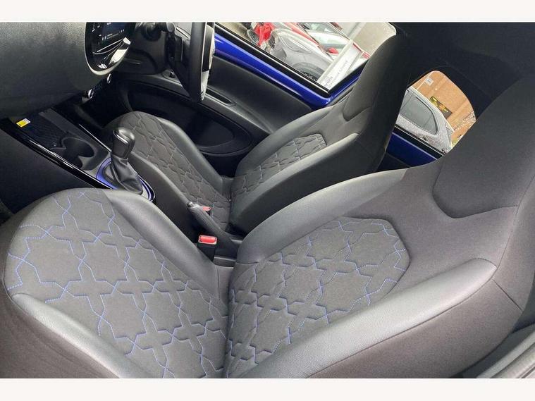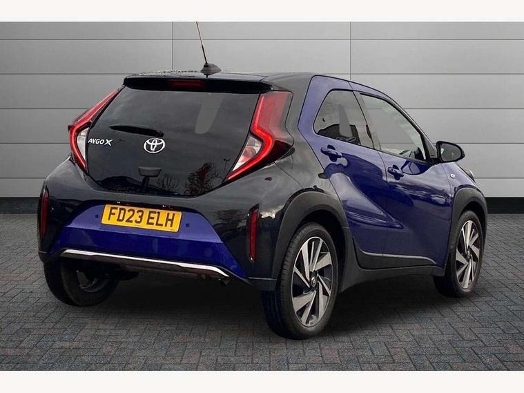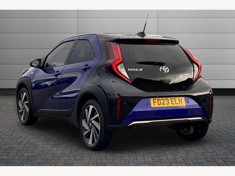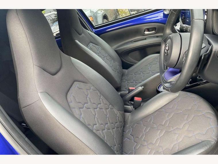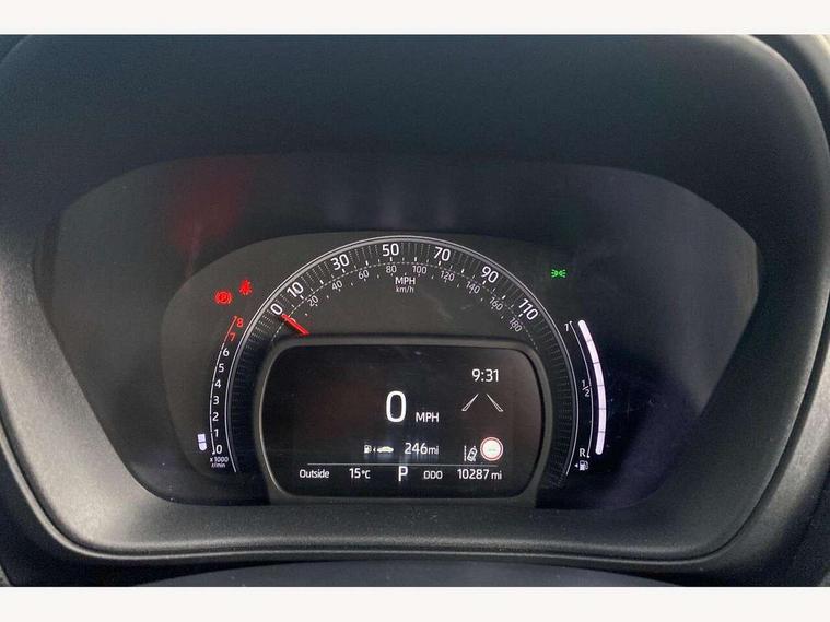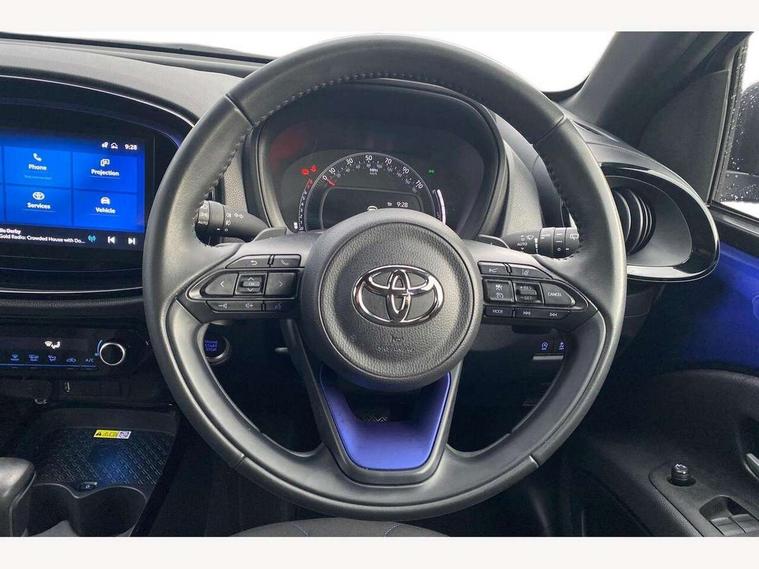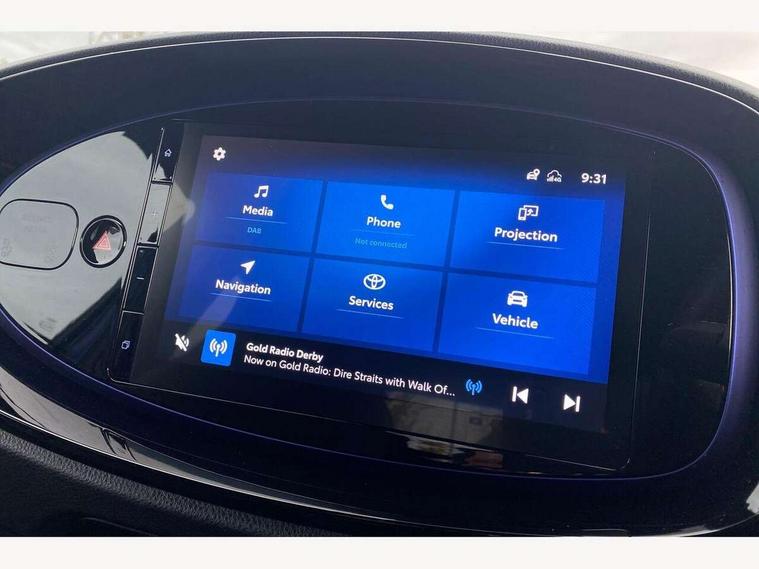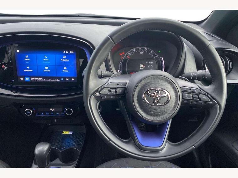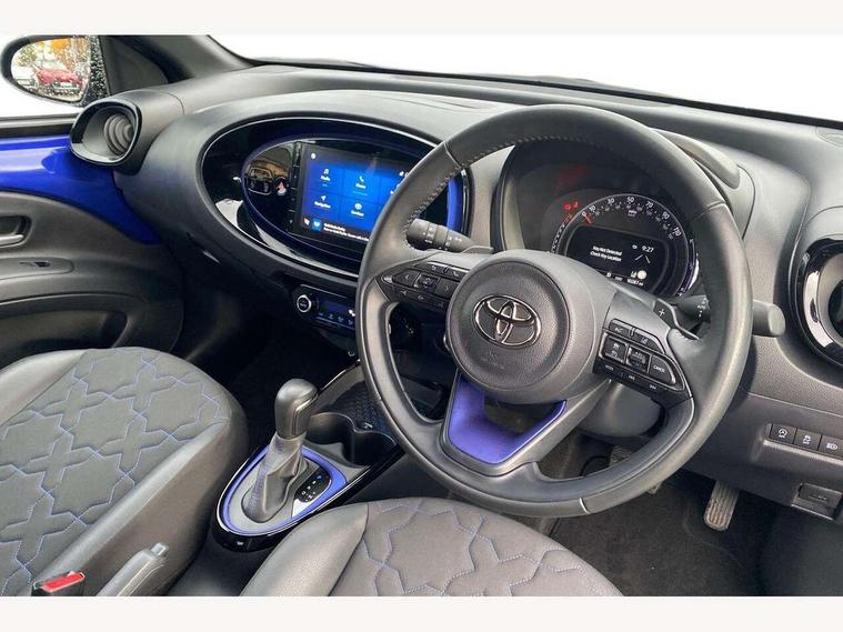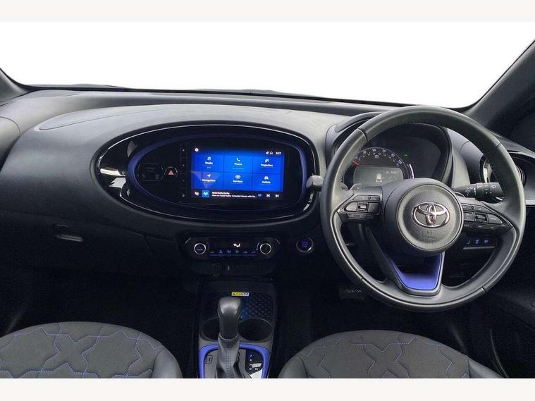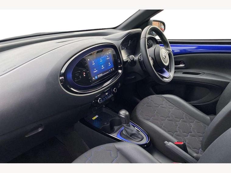 4.2" TFT colour screen, Adjustable speed limiter, Analogue speedometer, Bluetooth connectivity, Digital tachograph, Driver attention alert system, eCall emergency call system, ECO-driving indicator, Electric power steering, Front and rear parking sensors with auto brake, Intersection turn assist, Key reminder warning, Noise reduction kit, Pre collision system with emergency steering assist, Remote boot door release on key, Reversing camera with static guide lines, Smart entry and push button start, Speed limit display, Start and stop, Wireless charger, Wireless Smartphone Integration includes Apple CarPlay and Android auto, Vehicle Stability Control (VSC), 4 speakers, 9" HD multimedia display touch screen with Toyota smart connect, DAB digital audio broadcast, USB connector, Auto headlights, Auto wipers, Automatic headlights cut-off, Automatic high beam On/Off switch, Bicycle towing hook, Black fog light surrounds, Black side protection mouldings, Black wheel arch mouldings, Body colour door handles, Body coloured front bumper, Boot door scuff plate, Eclipse black rear bumper, Electric heated door mirrors, Follow me home headlights, Front and rear underruns in silver, Front fog lights, Front power windows, Gloss black door mirrors, Gloss black upper front grille, Headlight cut-off reminder, LED daytime running lights guide, LED front light guide, LED High mounted stop lamp, LED projector headlights, Manual day/night rear view mirror, Manual headlight levelling, Pagoda roof, Power adjustable door mirrors, Power back door, Privacy glass, Rain sensor, Rear combination lights LED bulb type, Rear side wing doors, Rear windscreen defogger, Rear windscreen wiper, Remote hazard lights system, Short antenna, Variable intermittent windscreen wipers, 12v power outlet - front, 2 seat bench in 2nd row, 3 spoke leather steering wheel, 50/50 split folding rear seat, Adhesive roof headlining, Adjustable speed limiter switch on steering wheel, Audio and telephone switches on steering wheel, Auto air conditioning, Black roof lining, Body colour satin anodised insert on steering wheel, Boot light, Centre room light, Chrome interior door handles, Chrome surround on air conditioning buttons, Clean air filter, Console box storage, Floor mats, Front and rear cup holders, Front head rest deco art, Front head restraints, Gear shift indicator, Height adjustable driver seat, Intelligent adaptive cruise control switch on steering wheel, ISOFIX child restraint system on rear seats, Lane departure alert switch on steering wheel, Leather gearshift knob, Light blue ambient lighting in centre console, Manual tilt steering wheel, Manually reclining and sliding driver seat, Manually reclining and sliding front passenger seat, Multimedia switches on steering wheel, Paddle shift levers on steering wheel, Partial synthetic leather upholstery, Pollen filter, Rear door pockets, Rear head restraints, Remote air-conditioning system, Satin silver insert on gear shift knob, Single compartment glovebox with lights, Single front passenger seat, Soft tonneau cover, Sun visors with mirror on driver and passenger side, Voice recognition switch on steering wheel, Toyota safety sense pack - Aygo X, Anti lock braking system + Electronic brake force distribution, Child safety door lock, Emergency brake light signal (EBS), Hill start assist control (HAC), Passenger airbag on/off switch, Seat belt reminder for front and rear seats, Supplement restraints system (SRS) - 6 airbags, Traction control, Tyre pressure warning system, Immobiliser, Remote power door locks, Black wheel centre caps, Tyre repair kit,