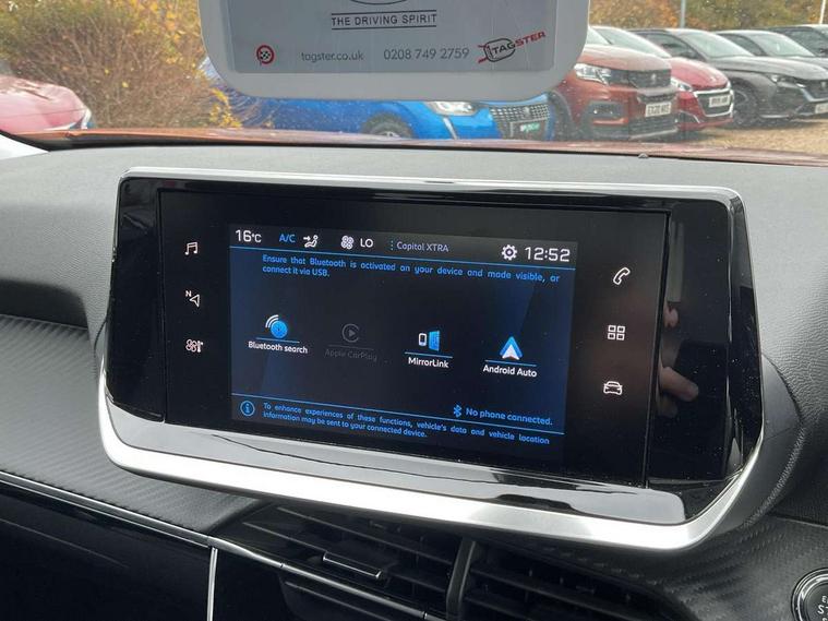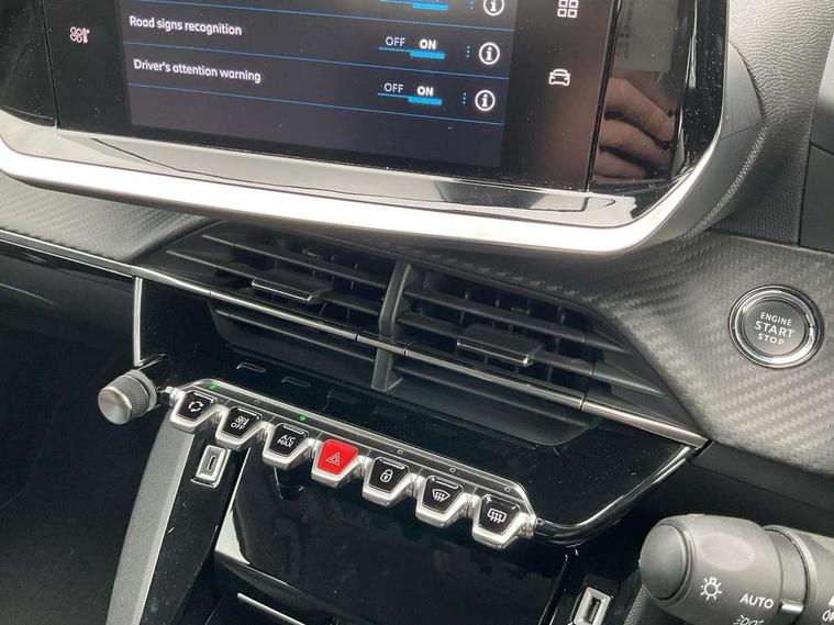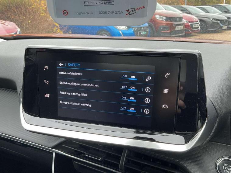 Bluetooth telephone facility, Driver attention warning, E-call, Exterior temperature indicator with ice warning, Lane keep assist, Mirror screen with mirror link, apple carplay and android auto, Multi function trip computer, PEUGEOT i-Cockpit with compact steering wheel, PEUGEOT i-Cockpit with configurable 3D headup instrument panel, PEUGEOT SOS and assistance, Rear parking sensor, Smart phone docking station, Speed limit recognition and recommendation, Start/stop system, Visio Park 1 with 180 degree Colour reversing camera, 2 front USB socket with USB-C, 2 USB sockets in rear, 6 speakers radio with mp3 compatible, DAB Radio (Digital Audio Broadcasting), Voice recognition for radio, navigation and telephony features, 2 X Rear number plate lights, Automatic front windscreen wipers, Automatic hazard light activation upon heavy brake application, Black front wing trim with gloss black detail, Body coloured exterior door handles, Chrome Lion Badge front and rear, Colour coded rear spoiler, Colour coded roof, Dark tinted rear side and tailgate windows, Diamond black mirror shells, Eco LED headlights, Electric, heated, and power folding door mirrors, Electrochrome rear view mirror, Front bumper - Silver lower trim, Gloss black finish on B pillar, Gloss black longitudinal roof rails, Gloss black rear cluster connecting strip, Gloss black roof bars, Headlights left on audible warning, LED daytime running lights with distinctive tooth design, LED third brake light, Model designation badges front and rear, One touch electric front/rear windows with pinch protection, Radiator grille - gloss black top edge trim, Radiator grille chrome chequered, Rear full LED 3D peugeot signature claw effect lights with daylight function, Rear reversing lights, Rear side wing doors, Rear windscreen wiper triggered automatically in reverse gear, Tailgate with heated rear windscreen and wiper blade, Trailer Stability Programme, Variable front intermittent wipers, Wheel arch extensions, 1/3 to 2/3 split folding rear seats, 12v power outlet - front, 12V socket, 3 seat bench in 2nd row, Automatic air conditioning with pollen and active carbon filter, Central front armrest with storage compartment, Driver and front passenger comfort seats, Driver seat manual adjustment - height, longitudinal and back rest angle, Electric power steering with reach and rake adjustable steering column, Front centre armrest, Front LED interior light with 2 reading spotlights and rear interior light with timer, Front passenger seat manual adjustment - height, longitudinal and back rest angle, Gear lever top - manual in full grain leather, Gear shift indicator, High centre console, Leather steering wheel, Mint green contrast stitching to front centre console, door panels and dashboard facia, Modular boot floor, Multifunction steering wheel, Piano keys: Gloss black and chrome toggle switches to access main functions of the vehicle, Roof lining - light grey, Seatbelt unfastened on the move audible and visual alert for front and rear seats, Single front passenger seat, Switch for Push Button Start finished in black with chrome surround, Tri material cloth/leather upholstery, Visibility pack - 2008, 2x 2nd row ISOFIX child seat mountings, ABS (Anti-lock Braking System) with EBD (Electronic Brakeforce Distribution) and EBA (Emergency Braking Assistance), Acoustic vehicle alerting system, Active safety brake with night function/cyclists/pedestrians, Adaptive driver and front passenger airbags with passenger airbag deactivation function, Child locking functionality on rear doors, Driver/front passenger side airbags, Electric parking brake, ESP (Electronic Stability Program) + Hill Start Assist, Front and rear curtain airbags, Front and rear disc brakes, Front and rear three-point retractable seatbelts, with force limiters, Front optimised safety headrests and rear retractable headrests (x3), height adjustable, Tyre pressure sensor, Alarm system with anti-lift sensor, Automatic door locking when moving off, Deadlocks, Electronic code immobiliser, Exterior door lock x1 (Left-hand or passenger’s side), Remote central locking, Carbon effect Dashboard, front and rear door panel finish, 17" Salamanca diamond cut alloy wheels,