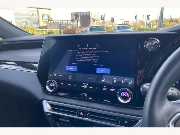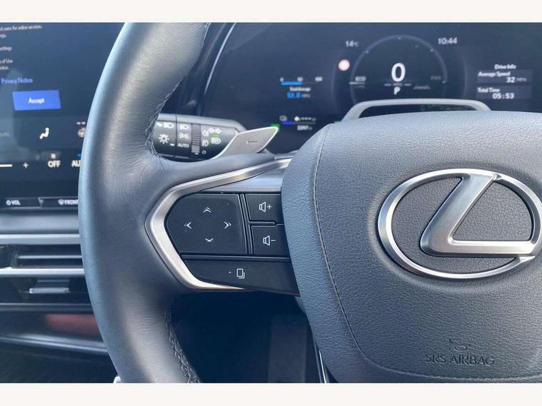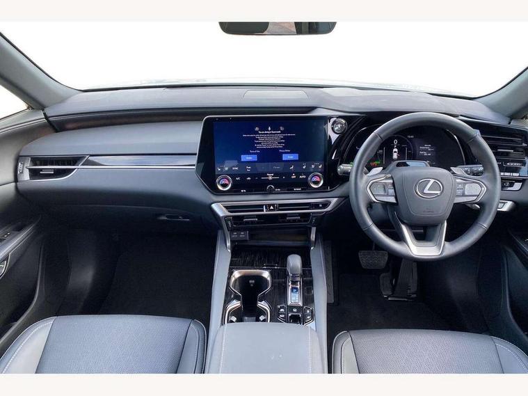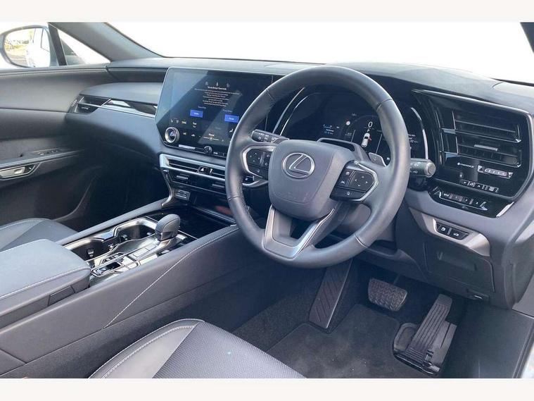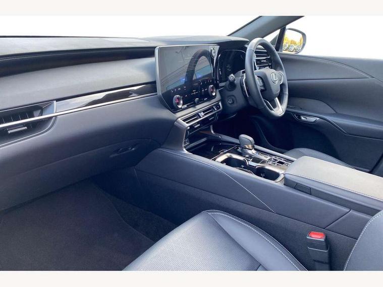 360 degree panoramic view monitor, Bluetooth mobile phone connectivity, BSM - Blind spot monitoring, Drive mode selector, Driver monitoring system, E-call, Head up Display, Intelligent clearance sonar, Lexus link connected services including over the air updates, MM21 Lexus link pro - 14" HD touchscreen with embedded and cloud based navigation, voice assistant, connected services, over the air and always online, Push button starter, Rear cross traffic alert, Speed sensitive electric power assisted steering, Ultrasonic parking sensors, Wireless Apple CarPlay and wired Android Auto, Wireless Smartphone charger, 3 pin to Type 2 10A charging cable, 6.6 kW onboard charger, E-Four Automatic transmission, Type 2 AC charging, Type 2 mode 3 32A charging cable, Vehicle Stability Control (VSC), 12 speakers audio, 5 USB ports (3 front USB C and 2 rear USB C), DAB Digital radio, 3 projector bi-beam LED headlight with auto high beam, Auto dimming rear view mirror, Auto headlights, Front and rear one touch power windows with voice command, Front and rear silver window frame mouldings, Glove and towel set, Headlight washers, Heated, auto-folding door mirrors, auto dimming with rerverse tilt, turn indicators and panoramic view sensors, L-shaped rear light bar, LED brake lights and rear lights with emergency brake signal, LED cornering headlights, LED daytime running lights, LED front and rear fog lights, LED Indicators, Power back door with kick sensor, Privacy UV glass, rear doors and tailgate, Rain sensor windscreen wipers, Rear side wing doors, Rear wash/wipe, Roof rails, Variable front intermittent wipers, 12V accessory port centre console and luggage compartment, 2 cup holders in centre console, 2 way electric lumbar support for driver and front passenger, 2 x Sunvisors with vanity mirror and lamp, 3 rear headrests, 3 seat bench in 2nd row, 40:20:40 split folding rear seats, 64 colour LED ambient interior illumination with 14 pre-set themed colour tones, 8 way electrically adjustable front seats, Charge cable bag, Driver seat memory function, Easy access driver seat, Easy access steering wheel, Front aluminium scuff plates, Front headrests, Front tray in front of centre console, Glovebox, Heated and ventilated front seats, Heated steering wheel, Leather steering wheel, Lever type shft control, Manually adjustable rear seats, Power adjustable steering wheel, Rear resin scuff plates, Single front passenger seat, Smooth leather upholstery, Textile carpet mats, Three zone climate control air conditioning system, Two way opening centre armrest with storage, 2 x Isofix child rear seat restraints, 3 point ELR front and rear seatbelts with pretensioners, ABS, Curtain shield airbags (front and rear), Driver and front passenger 2 stage airbag, Driver/front passenger side airbags, Drivers knee airbag, E-Latch with safe exit assist, EBD + Brake Assist, Electronic parking brake, Electronically controlled braking, Extended lexus safety system+ 3 - lane change assist, front cross traffic assist, Front and rear left/right force limiters and tension reducers, Front and rear left/right seatbelt reminders, Front centre airbag, Hill assist control, Lexus safety system+ 3 - dynamic radar cruise control, pre collision system day and night, lane tracing assist, road sign, Manual child lock in rear doors, Passenger airbag cut-off device, Traction control, Tyre pressure warning, 2 x remote key fobs, Customisable auto door lock, Locking wheel nuts, Motion sensor key, Smart keyless entry, Thatcham category 1 alarm + immobiliser, VIN etching, Black Inlay, 21" Alloy wheels,