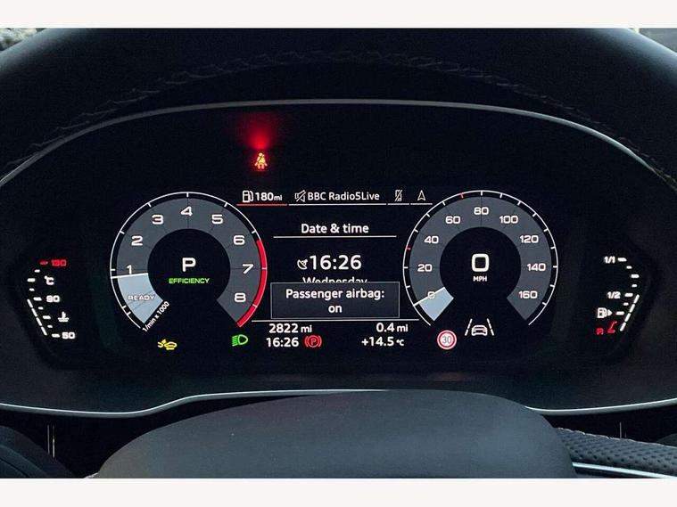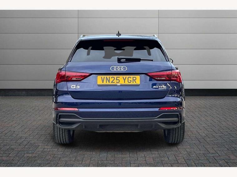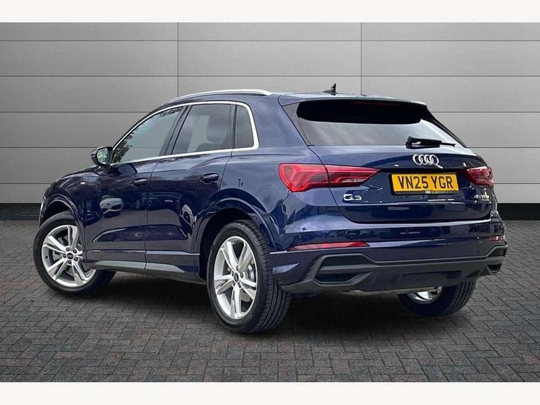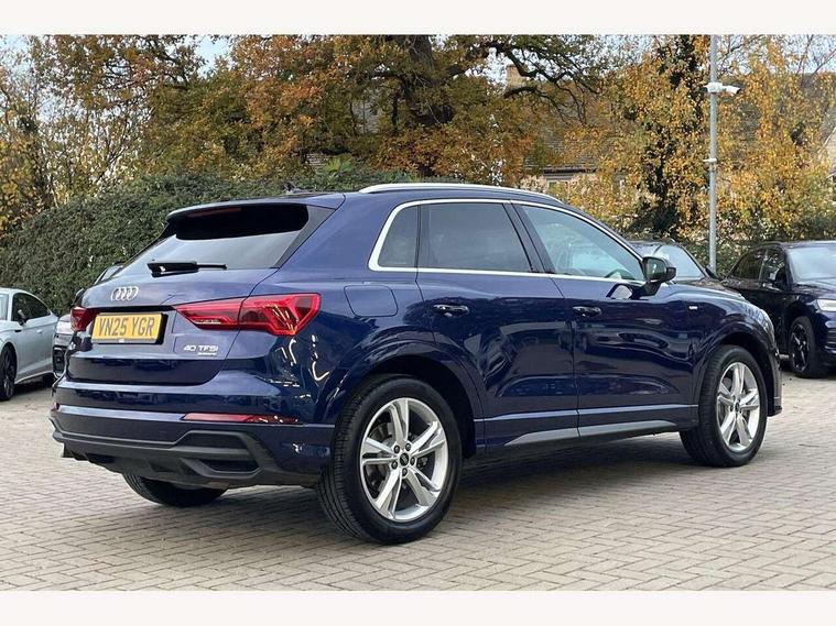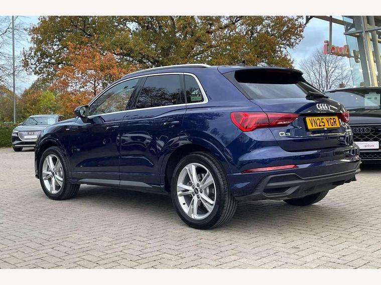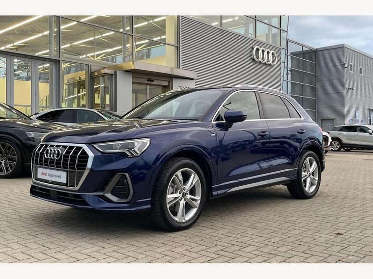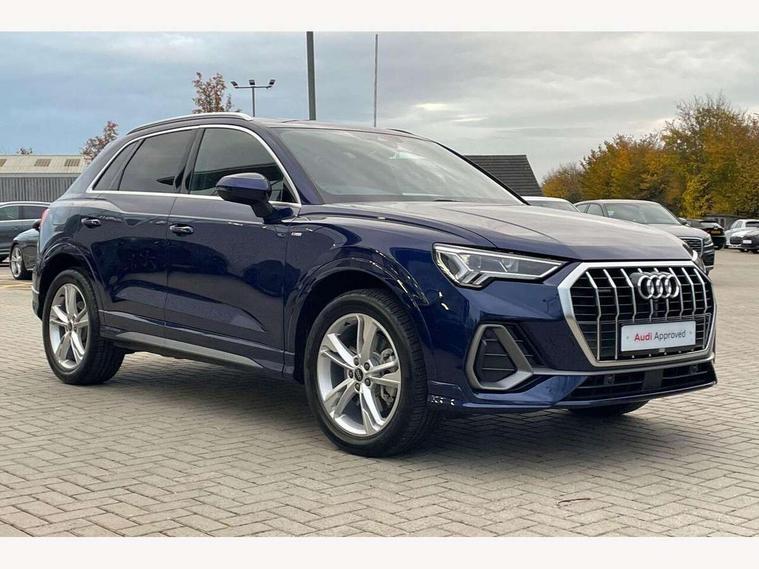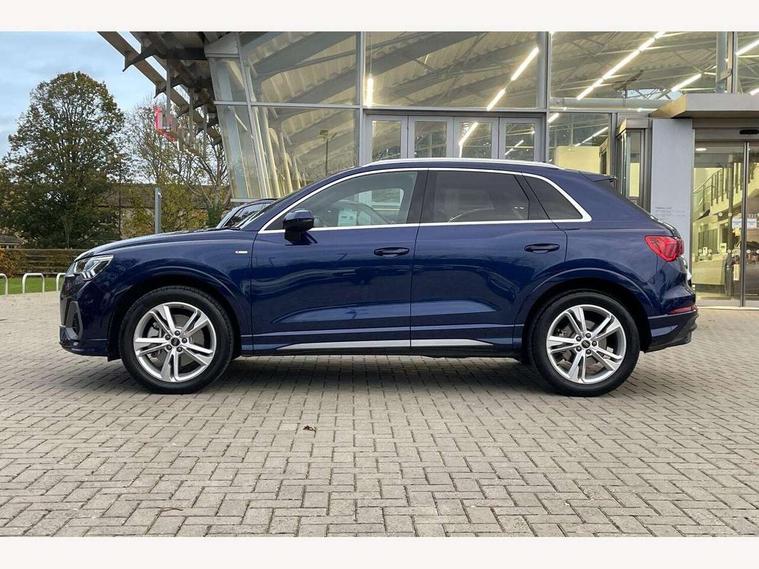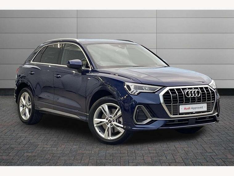 Amazon alexa Integration, Audi connect safety and service, Audi drive select, Audi lane departure warning, Audi Virtual Cockpit - 10.25" display, Bluetooth interface, Camera based traffic sign recognition, Distraction and Fatigue warning, Legal emergency call, MMI Navigation Plus with high resolution 10.1 inch touchscreen colour display, Power operated tailgate, Progressive steering, Service interval indicator, Smartphone interface includes wireless Apple carplay/Android Auto, Start stop system with recuperation, Voice control system with natural language interaction, Sports suspension, 2 USB-C ports with charge and data functions, 6 passive loudspeakers, DAB digital radio module, Acoustic windscreen, Aluminium roof rails, Aluminium window trim, Anthracite black radiator grille, Auto dimming door mirrors, Auto dimming frameless rear view mirror, Body colour front spoiler blade, Electrically folding, adjustable and heated door mirrors with integrated LED side indicators and kerb view function for passenger side, Front and rear electric windows, Front fog lights, Front side air inlets in matt platinum grey, Grille vertical bars in aluminium silver/Matt, High gloss black finish B and C pillars, LED Dynamic rear indicators, LED headlights with LED daytime running lights, LED rear lights, LED third brake light, Privacy glass dark tinted rear and rear-side windows (from B-pillar backwards), Rain and light sensors, Rear diffuser grille in grained matt black, Rear diffuser strip in matt anthracite black, Rear side wing doors, Rear wiper, S line badges on front wings, S Line front and rear bumpers and side skirts, Side skirt insert in matt Platinium grey, Variable front intermittent wipers, 12V socket in rear centre console, 3 seat bench in 2nd row, 3 spoke leather multifunction steering wheel features S badging and grips in perforated leather with contrast stitching, 40:20:40 folding with manual adjustment for 60:40 forwards/backwards position and backrest angle, Adjustable rear seat bench/backrest with centre armrest and cupholder, Black carpet mats, Black cloth headlining, Dual zone electronic climate control, Electric lumbar support, Front and rear black floor mats with contrast stitching in rock grey, Front and rear headrests, Front centre armrest, Height and reach adjustable steering wheel, Horizontal trim strip in matt platinum grey, Illuminated door sill trims with S logo, ISOFIX child seat mounting for front passenger with airbag deactivation and outer rear seat including top tether attachment point for outer rear seats, Luggage compartment sill protection in stainless steel, Manual front seats with height adjustment, Perforated leather gearknob, Single front passenger seat, Stainless steel pedals, Twin leather upholstery with front sport seats + S embossing, Non smoking pack - Q3, 3x3 point rear seatbelts, 6 airbags - Driver, front passenger, curtain and side windows, Audi pre-sense front with pedestrain and cyclist recognition, Electrically operated child locks on rear doors, Electromechanical parking brake, Electronic stabilisation control including ABS, ASR and EDL, Front seatbelt reminder, Hill descent control, Hill hold assist, Pre sense basic, Seatbelt monitoring, Tyre pressure warning, Warning triangle and first aid kit, Anti theft wheel bolts, Immobiliser, Remote central locking, Thatcham approved category 1 anti theft alarm, Aluminium look interior elements, Dark matt brushed aluminium inlay, Detail dashboard around MMI touch colour display in glass look, black with surround in aluminium look, Leatherette door armrest,