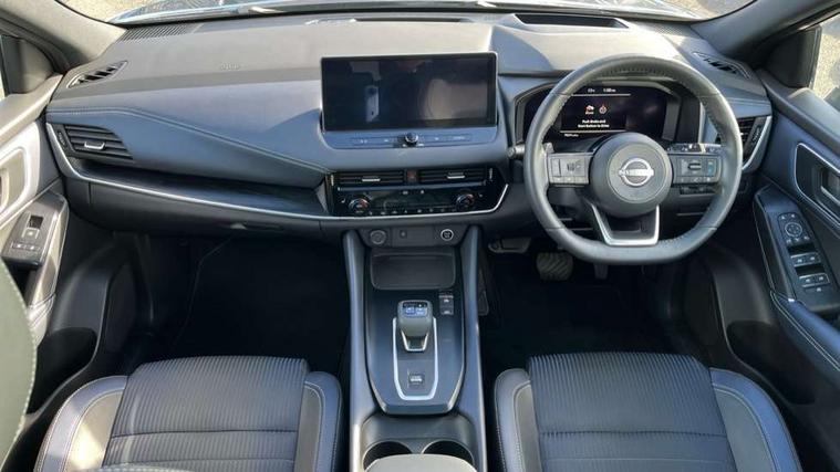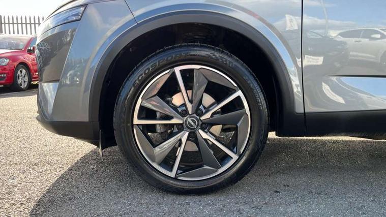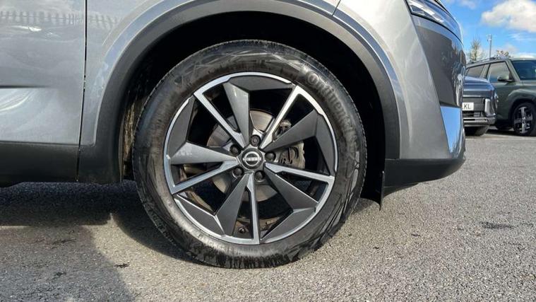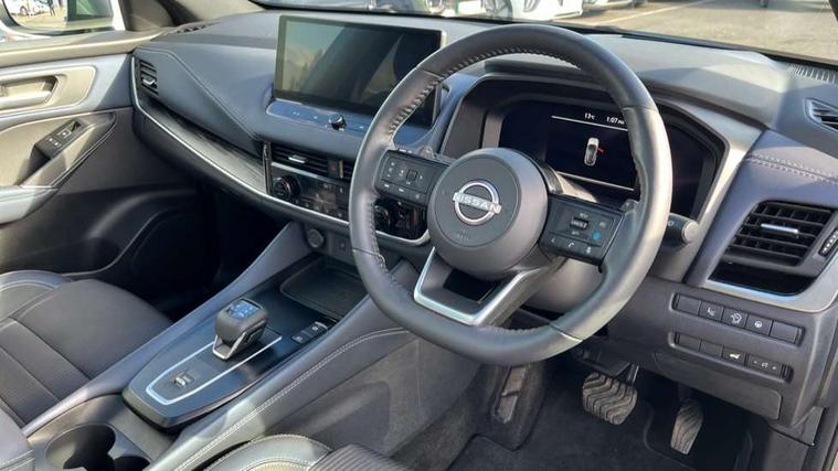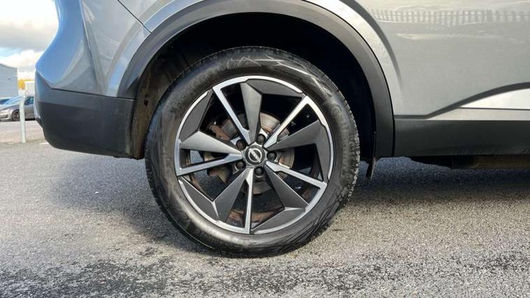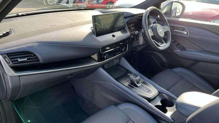 Advanced windscreen head up display, Android auto/Apple CarPlay (Wired), Blind spot warning, Drive modes (sport, normal, eco), Electric speed sensitive power steering, Emergency and breakdown call, Front and rear parking sensors, Full Digital 12.3" TFT Digital Combimeter, Google maps services - search, weather, 3D maps and Google street view, Hands free power tailgate, Idle stop/start system, Intelligent around view monitor, Intelligent Cruise control (ICC), Intelligent driver alert system, Intelligent forward collision warning, Intelligent lane intervention, Lane departure prevention, Lane departure warning system, Lane keep assist, Moving object detection, Nissan connect 12.3 inch touchscreen infotainment system, Nissan connect navigation, ProPilot, Push button starter, Rear cross traffic alert, Rear view camera, Remote control services - door locks, lights, horn and car locator, Telematics - notifications and connectivity services, TomTom live traffic services, Traffic jam pilot, Traffic sign recognition with legal speed adjustment, Trip computer, Virtual personal assistant and firmware over the air capability, Wireless apple carplay, Wireless charging pad, 6 speakers, AM/FM audio system with DAB, Bluetooth audio streaming, Front USB connections (Type-A and Type-C), Rear USB charging only ports (Type-A and Type-C), Auto dimming rear view mirror, Auto rear wiper when reversing, Automatic hazard signal with emergency stop signal, Body colour mirror caps, Body coloured door handles, Bodyside mouldings, Chrome side window finisher, Door handle with button, Electric auto folding door mirrors, Electrically adjustable and heated door mirrors with LED turn indicator, Follow me home headlights, Front and rear LED turning signals, Headlights auto levelling system, Intelligent auto headlights, LED daytime running lights, LED headlights with adaptive driving beam, LED rear lights, One touch front and rear electric windows with remote opening and closing, Partially body coloured bumpers, Privacy glass, Rear bumper with graphite insert, Rear reversing light (bulb lighting), Rear roof spoiler, Rear side wing doors, Rear styling plate, Shark fin antenna, Splash free rain sensing wipers, Super UV and infrared cut glass, Thermaclear heated windscreen, Three blink turn signal, 12v power socket in dashboard and luggage, 2x Rear coat hooks, 3 bench rear seats in 2nd row, 3 rear headrests, 4 folding assist grip, 6 Luggage hooks - 4 on floor, 2 on side, 60/40 split folding rear seat bench, Ambient lighting around centre console, Ambient lighting in front doors, Centre console storage tray, Chrome interior door handles, Cloth/syntech leather monoform upholstery, Dark black/blueish PVC wrapping, Dark headlining, Driver and front passenger sunvisors with illuminated vanity mirrors, Driver seat back pocket, Dual zone automatic climate control with pollen filter, Electrically adjustable driver seat, Electrically adjustable lumbar support for driver, Front and rear door storage, Front centre console and armrest, Front cupholders x 2, Front door with bottle holders, Glovebox with light, Hard trunk cover, Heated front seats, Heated steering wheel, Height adjustable driver's seat, Height adjustable front headrests, Height adjustable passenger seat, Leather steering wheel, Luggage board system, Luggage space lighting, Manual lumbar support on passenger seat, Manually adjustable passenger (slide recline + lifter), Multifunction steering wheel, Passenger seat back pocket, Rear armrest with 2 cupholders, Rear door bottle holders, Single front passenger seat, Soft PVC kneepad, Steering wheel gearshift paddles, Steering wheel switches, Tilt/telescopic adjustable steering wheel, Two rear isofix child seat anchorage points with top tether, Welcome light and doors with console tray ambient lighting, Glass roof pack with roof rails - Qashqai, 3x3 point rear seatbelt pretensioners + load limiters, ABS with EBD and brake assist, Active brake limited slip, Auto hold function, Child locks on rear doors, Curtain and front side, far side airbags, Driver and passenger airbags, Driver, passenger and 2nd row rear seat belt reminder, Electronic parking brake, Front seatbelt pretensioners + load limiters, Height adjustable front seatbelts, Hill start assist, Intelligent blind spot intervention, Intelligent front emergency braking with pedestrian, cyclist recognition and junction assist, Intelligent rear automatic braking, Tyre pressure monitoring system, Vehicle dynamic control, Capless fuel filler, Engine immobiliser, Intelligent Key, Remote central door locking with deadlocking, Thatcham Cat.1 alarm, Interior instrumental panel C finisher, 19" Alloy wheels, Tyre puncture repair kit,