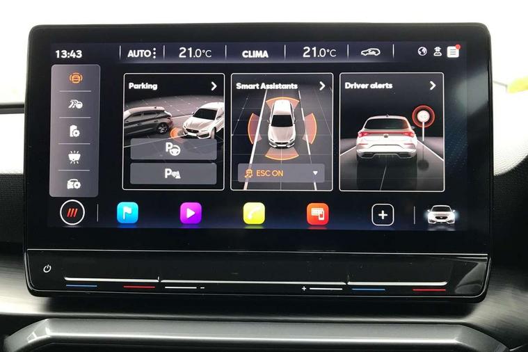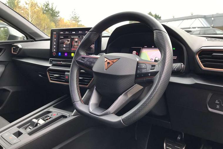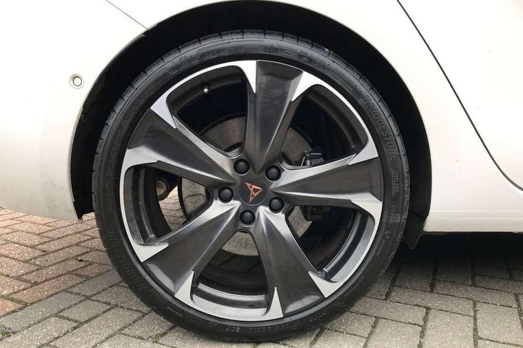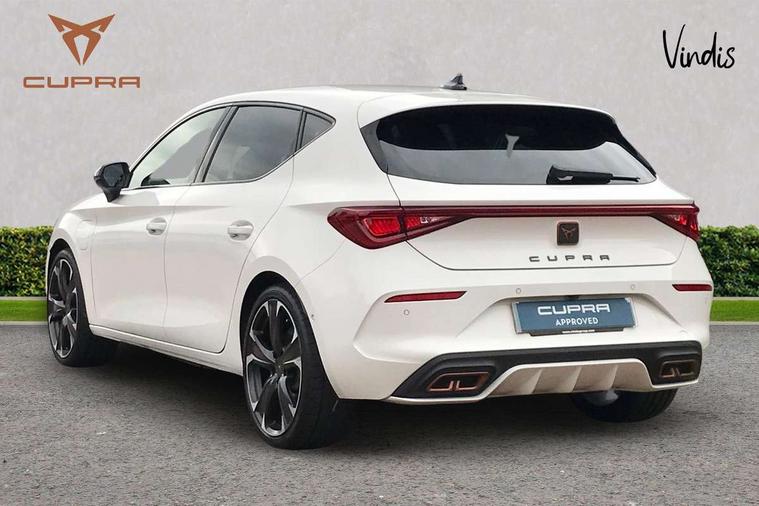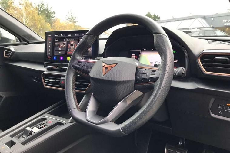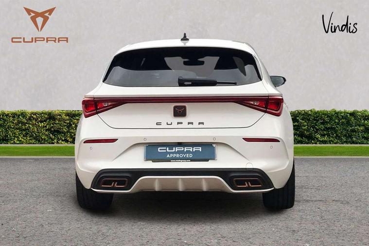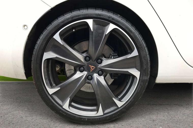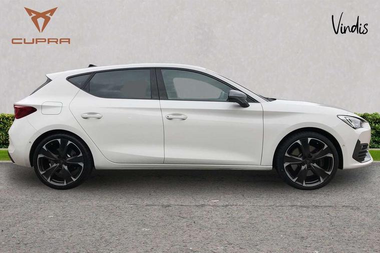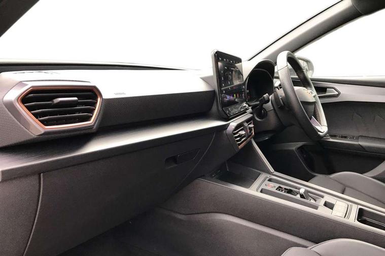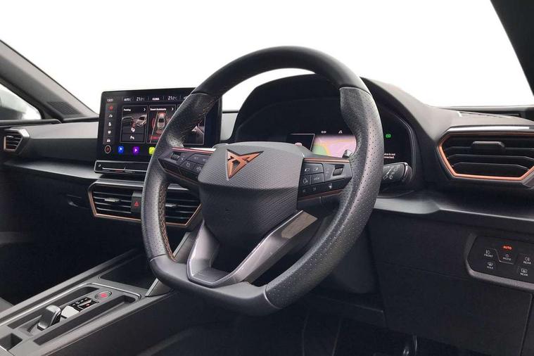 CUPRA drive profile selection with 4 modes (Comfort/Cupra/Sport/Individual), throttle response and gearshift mode, Digital cockpit, E-call, Four x USB Type C ports, Front assist with forward collision warning braking reaction to vehicles, pedestrians and cyclists, Full link smartphone integration with Mirror Link, wireless Apple CarPlay and wired Google Android Auto, Lane assist, Lockable tailgate, Park assist (inc front/rear parking sensors), Rear view camera, RPM, trip computer, outside temp gauge, instrument light brightness, low fuel warning light, lights on reminder, gearshift indicator, Service interval indicator, Start/stop system with regenerative braking, 10 amp mode 2 charging cable, 16 amp mode 3 charging cable, 3.6 kw On-board charger, Standard suspension, XDS electronic differential lock and dynamic traction support, Auxiliary input socket, Auto dimming rear view mirror, Body colour door handles, Body coloured bumpers, Cupra sports bumpers, Dark tinted rear windows, Electric front/rear windows, Electrically adjustable, heated and folding door mirrors, LED front fog lamps with cornering function, LED headlights with dynamic turn signals, tail lights, rear fog lights with rear coast to coast lighting, Rain sensing wipers, Rear diffuser with twin exhaust pipe on each side with simulated exhausts, Rear side wing doors, Rear wash/wipe, Separate daytime running light with automatic headlight control and coming home feature, Third brake light, 12v power supply in centre console, 3 seat bench in 2nd row, 5 headrests, 60/40 split rear bench seat with armrest, Ambient lighting (glovebox, footwell, ambient lighting multicoloured), Black headlining, CUPRA Leather flat bottomed, heated, perforated steering and gearshift paddles, Cupra sports pedals, Driver/passenger manual seat height adjustment, Dust/pollen filter, Folding boot cover, Front and rear reading lights X 4, Front centre armrest, Front seats manual lumbar adjustment, Height/reach adjust steering wheel, Illuminated interior front door sills, Interior wraparound lighting, ISOFIX points in outer rear seats with top tether anchorage points, Luggage tie-down hooks, PVC/Cloth upholstery with copper stitching + Cupra embossed logo on headrest, Single front passenger seat, Sports bucket seats, Storage pockets on rear of front seats, Sunvisors with illuminated mirror, Three zone climate control, Dynamic and comfort pack - Leon Cupra, Media system plus with navigation pack - Leon Cupra, 3 point seatbelts on all rear seats, ABS, Brake control system - ESC and brake booster, Child proof door locks, Cupra black brake calipers, Driver and front passenger airbags with front passenger airbag de-activation, front side and curtain airbags, Electronic parking brake, Extended safety system - seat belt tensioner, window closure and hazard lights, Hill hold control, Rear disc brakes, Seat belt reminder for front and rear seats, Tiredness recognition system, Tyre pressure monitoring system, Anti theft alarm system with interior monitoring in cab, backup horn and towing protection, KESSY Advanced - Keyless start, keyless entry, Locking wheel bolts, Chrome and copper interior detailing, 19" Machined black and silver alloy wheels with 91Y tyres, Breakdown kit, Tool kit,