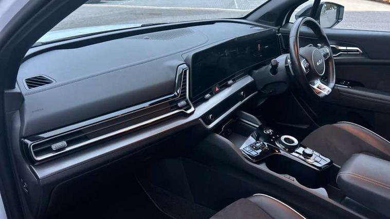 12.3" Display with navigation, 4.2" supervision colour cluster display, Apple car play/Android Auto with voice control, Drive mode selector, E-call, Forward collision avoidance assist (FCA) - city/pedestrian/cyclist/junction covering, Front and rear parking sensors, Highway Driving Assist (HDA), Intelligent speed limit assist, Kia Connect (UVO), Lane Following Assist (LFA), Lane keep assist, Low washer fluid warning, Rear view monitor, Reversing camera system integrated into centre fascia screen, Smart cruise control with stop and go functionality, Speed sensitive power steering, Trip computer, Windscreen washer level indicator, Intelligent Stop and Go, 6 speaker audio system, Bluetooth audio streaming, DAB Radio with MP3, Rear USB port, Steering wheel mounted audio controls, USB C type charging ports on centre console, USB C type charging ports on side of front seats, USB port for connection of a media device, All round electric windows with drivers and front passenger auto up/down function, Automatic headlight control system, Automatic window defogger, Backlite glass heated with timer, Black bumpers, Body colour exterior door handles, Body colour radiator upper garnish and door garnish, Electrically adjustable/heated/folding door mirrors with LED indicators, Front and rear chrome skid plates, Gloss black door mirrors, Gloss black radiator grille, Gloss black side sill and wheel arch body mouldings, Glossy black roof rack, High beam assist, Interior electrochromic mirror, LED daytime running lights, LED front fog lamps, LED headlamps (low and high beam - MFR type), LED High mounted stop light, LED rear combination lamp, Rain sensing wipers with aero blades, Rear fog lamp, Rear privacy glass, Rear side wing doors, Rear spoiler, Rear wiper, Satin finished beltline, Silver coloured inserts to bumpers, Tinted rear glass, Trailer stability assist, 12V power socket in front centre fascia and luggage compartment, 2nd row personal lamps, 3 seat bench in 2nd row, 3 x passenger assist grips, 40/20/40 split folding rear seat, All-round height adjustable headrests, Black headlining, Centre console storage box, Cupholders in rear armrest, D-Shaped sports leather steering wheel and perforated inserts with GT-Line logo, Door courtesy lamps, Drink holder at centre armrest, Driver and front passenger side sunvisors with illuminated vanity mirrors, Driver's seat manual height adjust, Drivers seat power lumbar support, Front and rear door storage, Front seat and rear pockets, Front/rear centre armrests, Gear shift indicator, Glovebox illumination, Heated front seats, Heated steering wheel, Interior door lock/unlock function, ISOFIX Child seat top tethers and anchor fixings outer rear seats, Luggage area light, Luggage area load cover, Luggage net with hooks, Metal paint interior door handles, Overhead console lamp, Paddle shift controls, Rear cabin light, Rear coat hooks, Single front passenger seat, Sports pedals, Suede leather upholstery, Three zone climate control, Tilt/telescopic adjustable steering wheel, Ventilation ducts to rear compartment, Active front headrests, All round 3-point seatbelts, Anti-lock braking system (ABS), Dual front side airbags, Dual horn, Electronic parking brake, Electronic stability control with downhill brake control, Front passenger airbag cut-off switch, Front seatbelt pretensioners + load limiters, Height adjustable front seatbelts, Hill start assist control (HAC), Impact sensing auto door unlocking, Multi collision brake assist, Rear door child safety locks, Rear seat alert system, Traction control, Twin curtain airbags, Twin front airbags, Tyre pressure monitoring system, Advanced anti-theft system including immobiliser and alarm, Door deadlocks, Engine Start/Stop Button with Smart Entry System, Locking wheel nuts, Speed sensitive auto door locking, Visible vehicle identification number, Aluminium pattern finish centre fascia and door garnish, 18" GT-Line alloy wheels, Tyre mobility kit,