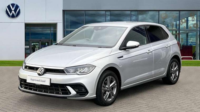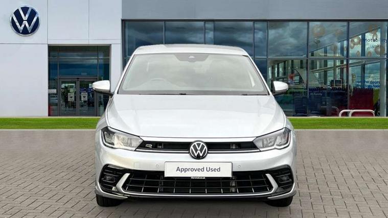 Adaptive cruise control with follow-to-stop and speed limiter, Advanced driver attention and drowsiness monitor, Bluetooth mobile phone interface, Digital Cockpit Pro with 10.25" Display, Dynamic road sign display, Emergency call service, Multifunction camera, Power assisted speed sensitive steering, Preparation for We connect and We connect plus, Speedo and rev counter, electronic odometer, trip, service interval display and fuel gauge, Standard rear axle, Travel Assist - Lane keeping system and traffic jam assist, Travel assist including emergency assist, Trip computer, Warning signal and warning light for front and rear seatbelts not fastened, Washer fluid level indicator, Wireless app connect, Front wheel drive, Rear shock absorpion, Start-stop system with battery regeneration (recuperation - energy recovery during braking), DAB Digital radio, Diversity antenna for FM reception, Front and rear 6 speakers, Body colour bumpers, Body colour door handles, Electric front windows, Front scuff plates with R-Line logo, Heat insulating glass windscreen, Power folding adjustable/heated exterior mirrors and front passenger exterior mirror lowering function, Rear electric windows, Rear fog light, Rear side wing doors, Rear windscreen washer and wiper with interval delay, Third brake light, 12V power socket in centre console, 2 USB-C ports in the front, 2 USB-C charging sockets on the center console in the rear, 3 rear head restraints, 60/40 split folding rear seat and rear seat bench not split, Air care climatronic air conditoning system with active combination filter and 2-zone temperature control, Black roof lining, Carpet mats, front and rear, Chrome plated radiator grille inserts, air vent surrounds and light switch surrounds, Door and side trim panel, Driver and front passenger seat height adjustment, Driver/passenger sunvisors with illuminated vanity mirrors, Front centre armrest, Front footwell illumination, Front seat backrest storage pockets, Front sports comfort seats, Handbrake lever handle in leather, Headliner in recycled material, Isofix child seat preparation easy-fit (for two outer rear seats, and front passenger seat) compatible with I-size, Karoso artvelours cloth upholstery, Leather trimmed gear knob, LED interior light with switch off delay and dimmer, 2 reading lights front and rear, Luggage compartment cover, Luggage compartment floor, Luggage compartment lighting, Lumbar adjustment for front seats, Single front passenger seat, Stainless steel pedals, Standard pedal cluster, Three spoke leather wrapped multifunction steering wheel with shifting paddles, Light and sight pack - Polo R-Line/Black Edition, 3 point height adj front seatbelts + pretensioners, 3x3 point rear seatbelts, ABS, Driver and front passenger airbag with front passenger airbag deactivation, Drivers and front passengers safety optimised head restraints, ESC (Electronic stability control) + EDL (Electronic Differntial lock) and ASR (Traction control), Extended and predictive pedestrian/ cyclist protection, Front curtain and side airbags with center airbag, Front/rear disc brakes, Hill hold control, Manual child lock in rear doors, Single tone horn, Tyre pressure loss indicator, Alarm with interior protection, Anti-theft alarm system with interior monitoring, backup horn, and towing protection, Anti-theft wheel bolts, Electronic engine immobiliser, Chrome applications on rotary light, mirror adjustment, window regulator switches, outlet with frame in black, Dark grey anodised matt decorative inserts in dash and front door panels, 16" Coventry alloy wheels, Low rolling resistance tyres,