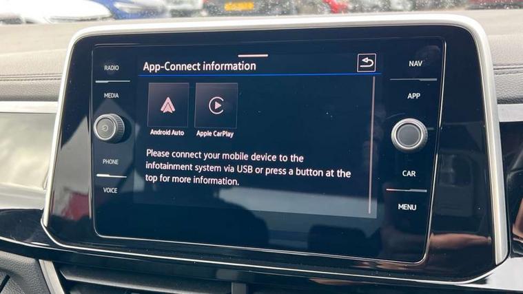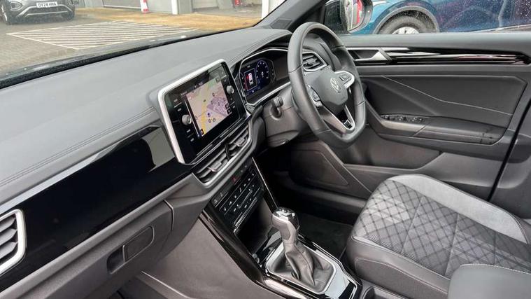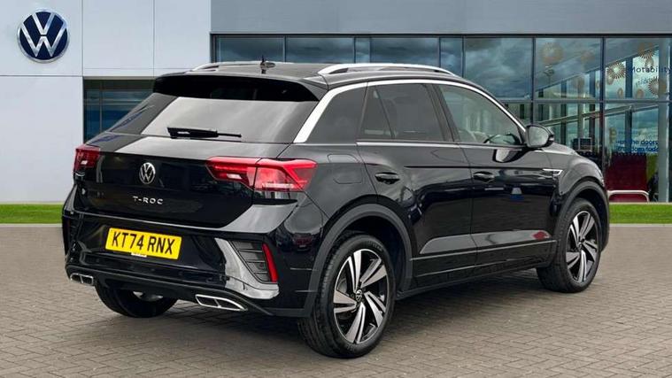 10.25" Digital cockpit pro, Advanced driver attention and drowsiness monitor, Emergency call service, Lane keeping system Lane Assist, Mobile phone interface, Modified key software - reduce switch off time for key status change to Long no motion, Online services, Park assist including front and rear parking sensors, Service interval indicator, Tailgate/trunk lid release from outside, Think blue trainer driver tips and journey analysis, Warning sound and light for front seatbelts unfastened, Wireless app connect, Battery regeneration during braking, Start/stop function with battery regeneration, DAB Digital radio, Diversity antenna for FM reception, Front and rear 6 speakers, Music playback - MP3, WMA and AAC files, Premium USB cable in choice of either Apple or Android smartphone compatibility, SD card slot, Simultaneous pairing of 2 compatible mobile devices, Title and cover art display, We Connect and We Connect Plus functionality, Auto dimming interior rear view mirror, Automatic hazard lights activation under emergency braking, Automatic headlight control with LED separate daytime running lights with coming/leaving home function, Body coloured exterior mirror housings and door handles, Electrically adjustable and heated door mirrors, Extended roof spoiler, Exterior mirrors aspherical on driver side, convex on front passenger side, External USB type C socket and charging sockets, Front windscreen wiper with intermittent wipe and 4 position delay, Heated rear window, LED 3rd brake light, LED rear combination lamps, LED rear number plate lights, Power windows with comfort operation and circuit breaker, Privacy glass for rear side windows and rear window, R-Line design body coloured bumpers, Rain sensor, Rear exhaust tailpipe, Rear fog light on one side and reversing lights on both sides, Rear side wing doors, Rear wash/wipe with intermittent wipe setting, Remote electrically foldable door mirrors, puddle lights and reverse activated passenger's door mirror, 12V power socket in centre console, 3 rear head restraints, 3 seat bench in 2nd row, 4 load lashing points in luggage compartment, Air care climatronic air conditoning system with active combination filter and 2-zone temperature control, Black roof lining, Chrome plated decorative trims, Chrome plated radiator grille inserts, air vent surrounds and light switch surrounds, Door and side trim panel with leatherette insert, Front + rear carpet mats, Front centre armrest, Front cupholders x 2, Front footwell illumination, Front reading light, Front scuff plates with R Line logo, Front seat back storage pockets, Glove compartment door with light, Instrument lighting, white adjustable panel illumination, Interior ambient lighting and surround lighting, Interior light delay, Isofix child seat preparation, Leather gearshift handle, Load-through provision with cup holder when folded down ('Unsplit rear seat bench, split folding backrest, with centre armrest), Luggage compartment lighting, Single front passenger seat, Stainless steel pedals, Storage compartment in left and right luggage area, Storage compartment in rear doors, Storage compartments in driver and front passenger doors, Sunvisors with illuminated vanity mirrors, Variable boot floor, height adjustable and removable, Driver assistance pack without proactive passenger protection - T-Roc, 3 point height adj front seatbelts + pretensioners, 3 point seatbelts in outer rear with ECE label, ABS, Child locks on rear doors, City emergency braking and pedestrian monitoring, Driver and front passenger airbag with front passenger airbag deactivation, Driver and front passenger safety-optimised head restraints, Drivers seatbelt reminder, Electronic parking brake, Electronic Stability Control (ESC) inc EDL (Electronic Differential Lock) and ASR (Traction Control), Front and rear passengers curtain airbag system including front side airbags, Hill start assist, Predictive pedestrian protection, Rear disc brakes, Two tone horn, Tyre pressure loss indicator, Volkswagen roadside assistance, Piano black decorative inserts in dashboard and front door trim panels, Trims for alloy wheels,