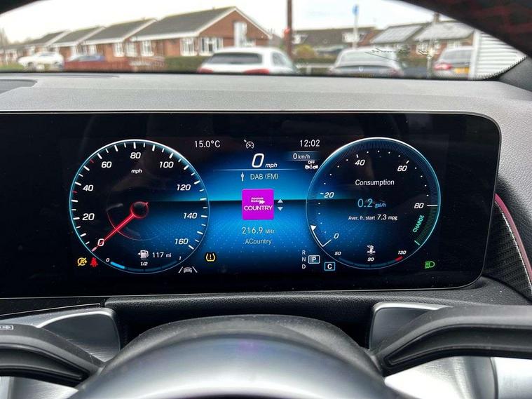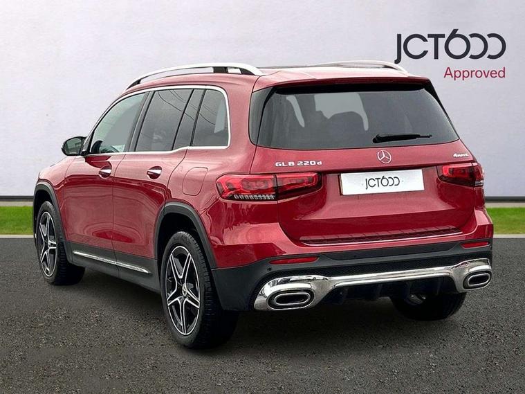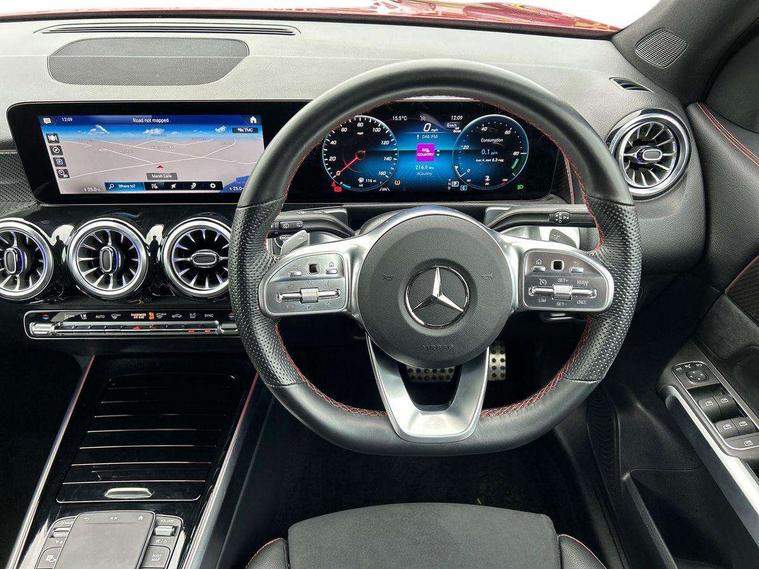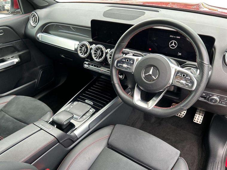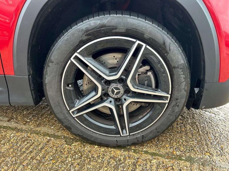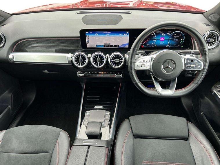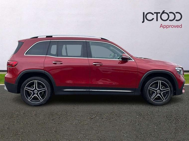 10.25" Digital instrument cluster display screen, 10.25" Digital media screen display, Active lane keeping assist, Attention assist - Monitors steering behaviour and long journey fatigue, Brake pad wear indicator warning light, Car wash mode, Cruise control with limiter, DYNAMIC SELECT with a choice of driving modes (ECO, Comfort, Sport and Individual), ECO start/stop function, Fluid level warning indicator for fuel, oil, coolant and washer fluid, Hard disk navigation, Hey Mercedes Voice activation, Lamp failure indicator, Mercedes me connect including emergency call system, accident recovery, breakdown management and maintenance, Mercedes me remote services, Outside temperature gauge, Owners manual and service booklet in English, Parameter steering system, Pre-installation of private car share, Preinstallation for parking damage notification, Radio aerial integrated into front and rear windshields, Service indicator (ASSYST), Smartphone integration with Apple CarPlay and Android auto, Speed limit assist, Trip computer in multifunction display with current consumption indicator, 23.8 litre AdBlue fuel tank, Comfort suspension, Rear axle multi-link, DAB digital radio tuner, MBUX multimedia system with DAB digital radio and touchpad including satellite navigation, Mercedes Benz sound system (225 W) with 10 speakers, 1 central speaker, speakers on doors, a tweeter on door, one sub woofer + boost amplifier, Pre installation for Mercedes Benz Link, USB (type C) port in front stowage compartment, USB (type C) ports (2) in stowage compartment, Adaptive brake lights, Aerial for GPS, AMG bodystyling door panels black grained with chrome plated inserts, AMG bodystyling front apron with chrome splitter, AMG bodystyling rear apron with diffuser optics and chrome trim element, AMG specific front and rear bumper including underride guard in high gloss chrome, Beltline strips and weather strip in chrome, Body coloured bumpers, Body coloured door handles with chrome insert for keyless entry, Body coloured door mirror caps, Electric adjustable and heated door mirrors with integrated LED side indicators, Exhaust system with dual flow exhaust pipes (non-functional), Front and rear electric windows, Headlamp assist automatic headlamp activation, Heated glass rear windscreen + timer control, High level LED third brake light, Interior mirror with black reading lamps and frameless, LED high performance headlamps with integrated LED daytime running lights, LED tail lamp, Polished aluminium roof rails, Privacy glass with dark tinting on rear side windows and rear window, Radiator grille with pins in chrome and single louvre with chrome insert, Rain sensor windscreen wipers, Rear fog lamp, Rear side wing doors, Rear wiper, Two visible tailpipe trim elements exhaust, 3 seat bench in 2nd row, 3 spoke multifunction sport steering wheel in nappa leather, Air conditioning - Two zone thermotronic luxury automatic climate control with display, AMG sports pedals with brushed stainless steel surfaces and black rubber studs, Artico man-made leather/Microcut microfibre upholstery with red contrast stitching, Automatic child seat recognition sensor, Black floor mats with AMG lettering, Black roof lining, Fore/aft adjustment rear seats, Freight packaging with tie-down hooks, Front centre armrest with stowage, Front door sills with illuminated changeable cover, Front passenger grab handle with brushed side silver chrome, Galvanished gear shift paddles on steering wheel, Heated front seats, Height/reach adjustable steering column, Interior lighting - 64 colour Ambient lighting, Luggage net on driver/front passenger seat backrest, Net in front passenger footwell, Rear armrest with two integral cup holders for drinks, Rear seat easy entry, Single front passenger seat, Sports seats with adjustable head restraints, Stowage compartment in centre console, Stowage compartment with retractable cover, Third row of seats for two people on rear seat, Touchpad on center console, Twin front cup holders, Two outer rear seat isofix and top tether child seat fixing points, Interior lighting with light and sight pack - GLB, Keyless go comfort pack - GLB with easy pack tailgate, Mirror pack - GLB, Off-road engineering package - GLB, Parking pack - GLB, Seat comfort package - GLB, 3 rear 3 point seatbelts, Active bonnet pedestrain safety measure which detects an impact and raises bonnet by 65mm, Active brake assist includes forward collision warning system with autonomous braking, Adaptive brake assist with hold function and hill start assist, Airbags - kneebag for driver, Anti-lock braking system (ABS) with brake assist, Childproof locks manually operated for rear doors and electrically operated for rear power windows, Crash responsive emergency lighting, Curve dynamic assist, Driver and front passenger head and sidebags, Driver and front passenger windowbags, Dual stage driver and front passenger airbags, Electronic parking brake, Electronic stability programme with acceleration skid control, Front and rear seatbelt reminder, Front brake callipers with Mercedes Benz lettering, Front passenger seat occupancy sensor, Perforated and ventilated front brake discs, Tyre pressure monitoring system, Warning triangle and first aid kit, Guard 360 degree vehicle protection - Anti theft alarm system, tow away protection with visual, acoustic warning and alarm, Interior monitoring system, KEYLESS-GO Spanner communicates with the vehicle within two metres of the door, Remote central locking and crash sensor with emergency opening function, Thatcham category 1 alarm system with immobiliser and interior protection, Vehicle key with decorative surround in chrome, Black air vents with chrome surround, Carbon structure trim, 19" AMG 5 twin spoke light alloy wheels painted in high gloss black with high sheen finish, Summer tyres, Tirefit tyre sealant kit,