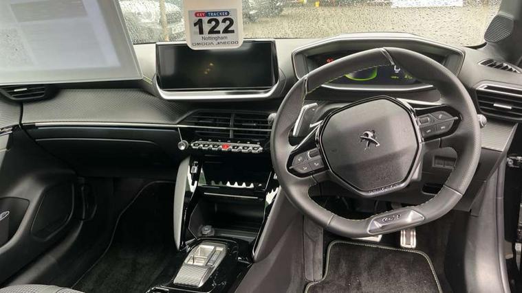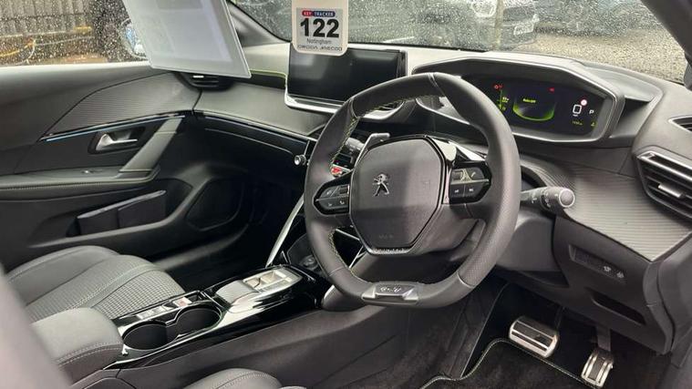 10" Capacitive colour touchscreen with connected 3D navigation, Bluetooth telephone facility, Driver attention warning, e-Toggle driving selector, Exterior temperature indicator with ice warning, Mirror screen with mirror link, apple carplay and android auto, Multi function trip computer, PEUGEOT i-Cockpit with compact steering wheel, PEUGEOT i-Cockpit with configurable 3D headup instrument panel, PEUGEOT SOS and assistance, Push button start, Smart phone docking station, Speed limit recognition and recommendation, Start/stop system, Visio park assist 180 with colour reversing camera + front and rear parking sensor, 2 front USB socket with USB-C, 2x USB sockets in rear, 6 speakers radio with mp3 compatible, DAB Digital radio, Voice recognition for radio, navigation and telephony features, 2 X Rear number plate lights, Automatic hazard light activation upon heavy brake application, Automatic lights, Automatic windscreen wipers, Body coloured exterior door handles, Dark tinted rear side and tailgate windows, Diamond Black roof, Electric front windows + one touch + anti-pinch, Electric rear windows with one touch/anti-pinch, Electrically adjustable, heated and power folding door mirrors, Extended diamond black rear spoiler, Follow me home headlights, Frameless electrochrome interior rear view mirror, Full LED headlights with smartbeam assist, Gloss black finish on B pillar, Gloss black rear cluster connecting strip, Gloss black wheel arch extensions, Gloss black window surround, GT model designation badging on C pillar, GT model designation badging on tailgate, Headlights left on audible warning, LED daytime running lights with 3 claw headlight with distinctive tooth design, LED side indicator lights integrated into door mirrors, LED third brake light, Model designation badges front and rear, Nera black door mirror shells, Peugeot scuff plates, Radiator grille - Dark chrome chequered and gloss black edge trim, Rear bumper with gloss black finish, Rear full LED 3D peugeot signature claw effect lights with daylight function, Rear lower bumper diffuser effect trim in gloss black, Rear reversing lights, Rear side wing doors, Rear windscreen wiper triggered automatically in reverse gear, Roof mounted aerial with fin design, Roof spoiler, Tailgate with heated rear windscreen and wiper blade, Twin chrome exhaust tailpipes, Variable front intermittent wipers, 1/3 to 2/3 split folding rear seats, 12V socket, 3 seat bench in 2nd row, 8 Colour personalisable ambient lighting, Aluminium pedals and foot rest, Automatic air conditioning, Automatic gear lever in full grain leather and satin chrome, Driver and front passenger seat manual adjustment in longitudinal and back rest angle, Driver and front passenger seat mechanical height adjustment, Driver and front passenger sport seats, Electric power steering with reach and rake adjustable steering column, Front and rear carpet mats in black with lime green stitch detail, Front centre armrest with storage compartment, Front LED interior light with 2 reading spotlights and rear interior light with timer, High centre console with 2 cup holders, ISOFIX child seat mounting points on passenger seat, Lime green contrast stitching to armrest, front centre console, door panels and dashboard facia, Map pockets on the backs of the front seats, Mistral full grain perforated leather steering wheel with aikinite stitch detail and satin chrome 'GT' emblem, Paddle shifts, Piano keys gloss black plated toggle switches to access main functions of the vehicle, Piano keys gloss black plated toggle switches to access touchscreen functions, Push button finished in black with chrome circle, Rear centre headrest, Roof lining - Mistral black, Seatbelt unfastened on the move audible and visual alert for front and rear seats, Single front passenger seat, 3 rear 3 point seatbelts, ABS (Anti-lock Braking System) with EBD (Electronic Brakeforce Distribution) and EBA (Emergency Braking Assistance), Active safety brake with night function/cyclists/pedestrians, Adaptive driver and front passenger airbags with passenger airbag deactivation function, Child locking functionality on rear doors, Driver/front passenger side airbags, Electric parking brake, ESP with Hill Assist, Front and rear curtain airbags, Front and rear disc brakes, Front optimised safety headrests and 3 x rear retractable headrests with height adjustable, Front three point retractable seatbelts with force limiters, Tyre pressure sensor, Acoustic vehicle alert system (AVAS), Automatic door locking when moving off, Deadlock, Electronic code immobiliser, Remote central locking, Thatcham cat. 1 alarm with anti lift sensor, Carbon effect Dashboard, front and rear door panel finish, 17" Bronx two-tone alloy wheels, Space saver spare wheel,