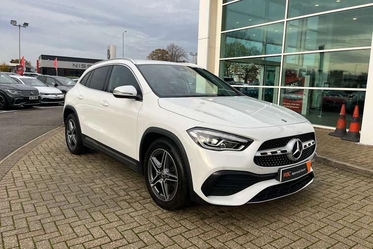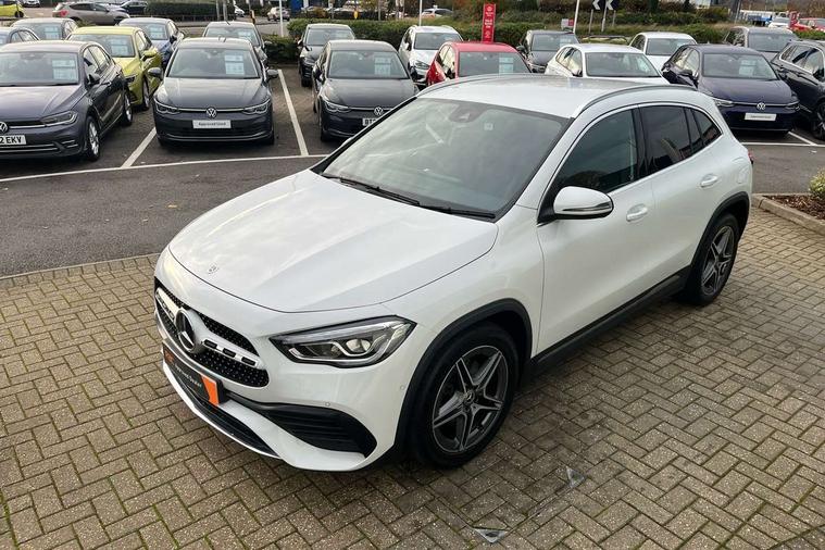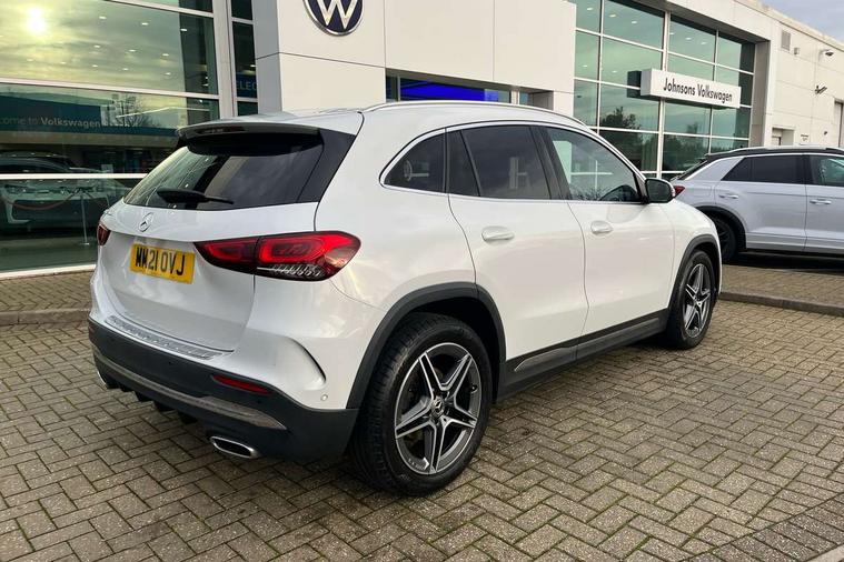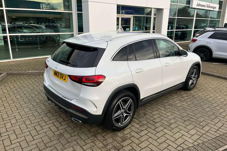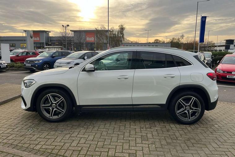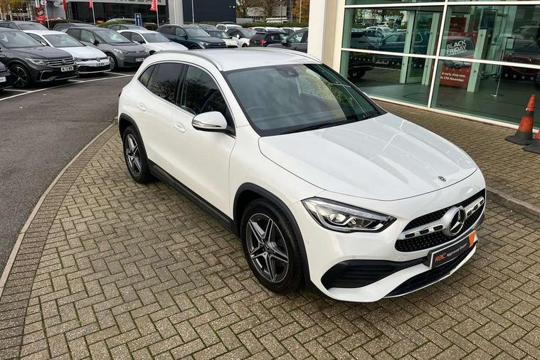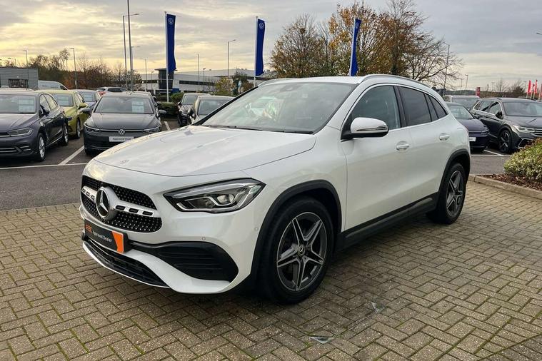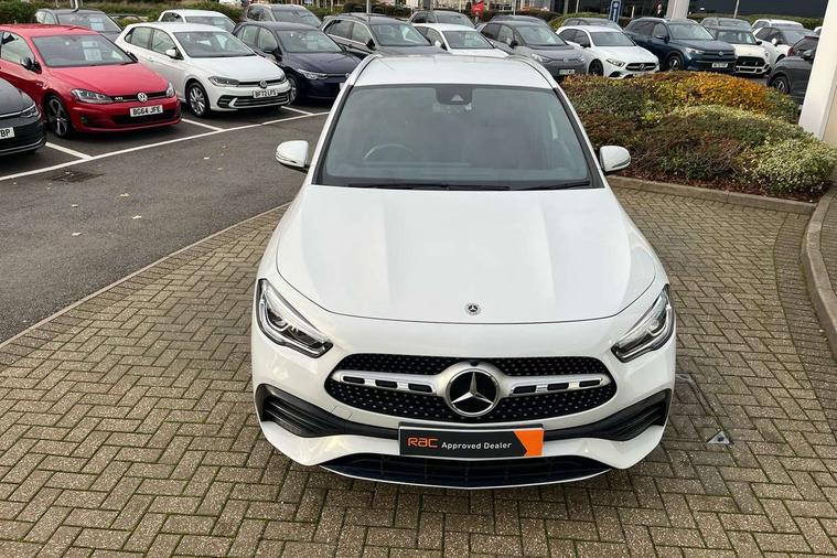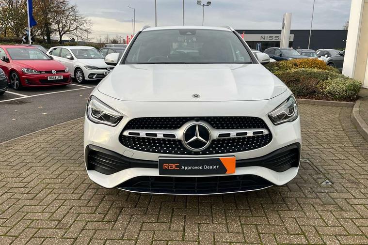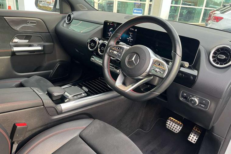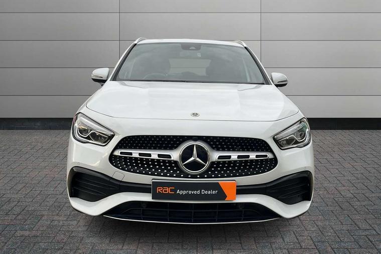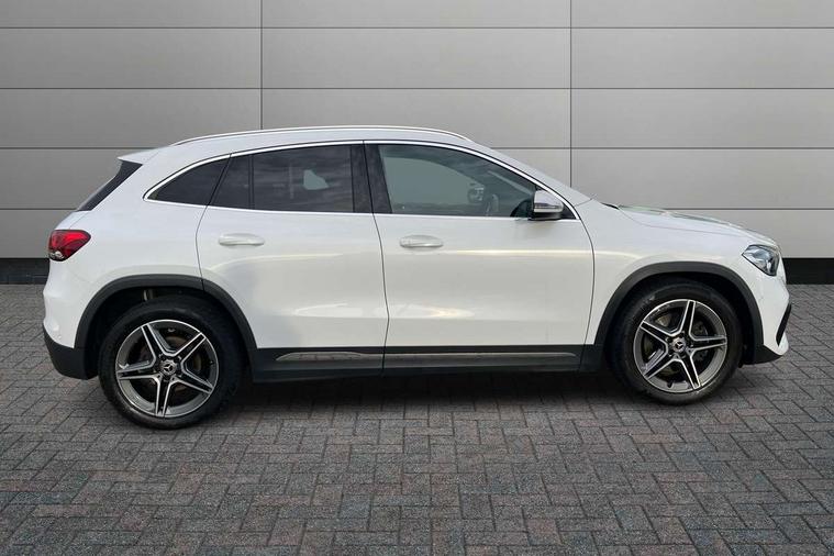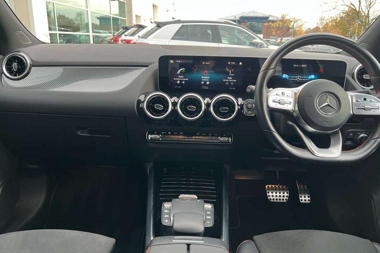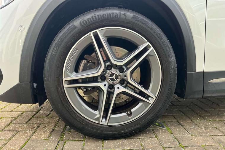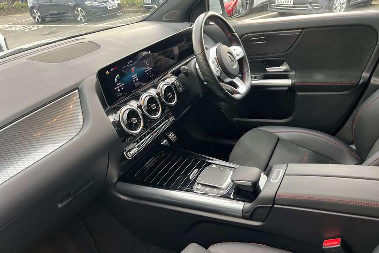10.25 inch touchscreen central media display, 7 inch digital instrument cluster display, Active lane keeping assist, Attention assist, Cruise control + speed limiter, Direct steering, DYNAMIC SELECT with a choice of driving modes (ECO, Comfort, Sport and Individual), Easy-pack tailgate, ECO start/stop function, Fluid level warning indicator for fuel, oil, coolant and washer fluid, Hard-disk navigation, Hey Mercedes Voice activation, Lamp failure indicator, Mercedes me connect including emergency call system, accident recovery, breakdown management and maintenance, Mercedes me remote services, Multi function trip computer, Outside temperature gauge, Owners manual and service booklet in English, Pre-installation of private car share, Radio aerial integrated into front and rear windshields, Service indicator (ASSYST), Smartphone integration with Apple CarPlay and Android auto, Speed limit assist, Status display for rear seat belts in instrument cluster, Lowered comfort suspension, Rear axle multi-link, 2 USB ports (type C) in rear stowage compartment and one in front of center console, Bluetooth connectivity including audio streaming, DAB Digital radio, MBUX multimedia system, Media interface, Mercedes-Benz sound system - 100W, Adaptive brake lights, Aerial for GPS, Aluminium roof rails, AMG front and rear apron, AMG specific/dual flow exhaust pipes in chrome (non-functional), Automatic headlamp activation, Beltline strips and weather strip in chrome, Black grained claddings with chrome parts, Body colour bumpers, Body colour door handles, Body colour door mirrors, Car wash function, Dark privacy glass from B-pillar backwards, Electric front windows, Electric rear windows, Electrically adjustable and heated door mirrors with integrated LED indicators, Front door sills with Mercedes-Benz lettering, Heated glass rear windscreen + timer control, Heated windscreen wash system, Interior mirror with black reading lamps and frameless, LED high performance headlamps with integrated LED daytime running lights, LED tail lights in two piece design, LED third brake light, Matt titanium grey front and rear apron trim, Rain sensor windscreen wipers, Rear fog lights, Roof spoiler, Single lamella raditor grille with chrome dotted diamond grille and inlay, 12V power socket in centre console, 3 spoke multifunction sports steering wheel in nappa leather with flattened bottom and perforated grip area, 40:20:40 split folding rear seats with backrest, Adjustable head restraints, Air conditioning - Two zone thermotronic luxury automatic climate control with display, Ambient lighting in front headrests, AMG floor mats with AMG lettering and stiched edging, Artico man-made leather/Microfibre Dinamica upholstery with red contrast stitching, Auto Mercedes-Benz child seat recognition sensor, Black roof lining, Brushed door pulls in silver chrome, Courtesy light in boot, Front centre armrest with stowage, Galvanished gear shift paddles on steering wheel, Heated front seats, Illuminated glovebox, Leather trimmed gearknob, Luggage net on driver/front passenger seat backrest, Manually height and reach adjustable steering column, Multi-gesture touchpad control on center console, Sports pedals in brushed stainless steel with black rubber studs, Sports seats, Stowage compartment in centre console, Stowage compartment with retractable cover, Sunvisors with illuminated vanity mirrors, Twin front cup holders, Two outer rear seat isofix and top tether child seat fixing points, AMG body styling pack - GLA, Comfort seat pack - GLA Class, Interior lighting with light and sight pack - GLA, Load compartment pack - GLA, Mirror pack - GLA Class, Parking pack - GLA, 3 rear 3 point seatbelts, ABS with Brake Assist, Active bonnet pedestrain safety measure which detects an impact and raises bonnet by 65mm, Active brake assist includes forward collision warning system with autonomous braking, Adaptive brake assist with hold function and hill start assist, Bonnet with power domes, Brake pad wear warning indicator, Childproof locks manually operated for rear doors and electrically operated for rear power windows, Crash responsive emergency lighting, Driver and passenger head and side airbags, Drivers knee airbag, Dual stage driver/passenger airbags, Electronic parking brake, ESP curve dynamic assist, ESP with ASR, Front and rear seatbelt reminder, Front brake callipers with Mercedes Benz logo lettering on front, Front passenger seat occupancy sensor, Internally ventilated brakes with perforated brake discs at the front, Tyre pressure monitoring system, Warning triangle and first aid kit, Window airbags, Alarm system with immobiliser and interior protection -Thatcham category 1, Keyless Go starting function, Remote central locking and crash sensor with emergency opening function, Urban guard vehicle protection, Vehicle key with decorative surround in chrome, Carbon structure trim, Chrome air vent surrounds, 19" AMG 5 twin spoke light alloy wheels aerodynamically optimised painted in tantalite grey with a high sheen finish, Summer tyres, Tirefit tyre sealant kit,
