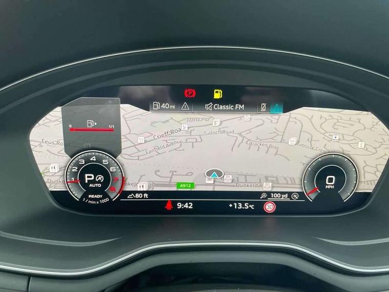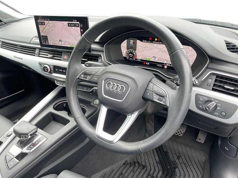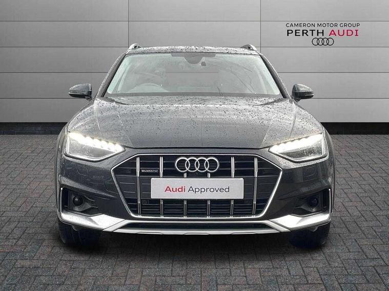 Audi connect safety and service (e-call), Audi connect with Amazon Alexa Integration, Audi drive select, Audi parking system plus with front and rear sensors, Audi smartphone interface, Audi virtual cockpit, Automatic start-stop system with coasting functionality and efficiency programme, Bluetooth interface, Electromechanical power steering, Email, calendar and text messages displayed via MMI, MMI Navigation plus with MMI touch includes 10.1" high resolution colour MMI display, 3D map, Power operated tailgate, Rear view camera, Voice control system, 58 Litre fuel tank, Comfort dynamic suspension, Quattro all wheel drive, 2 USB charging ports, 8 passive loudspeakers, DAB digital radio reception, Allroad radiator grille with vertical chrome slats, Auto dimming rear view mirror, Body coloured door mirrors, Chrome plated exhaust trims, Door sill trims in aluminium inlay with allroad logo, Electrically folding auto dimming/adjustable/heated door mirrors with LED side indicators and kerb view function for passenger side, Extended side sills in selenite silver, Front acoustic glazing, Front and rear bumpers and extended wheel arches in contrasting finish, High beam assistant, LED headlights with LED rear lights + dynamic rear indicators + headlight adjustment and high beam, turning light + LED daytime running lights, Privacy glass, Rain and light sensors, Underbody protection, Windscreen with acoustic glazing, 3 spoke high multi-function leather sport steering wheel with paddle shift and height and reach adjustable, 4 way electric lumbar support for driver and front passenger, 40/20/40 split folding 3 rear seat bench in 3 parts with rear centre armrest, Deluxe 3 zone electronic climate control, Electric load area cover, Front and rear head restraints, Front centre armrest, Heated front seats, ISOFIX child seat mounting and top tether, Manual seat adjustment, Stainless steel loading sill protector, Twin leather upholstery + front sports seats, Exterior off road aluminium package - A4 Allroad, High gloss package - A4, LED Interior light pack - A4/S4, Storage and luggage compartment pack - A4, 3 rear seatbelts, 6 airbags - Driver, front passenger, curtain and side windows, Electronic Stabilisation Control (ESC) including ABS, ASR and EDL, Hill hold assist, Multi collision brake assist, Off road detection system, Pop-up bonnet for pedestrian protection, Pre sense city, Seatbelt monitoring, Warning triangle and first aid kit, Anti theft alarm, Anti theft wheel bolts, Keyless Go, Aluminium ellipse silver inlays, Tool kit, Tyre repair kit,