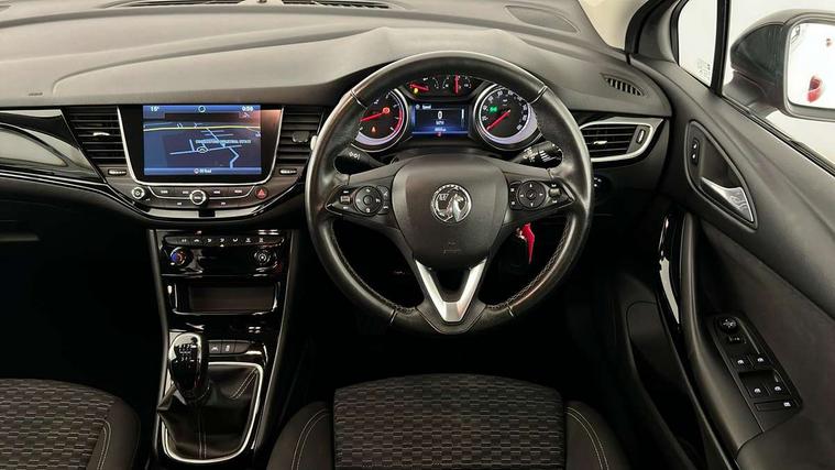 Central facia display with digital clock, outside air temperature and audio information, Cruise control + speed limiter, Digital fuel gauge with low fuel warning light, Digital water temperature gauge with warning light, Electric speed sensitive power steering, Facia mounted Sport switch, Gearshift up/down indication light, Left Key in ignition audible warning, Lights on audible warning, Monochrome colour display in instrument cluster, Multi function trip computer, Oil life monitoring system, Rev counter, Service due indicator, Speedometer, R4 Intellilink infotainment Sat Nav, 7" screen, DAB, traffic program, USB/iPod/Bluetooth audio stream, microphone, 2D map, Apple CarPlay/Android Auto, Steering wheel mounted audio controls, Adaptive brake lights, Automatic lighting control, Body colour door handles, Body colour rear roof spoiler, Body coloured door mirrors, Chrome effect upper window trim, Chrome front grille, Chrome headlight surround, Dipping rear view mirror, Door to door illumination, Electric front/rear windows/one touch facility, Front fog lights, Gloss black finish B pillar, Gloss black finish C pillar, Hazard warning lamps, Heated rear screen with timed cut off, High level LED centre rear brake light, Intermittent rear wash/wipe, LED daytime running lights, LED side repeat indicators, Rain sensor windscreen wipers, Rear fog lights, Reversing light, Shark fin roof aerial, Side window demist vents, Solar heat absorbing windscreen and windows, Tinted windows, Tunnel detection for auto light control, Twin electrically adjustable and heated door mirrors, Two speed windscreen wipers with variable intermittent wipe, Windscreen demist vents, 12V electrical accessory socket in front, 3 spoke leather covered steering wheel with accent stitching, 60/40 split folding rear seat, Ambient LED downlighter in facia/centre console, Black door panels with black atlantis cloth inserts, Chrome interior door handles, Driver and front passenger illuminated vanity mirrors with flip up covers, Driver and front passenger sunvisors, Fade up/down courtesy light, Folding storage box on driver side lower facia, Four adjustable facia vents, Four load restraint lashing eyes, Front and rear door pockets, Front centre armrest with storage, Front courtesy lights, Front red LED ambient lighting, Front seat back storage pockets, Fully carpeted load area, Glovebox with lid, Height adjustable and removable rear head restraints (x3), Height adjustable front head restraints, Illuminated load area, Interior tailgate handle, Isofix child seat mounting points on outer rear seats, Luggage compartment cover, Plain black fabric side bolsters and surrounds, Reach + rake adjustable steering column, Rear courtesy lights, Satin chrome effect bezel on steering wheel, Storage compartment in centre console, Titanium headlining, Twin front reading lights with illuminated switches, Twin gas assisted tailgate struts, Twin rear reading lights with illuminated switches, Two drinks holders in centre console, Driver's ergonomic active seat pack - Astra SRi/SRi Vx-Line/Elite, Driver's ergonomic active seat pack with Formula cloth upholstery- Astra, 3x3 point rear seatbelts, Anti-lock braking system (ABS), Child locks on rear doors, Electronic Stability Programme, Height adjustable front seatbelts, Hill start assist, Passenger airbag deactivate switch, Pedal release system, Seatbelt pretensioners on front/outer rear seats, Seatbelt warning, Six airbags - Driver's dual stage airbag/front passenger's dual stage airbag/front seat side impact airbags/full size curtain airbags, Traction control, Tyre pressure monitoring system, Electronically protected audio, Engine Immobiliser & Deadlocks, Freewheeling door locks, Locking wheel bolts, Remote control central locking, Remote control ultrasonic security alarm system, Visible vehicle identification number, Black facia with piano black trim inserts, Instrument panel bar in piano black, Piano black trim inserts on front doors, Silver air vent surrounds,