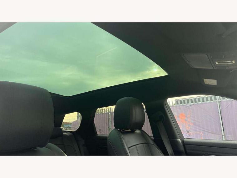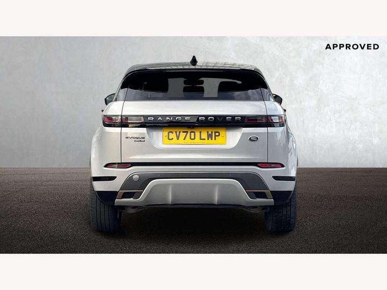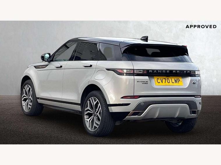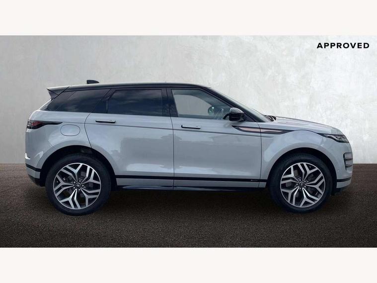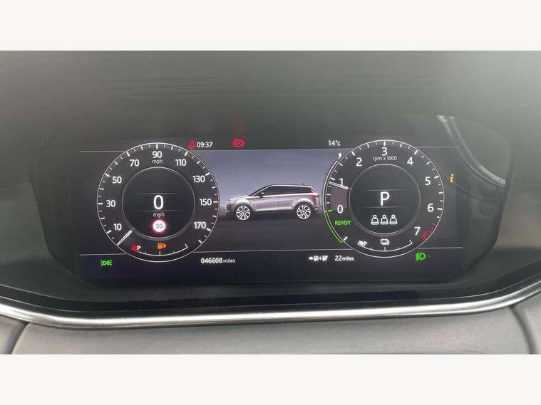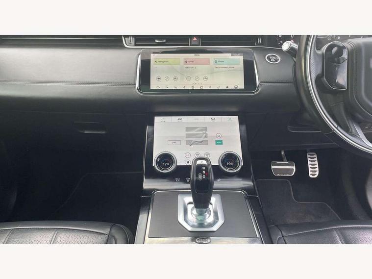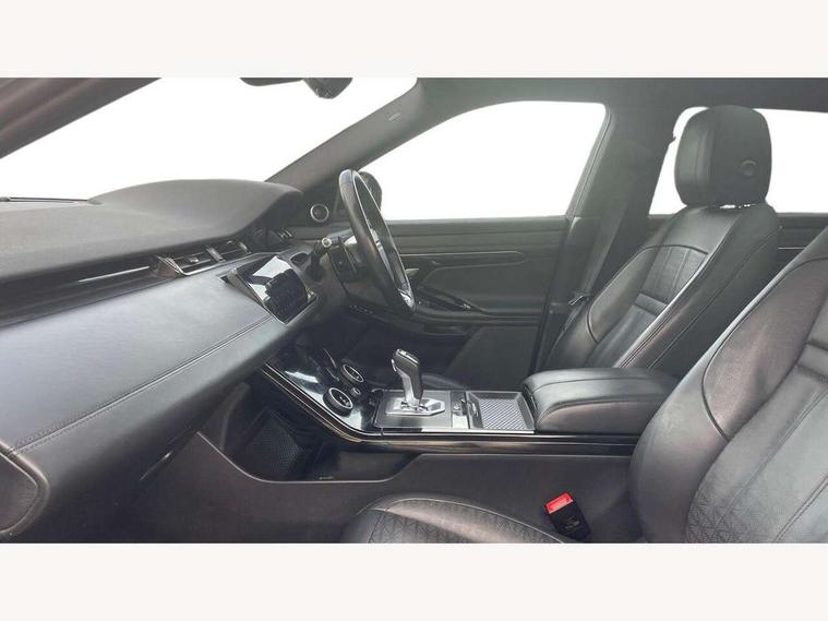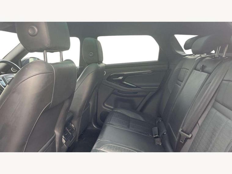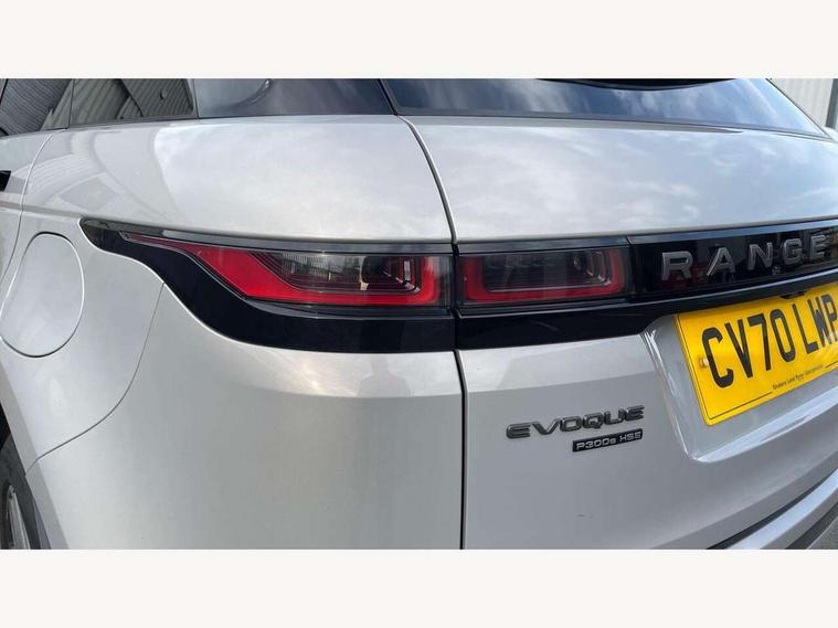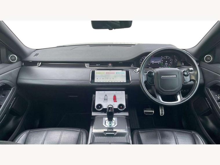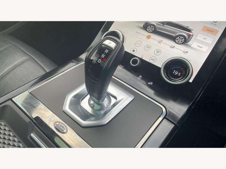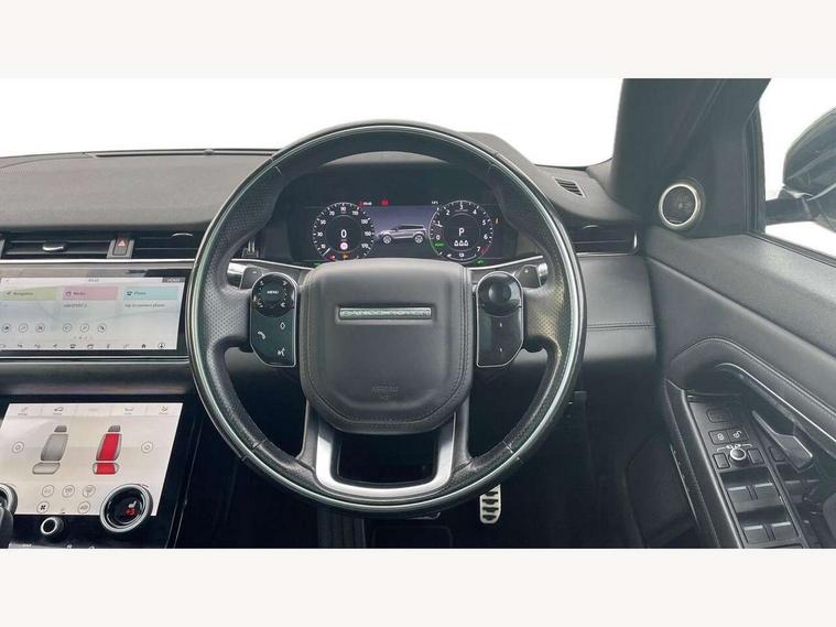 3D 360 degree surround camera, Adaptive cruise control, Android Auto, Apple car play, Blind spot assist, Bluetooth connectivity, Brake pad wear indicator warning light, Clear exit monitor, Driver condition monitor, Duo touch pro, Electronic power assisted steering (EPAS), InControl remote, Interactive Driver display instrument cluster, Land Rover InControl apps, Lane keep assist, Pivi pro connected includes upgraded infotainment, connected navigation pro, Nuance speech licence, Powered gesture tailgate/boot lid, Push button starter, Rear collision monitor, Rear traffic monitor, Traffic sign recognition with adaptive speed limiter, Voice control system, Wade Sensing, 7 kW onboard charger, All terrain progress control, Large fuel tank, Passive suspension, Public charging cable, Terrain Response 2 Auto, Digital Audio Broadcast radio-DAB, Steering wheel mounted controls, Automatic headlight levelling, ClearSight interior rear view mirror, Electric windows with one touch open/close and anti trap, Evoque and R-Dynamic badge, Flush deployable exterior door handles, Heated rear window with timer, Heated washer jets, Heated windscreen, P300e badge, Power fold, auto-dimming, heated door mirrors with approach lights and auto dimming driver side, R-Dynamic branding illuminated metal tread plates in loadspace and row 1 with brand name script and non illuminated metal in row 2, Rain sensing windscreen wipers, Rear fog lights, Shadow atlas bonnet and tailgate script, Tailgate spoiler, 40:20:40 split folding rear seats with centre headrest and armrest, Ambient interior lighting, Bright metal pedals, Isofix system on outer rear seats, Overhead lighting console, Overhead stowage for sunglasses, Passive front head restraints, Rear air vents, Rear centre headrest, Satin chrome gearshift paddles, Sunvisors with illuminated vanity mirrors, Twin sliding front centre armrest, 3 rear 3 point seatbelts, Anti-lock braking system (ABS), Customer configurable autolock, DSC - Dynamic Stability Control, Electronic brake force distribution, Electronic parking brake, Electronic traction control, Emergency braking, Front and rear seatbelt reminder, Hill descent control, Hill launch assist, Low traction launch, Power operated child locks, Roll stability control, Six airbags - Driver and passenger airbags/driver knee airbag/front side airbag and curtain airbags, Torque vectoring brake, Tyre pressure monitoring system, Alarm, Immobiliser, Intrusion sensor, Keyless entry, Locking wheel nuts,