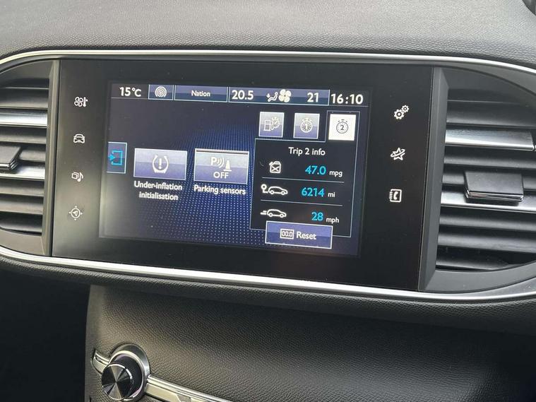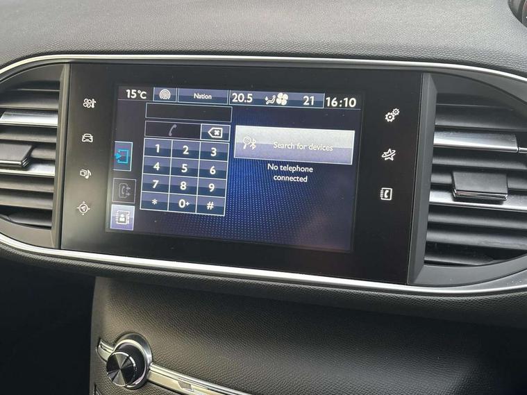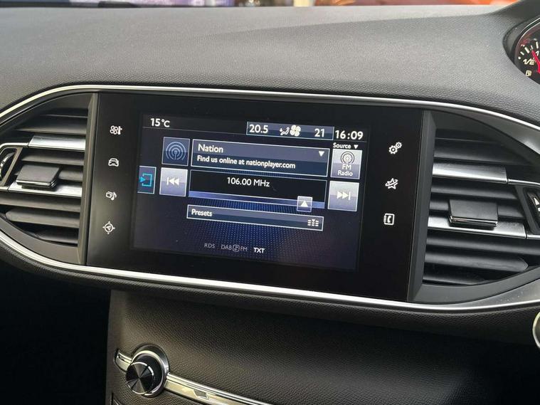 Colour satellite navigation, Front parking sensors, Rear parking sensor, Service interval indicator, Touch screen display, Trip computer, DAB Digital radio, Peugeot connect with USB and bluetooth, Steering column mounted multifunction controls, Automatic front rain sensing wipers, Automatic headlights, Body colour door mirrors, Body coloured bumpers, Colour coded door handles, Electric adjustable door mirrors, Electric folding door mirrors with courtesy approach lighting, Electric front windows/one touch facility, Electric rear windows, Electrochrome rear view mirror, Follow me home headlights, Halogen front foglights, Intermittent rear wash/wipe, LED daytime running lights, LED Headlights, LED rear lights, Tinted rear windows, Tinted rear windscreen, 12V accessory power point in centre console, 60/40 split folding rear seat back and squab, Adjustable front centre armrest, Dual zone automatic air conditioning, Front headrests, Front seat back map pockets, Height adjustable passenger seat, Height/reach adjust steering wheel, Isofix on 2nd row rear seats, Leather steering wheel and gearshift, Rear headrests, 3x3 point rear seatbelts, ABS/EBFD/EBA, Driver SMART airbag, Electronic parking brake, ESP with Hill Assist, Front and rear curtain airbags, Front passenger SMART airbag with deactivate switch, Front side airbags, Deadlocks, Locking wheel bolts, Remote control central locking, Rolling code transponder immobiliser, Thatcham cat 1 ultrasonic alarm,