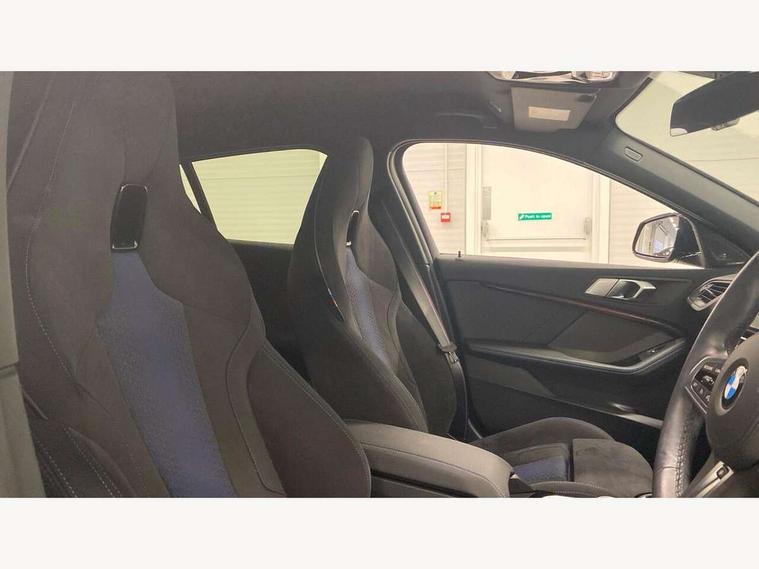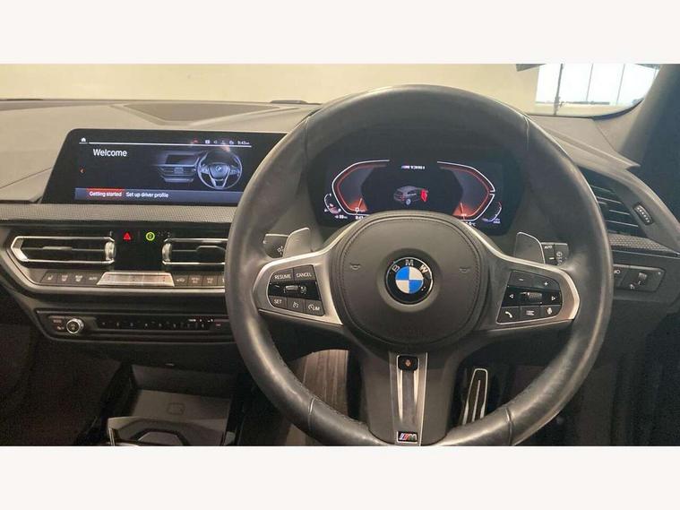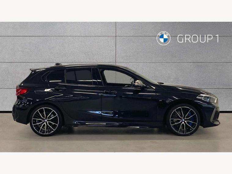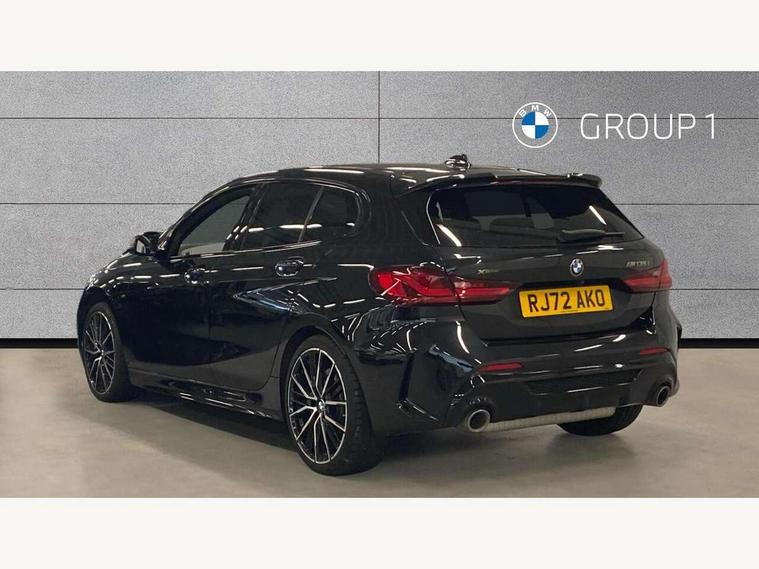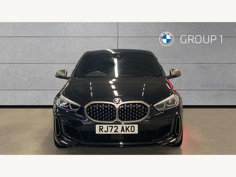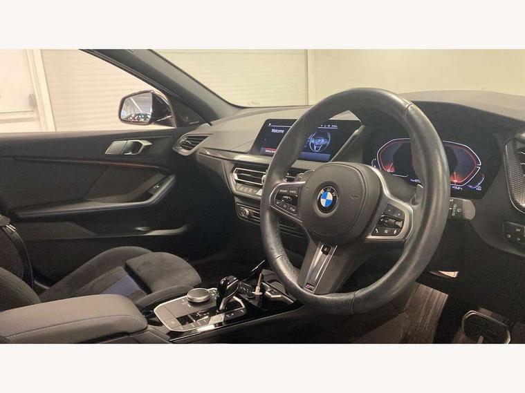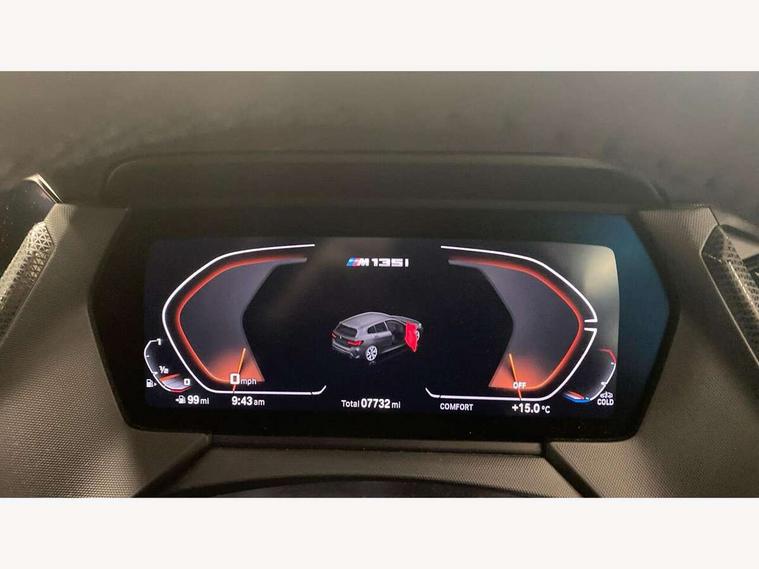 Active guard plus, Attentiveness assist, BMW ConnectedDrive online services, BMW Teleservices, Check Control warning system for monitoring of lights and door/luggage compartment open warning, Cruise control with brake assist, Eco pro mode, Electric power steering, Electro hydraulically controlled multi-plate clutch transfers drive to rear axle and with power take-off device located on the front differential., Energy efficient operating strategy, Front axle single joint with specific axle kinematics to minimise drive influences on steering + provide increased rigidity agile driving behaviour, Gearshift time display in manual mode, Integrated owners handbook, Lane departure warning system, M Sports steering with M135i xDrive specific settings, Oil sensor for level and grade, On board computer, Optimum shift indicator, Personal Profile, Pull away assistant, Rigidly mounted rear subframe - Multi link construction with separate spring / damper configuration and excellent driving characteristics, Speed limit Info including no-overtaking indicator, Speed limiter, Sporty fast gear shifting in sport mode, Aluminium lightweight construction, Anti roll bar front and rear, Balancer shaft, Double VANOS, Drive Performance Control, Eight speed sport automatic transmission with gearshift paddle switches, Electronic differential lock, Electronic selector lever, Engine cover with M performance designation, High precision injection, Larger fuel tank capacity (50 litres), Launch control, M135i specific heavily de-throttled engine intake air guide, M135i specific high-performance cooling package, M135i specific larger turbocharger with integrated divert-air valve, Petrol Particulate Filter, Twin tube gas filled shock absorbers with degressive characteristic curve, VALVETRONIC engine management, Variable, stepless and infinitely adjustable distribution of drive torque between the front and rear axles, xDrive intelligent all wheel drive with M135i specific reinforced components, DAB Digital radio, Auto dimming rear view mirror, Automatic headlight beam throw control, Automatic windscreen wipers and automatic headlight, Body colour door handles, Body colour roof trims, Cerium grey exterior mirror caps, Direction indicator side lights in exterior mirrors, Exhaust tailpipe, Cerium Grey with bevelled finish - twin, round 100mm, left and right split, Fading support, Folding side mirrors with auto dimming/folding wing mirrors with auto dimming, Follow me home headlights, Front and rear bumper system with replaceable deformation elements, Front and rear electric windows with open and close fingertip control, anti trap facility and comfort closing, Front door sill finishers with M135i designation, Green tinted heat protection glazing, Heated, electrically adjustable exterior mirror aspheric on driver side, convex on passenger side, High gloss shadowline window frame, Recess cover mirror frames and B/C pillar embelisher trim, High level third brake light, Integrated front windscreen with washer jets, Kidney grille frame in Cerium Grey with Mesh design, LED daytime running lights, LED eyebrow turn indicators, LED front fog lights, Lightweight engineering, M logo designation side in cerium grey, M Performance exhaust system with valve control and minimised exhaust back pressure, M Performance specific setup, M Sport spoiler, Matt black air guide grilles, Matt black wheel arch trim, Model designation on electric bootlid includes xDrive designation for M135i xDrive, Nearside reverse light in rear light cluster, Preparation for high beam assistant, Rear fog lights, Rear side wing doors, Rear window wiper, Reinforced crank drive, new pistons and adapted con rods, Shark fin antenna, Trailer stabilisation logic, Visible VIN plate, Welcome lighting, 12V power socket in front centre console with blanking plug, 3 rear seat head restraints, 3 seat bench in 2nd row, 3 spoke sports leather steering wheel with black leather and stitching, pearl chrome decorative finish, specific M Badge, Anthracite headlining, Black boot net with lashing eyes, Cargo function on 2nd seat row, Child seat ISOFIX attachment for two outer rear seats and front passenger seat with anchorage points, Conditioned based service, Driver and front passenger seat heating, Folding rear clothes hook, Four grab handles integrated in roof lining, Front and rear door pockets with bottle holders, Front and rear side armrest integrated into door trim, Front armrest, Front integrated head restraints, Front M sports seats, Glove compartment, Luggage compartment for bag hooks on left and right, foldable luggage compartment liner and four lashing eyelets, Manual adjust steering wheel, Multi-function controls for steering wheel, Single front passenger seat, Storage compartment in centre console, Sun visors with vanity mirrors and insert tab, Two front centre console cupholders, Two zone automatic air conditioning, Velour floor mats, Additional interior lighting pack - 1 Series M135i, BMW live cockpit professional pack- 1 Series, Connected pack professional - 1 Series, Interior lights pack - 1 Series, M Sport exterior styling aerodynamics pack - 1 Series 135i, 2 tone horn, 3 point seatbelts on all seats, front pyrotechnic belt tensioners, stopper and belt force limiters, rear coded belt buckles, Airbags - Front driver/passenger, front and rear curtain head protection, front side, manual deactivation of front passenger airbag, Anti lock braking system (ABS) with brake assist, BMW emergency call, Brake drying, Braking readiness, Child proof locking system in rear door, City braking function, Comfort modes, Cornering brake control, Crash sensor activating central locking release, hazard warning lights, fuel cut off, interior lighting + activation of safety battery terminal clamp, Driver and front passenger seat belt security check, Dynamic stability control + (DSC+), Dynamic Traction Control - DTC, Electrically operated hand brake including automatic hold function, Front and rear