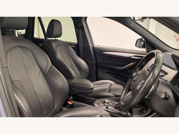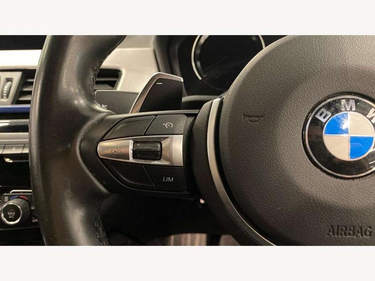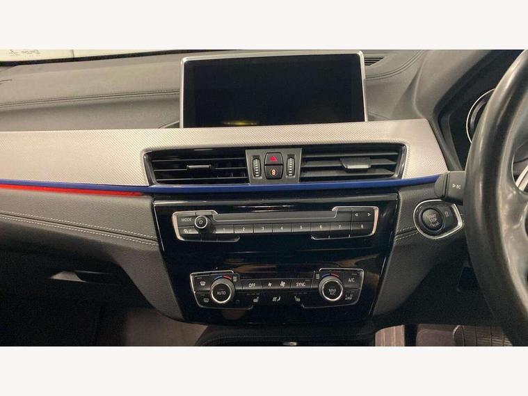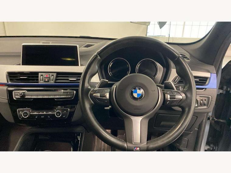 Ambient temperature display, Attentiveness assist, Automatic tailgate opening, BMW Online services, BMW remote services, BMW Teleservices, Brake pad wear indicator in front and rear, Front/rear park distance control (PDC), Instrument cluster with speedometer with miles per hour read out, tachometer and fuel gauge, Lights on warning by audio warning signal when ignition is switched off, Navigation system + 8.8" monitor, On board computer, Optimum shift indicator, Outside temperature gauge, Park assist system, Personal Profile - automatic lock when driving away selectable, Real time traffic information, Service interval indicator, Servotronic PAS, Stop/start button, Tyre puncture warning system, 12V compressor with integrated sealant injection bottle and hose, 51 Litre fuel tank, Anti-roll bars, Balancer shaft, Drive performance control with ECO PRO comfort + sport mode, Electronic differential lock, High precision injection, Performance Control, Twin tube gas filled shock absorbers with degressive characteristic curve, 2 USB Power socket for rear seat, DAB Digital radio, USB connection located in centre console, USB/audio interface, Adjustable headlights, Aero curtain, Automatically dimming rear view mirror, Body colour bumpers, Body colour door handles, Body colour door mirrors, Body colour wheel arches and side sills, Clear lenses direction indicator lights, Direction indicator side lights integrated exterior mirrors, Dynamic brake lights, Electrically adjustable door mirrors with aspheric on driver side, convex on passenger side with integrated indicators, Exterior mirrors - electrically folding with anti-dazzle, Fingertip control / anti-trap function on electric window, Follow me home headlights, Front air guide finished in black silver, Front air inlets in matt black with silver finisher matt, Front and rear bumper system, Front and rear electric windows, Front bumper air intakes with dark shadow finisher, Green tinted heat protection glazing glass, Headlight beam throw control, Heated door mirrors, Heated windscreen washer jets, High gloss shadow line, High level third brake light, Kidney grille with 14 chrome black vertical bars, LED daytime running lights, LED front fog lights, Lightweight engineering, M aerodynamic body styling, M logo designation in side chrome, Model designation, Rain sensor including auto headlights activation, Rear bumper with dark shadow and underbody protection in body colour, Rear fog lights, Rear window aerial, Rear window wash/wipe, Reversing light in rear light cluster, Roof mouldings in matt black, Shark fin antenna, Sill cover in silver matt insert, Twin chrome exhaust tailpipes x2, Visible VIN plate, Welcome lighting, 12v power point in centre console, 3 rear headrests, 4 grab handles, 40:20:40 split folding rear bench seat, Anthracite headlining, Automatic light activation, Boot light, Child seat ISOFIX attachment for two outer rear seats and front passenger seat with anchorage points, Dakota leather upholstery with perforation and contrast stitching, Driver and front passenger heated seats, Driver/front passenger seat backrest back with luggage net, Driver/passenger sunvisors with ticket holders, Dual zone automatic air conditioning, Extended storage, Front and rear door armrests, Front centre armrest/sliding cover, Front door sill finishers with M designation, Front sports seats, Front/rear adjustable head restraints, Gearshift lever with M designation, Illuminated glovebox, Leather gearknob/gaiter/handbrake grip, LED ambient lighting in door trim, Luggage area underfloor compartment, Luggage compartment access via recessed handle below tailgate, Luggage compartment lighting, Luggage compartment loading edge with stainless steel insert, Manually adjustment steering wheel column, Multifunction steering wheel, Rear coded belt buckles, Steering wheel gearshift paddles, Velour floor carpets, Extended lights pack - X1, Extended storage package - X1, 3 rear 3 point seatbelts, ABS/EBD, Audio/visual collision warning system, Automatic Stability Control (ASC), Battery safety cut-off, BMW emergency call, Brake drying, Brake energy regeneration, Braking readiness, Cornering brake control (CBC), Crash Sensor - activates hazard/interior lighting + unlocks doors, Driver/Front Passenger airbags, Driver/front passenger side airbags, Dynamic brake control, Dynamic stability control + (DSC+), Dynamic Traction Control - DTC, Electronic parking brake, Front and rear head airbags, Front passenger airbag deactivation, Front seatbelt force limiters, Front ventilated disc brakes, Hill start assist, Pyrotechnically pre-tensioned front seatbelts, Rear disc brakes, Rear door child safety locks, Seatbelt security check for driver and front passenger, Side impact protection, Twin horns, Tyre pressure monitor, Warning triangle and first aid kit, Auto door lock when driving, Central locking switch for all doors, fuel filler cap and luggage compartment, Check control system for monitoring of lights and door/luggage compartment open warning, Engine immobiliser, Locking wheel nuts, Remote control Thatcham category 1 alarm, Remote control with integrated key with M specific highlight, Contrast stitching on instrument panel, High gloss black centre console, Low rolling resistance tyres,