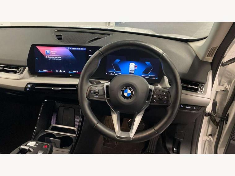 Attentiveness assist, Automatic start/stop function, BMW Operating system 9 with BMW Maps, real-time traffic information, in-car experiences, remote services and smartphone integration, BMW Teleservices, Brake pad wear indicator, Condition based service, Connected eDrive Services, Drive off assistant, Electrically opening/closing tailgate with opening/closing with remote control and contactless opening and closing, iDrive controller, Language version English, My Modes, Personal Profile - automatic lock when driving away selectable, Servotronic PAS, Tyre puncture warning system, Widescreen display, EU6 emissions management, Performance Control, Petrol Particulate Filter, Standard suspension, Steptronic transmission with double clutch, DAB Digital radio, Badge on engine compartment lid and tailgate, BMW radiator grille with grille struts, end face black high-gloss, radiator grille frame chrome high-gloss, Dynamic brake lights, Electric adjustable heated door mirrors, Electric windows - front and rear, with open/close fingertip control, anti-trap facility and comfort closing, Folding door handles integrated flush with surface, Follow me home headlights, Front bumper panel with air inlet in matt black, Front door exit lights, Heated rear window, High gloss shadow line incl A/B/C-pillar panel/window frame/recess finish strip/window rail front door/mirror frame/cover panel in high gloss black, Invisible exhaust tailpipe, LED 3rd brake light integrated in rear spoiler, LED daytime running lights, LED number plate light, M roof rails high gloss shadow line, Matt black roof strips, Rain sensor including auto headlights activation, Rear bumper panel with two L-shaped trims In pearl chrome, Rear side wing doors, Rear wiper, Sill cover in body colour, Trailer stabilisation logic, Windscreen washer nozzle for rear view camera, Windscreen wipers front with heated washer nozzles, 12V - Power sockets with front centre console and luggage compartment, 2 bag hooks in luggage compartment, 2 cup holders in front, 2 x USB Type C ports for charging and data transmission (front centre console) and 2 x USB Type C ports for charging (rear centre console), 3 rear headrests, 3 seat bench in 2nd row, 3 upper retaining strap clips integrated into rear panels of seat backrests, 40:20:40 split folding rear seats, Ambient interior lighting, Anthracite Velour front and rear floormats, Bottle trays in all doors, Child seat ISOFIX attachment for two outer rear seats and front passenger seat with anchorage points, Clothes hook rear, Dual zone automatic air conditioning, Front and rear door pockets, Front centre console storage compartment, Front/rear adjustable head restraints, Glove compartment, Light on right in luggage compartment, Manual steering column height and depth adjustment, Map pockets, Middle centre console storage compartment, One piece parcel shelf opens together with tailgate and removable, Rear armrest in door trim panel, Single front passenger seat, Sport leather multifunction steering wheel with thumbrests and operation of instrument display, audio, telephone and driver assistance, Storage compartment net in left side trim panel, Storage compartment with folding cover under centre console armrest cushion, Storage tray in right side trim panel, Tilt adjustment incl. cargo function of 2nd row of seats, Trim elements on steering wheel spokes in pearl chrome, ABS/EBD, Automatic hold function, Automatic Stability Control (ASC), BMW emergency call, Braking readiness, Cornering brake control (CBC), Crash Sensor - activates hazard/interior lighting + unlocks doors, Driver/Front Passenger airbags, Driver/front passenger side airbags, Dry braking, Dynamic brake control, Dynamic stability control + (DSC+), Electromechanical parking brake, Energy recovery system, First aid kit, Front and rear brake discs, Front and rear head airbags, Front passenger airbag deactivation, Integrated brake system, PC iBrake PostCrash approach control warning with light braking function, Rear door child safety locks, Three point seat belts in all seats, Tyre pressure monitor, Warning triangle, Alarm system with tilt sensor, monitoring doors, bonnet interior and tailgate, Closing system with central locking, Locking wheel bolts, Tyre repair kit (including Tyre sealant and 12V Compressor),
