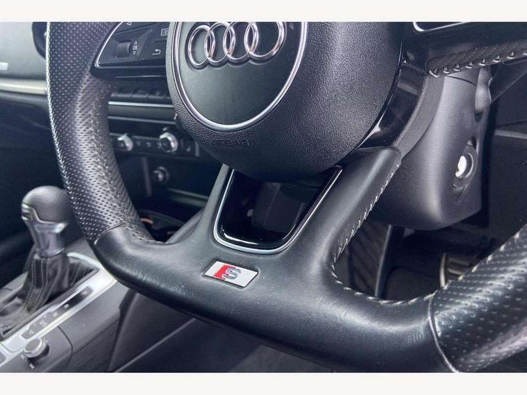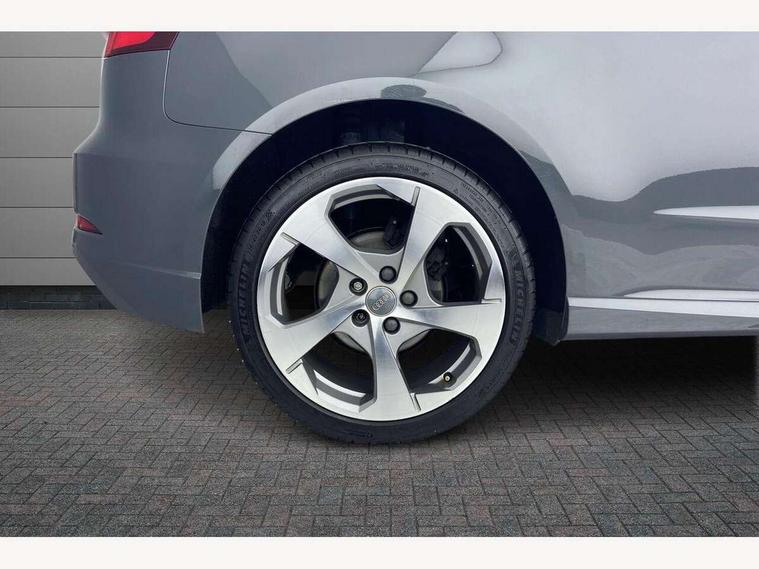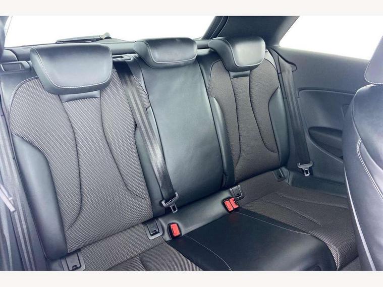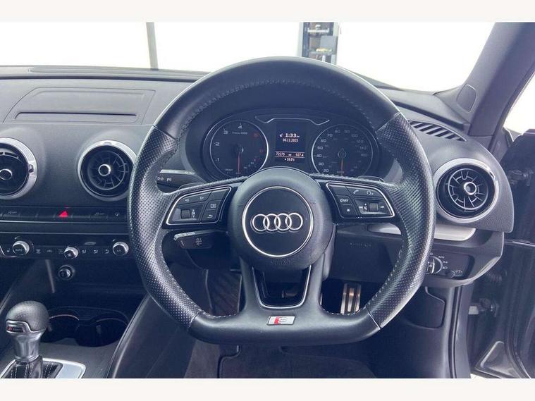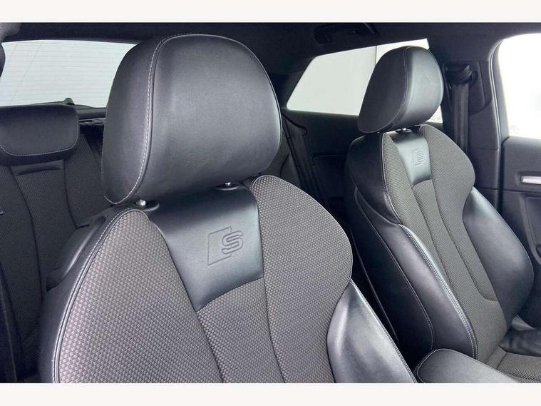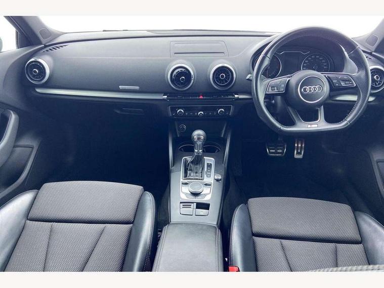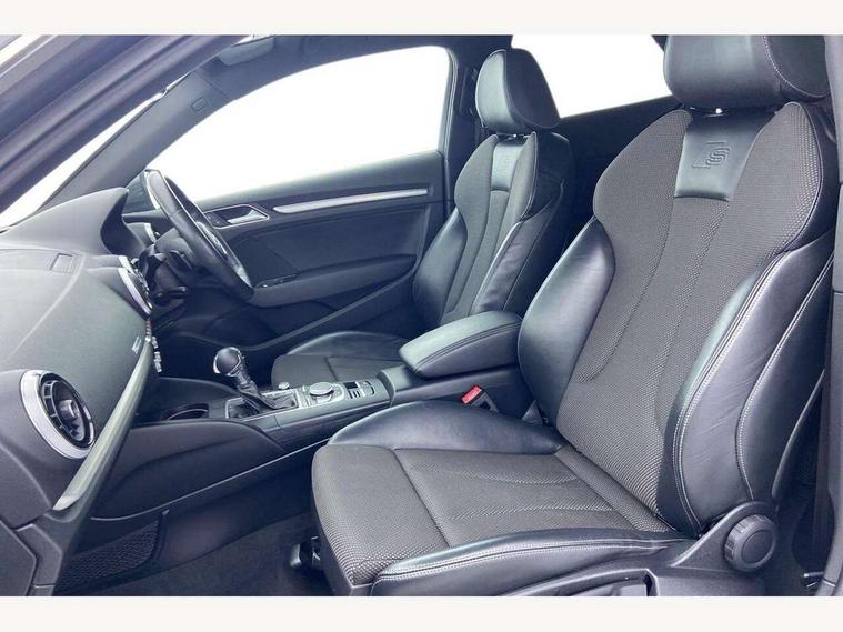 Audi connect, Audi drive select, Audi smartphone interface, Colour driver's information system display, Electro-mechanical PAS, Mobile telephone preparation - bluetooth interface, Service interval indicator, Speed limit display, Voice control system, Diesel particulate filter, 2 USB ports, Audi music interface, Auxiliary input socket, DAB Digital radio, Aluminium window trim, Body colour bumpers, Body colour door mirrors with integral indicators, Body colour roof spoiler, Chrome exhaust tailpipes, Electric front windows, Electric operated/heated door mirrors, Heated windscreen washer jets, LED daytime running lights, Matt black radiator grille, Rear wiper, S Line body styling, Sport specific side air inlet grille and diffuser insert, 3 adjustable rear headrests, 3 spoke flat bottomed multi-function leather steering wheel, 4 lashing points to secure luggage, Adjustable front armrest, Black cloth headlining, Dual zone electronic climate control, Front and rear interior lights with delay, Front passenger seat isofix location point, Front/rear floor mats, Height adjustable front seats, Height/depth adjustable steering column, Illuminated door sills, Illuminated glovebox, ISOFIX child seat preparation+airbag deactivation, Jack and tool kit, Stainless steel pedals, Steering wheel gearshift paddles, Storage compartment in centre console, Storage compartment under front seats, Storage compartments in doors, LED interior light pack - A3/RS3, Light and rain sensor pack - A3 Hatchback/Sportback, Storage and luggage pack - A3/RS3, 3 point seatbelts on all seats, ABS/EBD, Active bonnet, Active front headrests, ASR, Curtain airbags, Driver and passenger side airbags, Driver/Front Passenger airbags, Drivers knee airbag, EDL, Electromechanical parking brake, ESC - Electronic Stability Control + traction control, Front passenger airbag deactivation, Manual rear child locks, Multi-Collision braking, Seatbelt warning, Tyre pressure monitor, Warning triangle and first aid kit, Anti theft alarm, Anti-theft wheel bolts, Remote control central locking, Thatcham category 1 alarm + immobiliser, Aluminium air vent surrounds, Aluminium trim elements, Space saver spare wheel,