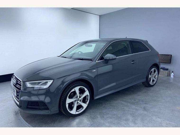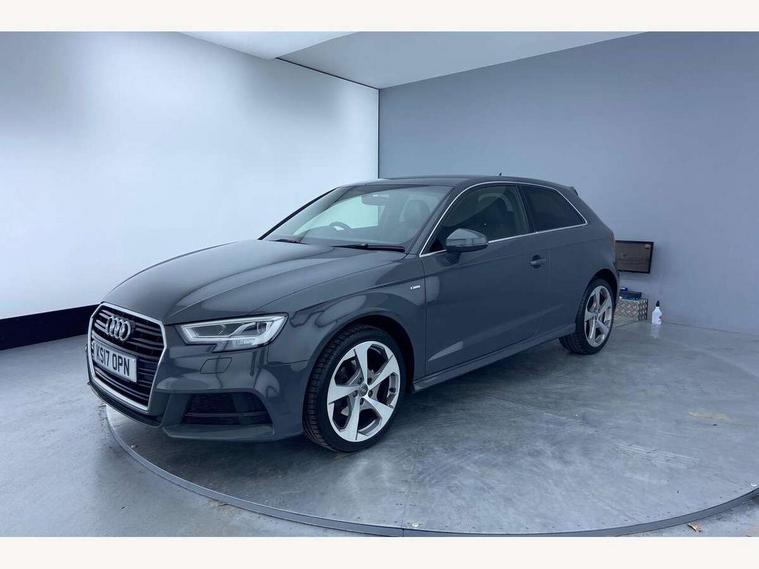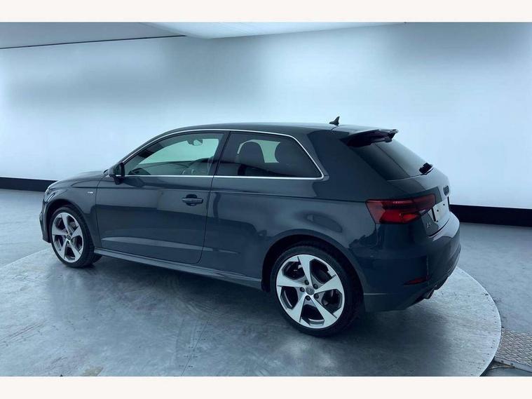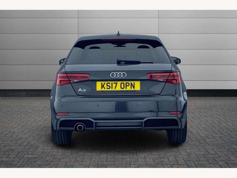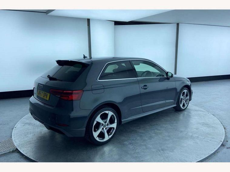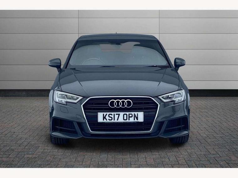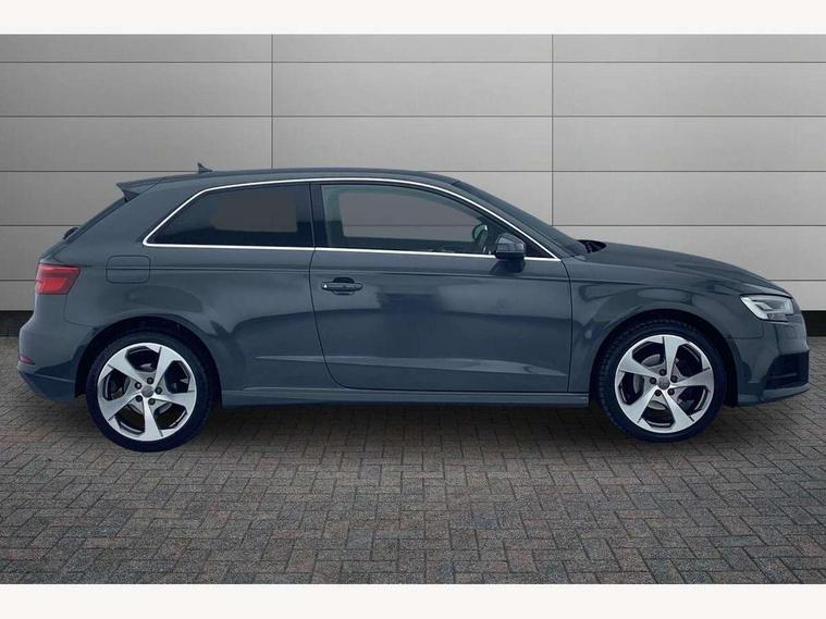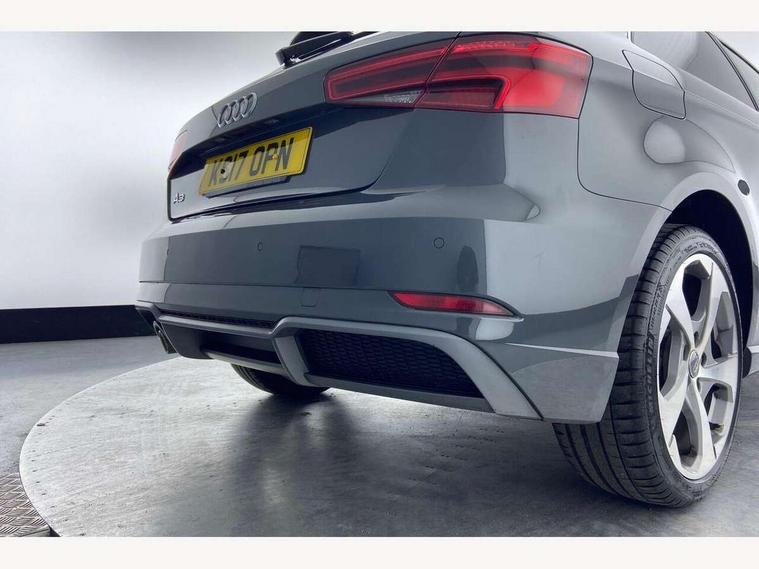 Audi connect, Audi drive select, Audi smartphone interface, Colour driver's information system display, Electro-mechanical PAS, Mobile telephone preparation - bluetooth interface, Service interval indicator, Speed limit display, Voice control system, Diesel particulate filter, 2 USB ports, Audi music interface, Auxiliary input socket, DAB Digital radio, Aluminium window trim, Body colour bumpers, Body colour door mirrors with integral indicators, Body colour roof spoiler, Chrome exhaust tailpipes, Electric front windows, Electric operated/heated door mirrors, Heated windscreen washer jets, LED daytime running lights, Matt black radiator grille, Rear wiper, S Line body styling, Sport specific side air inlet grille and diffuser insert, 3 adjustable rear headrests, 3 spoke flat bottomed multi-function leather steering wheel, 4 lashing points to secure luggage, Adjustable front armrest, Black cloth headlining, Dual zone electronic climate control, Front and rear interior lights with delay, Front passenger seat isofix location point, Front/rear floor mats, Height adjustable front seats, Height/depth adjustable steering column, Illuminated door sills, Illuminated glovebox, ISOFIX child seat preparation+airbag deactivation, Jack and tool kit, Stainless steel pedals, Steering wheel gearshift paddles, Storage compartment in centre console, Storage compartment under front seats, Storage compartments in doors, LED interior light pack - A3/RS3, Light and rain sensor pack - A3 Hatchback/Sportback, Storage and luggage pack - A3/RS3, 3 point seatbelts on all seats, ABS/EBD, Active bonnet, Active front headrests, ASR, Curtain airbags, Driver and passenger side airbags, Driver/Front Passenger airbags, Drivers knee airbag, EDL, Electromechanical parking brake, ESC - Electronic Stability Control + traction control, Front passenger airbag deactivation, Manual rear child locks, Multi-Collision braking, Seatbelt warning, Tyre pressure monitor, Warning triangle and first aid kit, Anti theft alarm, Anti-theft wheel bolts, Remote control central locking, Thatcham category 1 alarm + immobiliser, Aluminium air vent surrounds, Aluminium trim elements, Space saver spare wheel,
