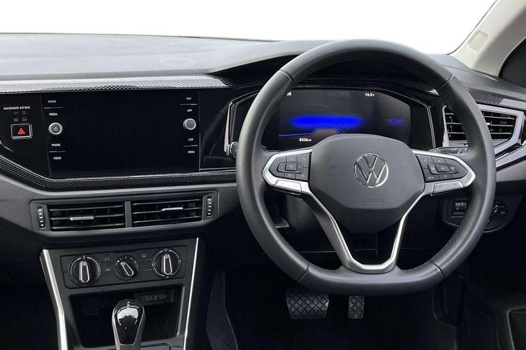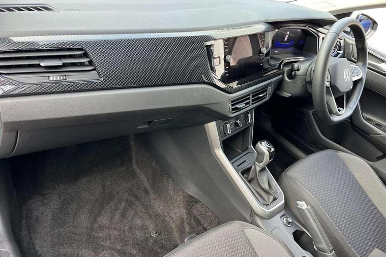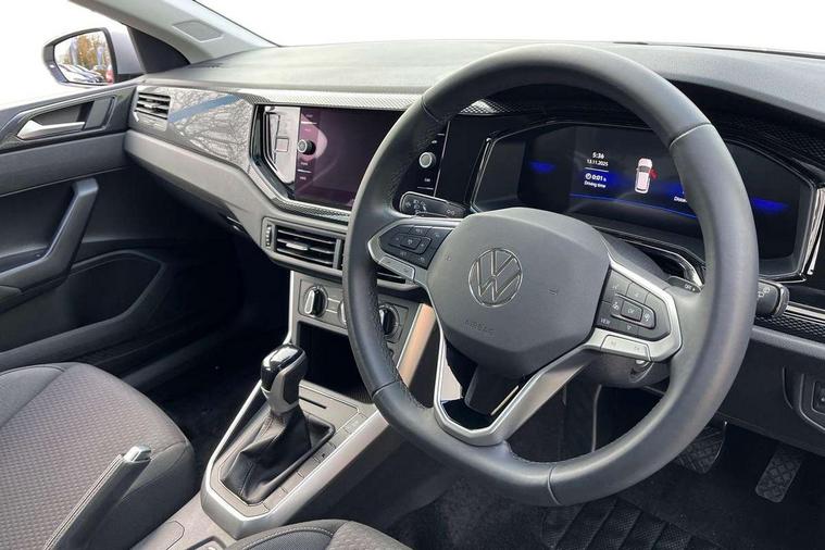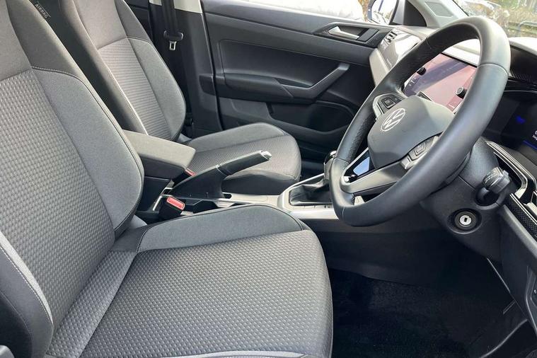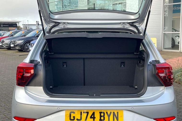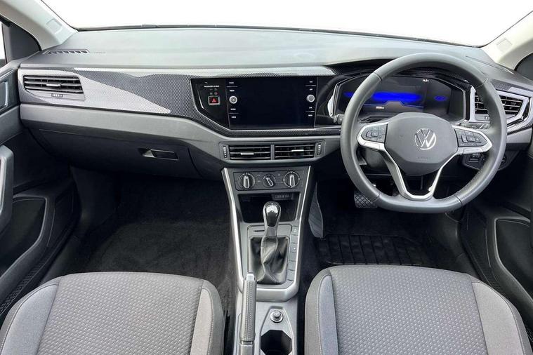 Adaptive cruise control with follow-to-stop and speed limiter, Advanced driver attention and drowsiness monitor, Bluetooth mobile phone interface, Dynamic road sign display, Emergency call service, Multifunction camera, Power assisted speed sensitive steering, Preparation for navigation system with media and internet package, Preparation for We connect and We connect plus, Speedo and rev counter, electronic odometer, trip, service interval display and exterior temperature gauge, Standard rear axle, Travel Assist - Lane keeping system and traffic jam assist, Travel assist including emergency assist, Trip computer, Warning signal and warning light for front and rear seatbelts not fastened, Washer fluid level indicator, Wireless app connect, Front wheel drive, Rear shock absorpion, Start-stop system with battery regeneration (recuperation - energy recovery during braking), DAB Digital radio, Diversity antenna for FM reception, Front and rear 6 speakers, Automatic dimming interior rear view mirror, Automatic headlight control with LED separate daytime running lights with coming/leaving home function, Body colour bumpers with chrome inserts, Body colour door handles, Body colour door mirrors, Electric front windows, Engine badge deletion, Headlight range adjustment, Heat insulating and laminated safety glass windshield, Heat insulating darkened glass in side and rear windows, LED Headlights, LED rear combination lamps, Power folding adjustable/heated exterior mirrors and front passenger exterior mirror lowering function, Rain sensor, Rear electric windows, Rear fog light, Rear side wing doors, Rear windscreen washer and wiper with interval delay, Third brake light, 12V power socket in centre console, 2 front and 2 rear reading lights with switch off delay and dimmer, 2 USB-C ports in the front, 2 USB-C charging sockets on the center console in the rear, 3 rear head restraints, 60/40 split folding rear seat and rear seat bench not split, Ceramique roof lining, Chrome plated radiator grille inserts, air vent surrounds and light switch surrounds, Door and side trim panel, Driver and front passenger seat height adjustment, Driver/passenger sunvisors with illuminated vanity mirrors, Front centre armrest, Front seat backrest storage pockets, Front standard seats, Handbrake lever handle in leather, Hartley/Thomas cloth upholstery, Headliner in recycled material, Isofix child seat preparation easy-fit (for two outer rear seats, and front passenger seat) compatible with I-size, Leather trimmed gear knob, Luggage compartment cover, Luggage compartment lighting, Removable luggage compartment floor, Single front passenger seat, Standard climatic zones, Standard pedal cluster, Three spoke leather wrapped multifunction steering wheel with shifting paddles, Light and vision pack - Polo, 3 point height adj front seatbelts + pretensioners, 3x3 point rear seatbelts, ABS, Driver and front passenger airbag with front passenger airbag deactivation, Drivers and front passengers safety optimised head restraints, ESC (Electronic stability control) + EDL (Electronic Differntial lock) and ASR (Traction control), Extended and predictive pedestrian/ cyclist protection, Front assist with autonomous emergency braking (for Adaptive Cruise Control ACC up to 130 mph), Front curtain and side airbags with center airbag, Front disc brakes, Hill hold control, Manual child lock in rear doors, Rear drum brakes, Single tone horn, Tyre pressure loss indicator, Alarm with interior protection, Anti-theft alarm system with interior monitoring, backup horn, and towing protection, Anti-theft wheel bolts, Electronic engine immobiliser, Lava stone black gloss/matt decorative inserts in dash and front door panels, Low rolling resistance tyres,