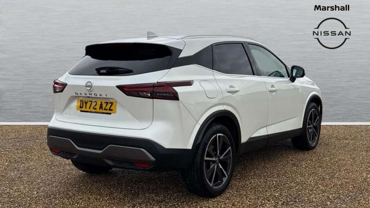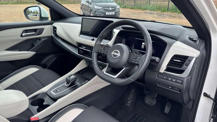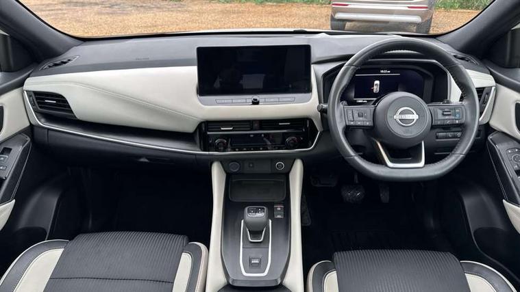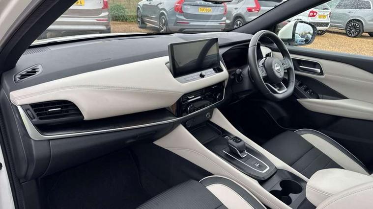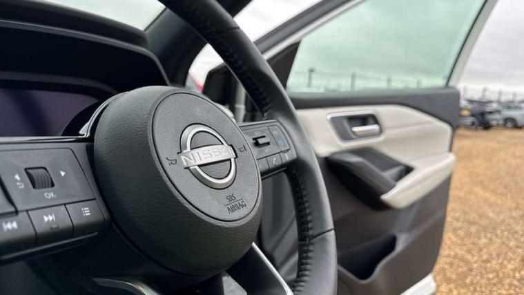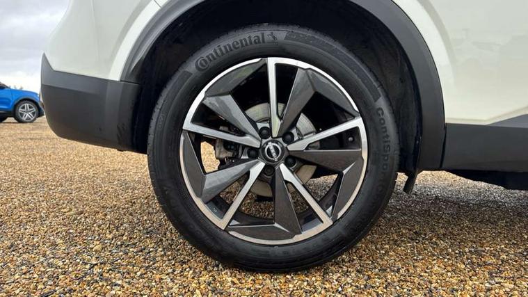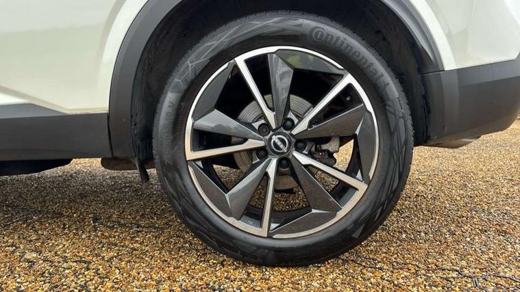 Advanced windscreen head up display, Android auto/Apple CarPlay (Wired), Blind spot warning, Drive modes (sport, normal, eco), Electric speed sensitive power steering, Emergency and breakdown call, Front and rear parking sensors, Full Digital 12.3" TFT Digital Combimeter, Google maps services - search, weather, 3D maps and Google street view, Hands free power tailgate, Idle stop/start system, Intelligent around view monitor, Intelligent Cruise control (ICC), Intelligent driver alert system, Intelligent forward collision warning, Intelligent lane intervention, Lane departure prevention, Lane departure warning system, Lane keep assist, Moving object detection, Nissan connect 12.3 inch touchscreen infotainment system, Nissan connect navigation, ProPilot, Push button starter, Rear cross traffic alert, Rear view camera, Remote control services - door locks, lights, horn and car locator, Telematics - notifications and connectivity services, TomTom live traffic services, Traffic jam pilot, Traffic sign recognition with legal speed adjustment, Trip computer, Virtual personal assistant and firmware over the air capability, Wireless apple carplay, Wireless charging pad, 6 speakers, AM/FM audio system with DAB, Bluetooth audio streaming, Front USB connections (Type-A and Type-C), Rear USB charging only ports (Type-A and Type-C), Auto dimming rear view mirror, Auto rear wiper when reversing, Automatic hazard signal with emergency stop signal, Body colour mirror caps, Body coloured door handles, Bodyside mouldings, Chrome side window finisher, Door handle with button, Electric auto folding door mirrors, Electrically adjustable and heated door mirrors with LED turn indicator, Follow me home headlights, Front and rear LED turning signals, Headlights auto levelling system, Intelligent auto headlights, LED daytime running lights, LED headlights with adaptive driving beam, LED rear lights, One touch front and rear electric windows with remote opening and closing, Partially body coloured bumpers, Privacy glass, Rear bumper with graphite insert, Rear reversing light (bulb lighting), Rear roof spoiler, Rear side wing doors, Rear styling plate, Shark fin antenna, Splash free rain sensing wipers, Super UV and infrared cut glass, Thermaclear heated windscreen, Three blink turn signal, 12v power socket in dashboard and luggage, 2x Rear coat hooks, 3 bench rear seats in 2nd row, 3 rear headrests, 4 folding assist grip, 6 Luggage hooks - 4 on floor, 2 on side, 60/40 split folding rear seat bench, Ambient lighting around centre console, Ambient lighting in front doors, Centre console storage tray, Chrome interior door handles, Cloth/syntech leather monoform upholstery, Dark black/blueish PVC wrapping, Dark headlining, Driver and front passenger sunvisors with illuminated vanity mirrors, Driver seat back pocket, Dual zone automatic climate control with pollen filter, Electrically adjustable driver seat, Electrically adjustable lumbar support for driver, Front and rear door storage, Front centre console and armrest, Front cupholders x 2, Front door with bottle holders, Glovebox with light, Hard trunk cover, Heated front seats, Heated steering wheel, Height adjustable driver's seat, Height adjustable front headrests, Height adjustable passenger seat, Leather steering wheel, Luggage board system, Luggage space lighting, Manual lumbar support on passenger seat, Manually adjustable passenger (slide recline + lifter), Multifunction steering wheel, Passenger seat back pocket, Rear armrest with 2 cupholders, Rear door bottle holders, Single front passenger seat, Soft PVC kneepad, Steering wheel gearshift paddles, Steering wheel switches, Tilt/telescopic adjustable steering wheel, Two rear isofix child seat anchorage points with top tether, Welcome light and doors with console tray ambient lighting, Glass roof pack with roof rails - Qashqai, 3x3 point rear seatbelt pretensioners + load limiters, ABS with EBD and brake assist, Active brake limited slip, Auto hold function, Child locks on rear doors, Curtain and front side, far side airbags, Driver and passenger airbags, Driver, passenger and 2nd row rear seat belt reminder, Electronic parking brake, Front seatbelt pretensioners + load limiters, Height adjustable front seatbelts, Hill start assist, Intelligent blind spot intervention, Intelligent front emergency braking with pedestrian, cyclist recognition and junction assist, Intelligent rear automatic braking, Tyre pressure monitoring system, Vehicle dynamic control, Capless fuel filler, Engine immobiliser, Intelligent Key, Remote central door locking with deadlocking, Thatcham Cat.1 alarm, Interior instrumental panel C finisher, 19" Alloy wheels, Tyre puncture repair kit,