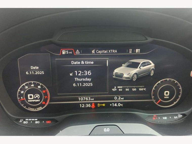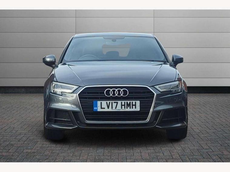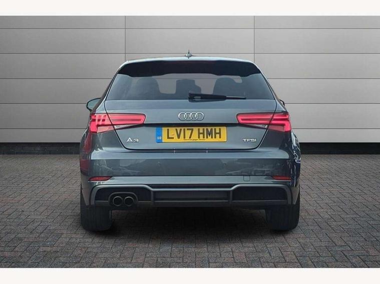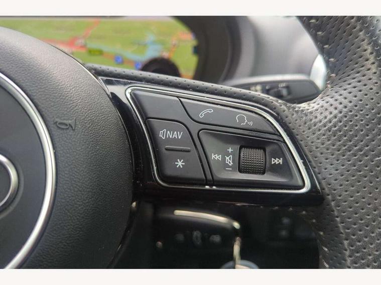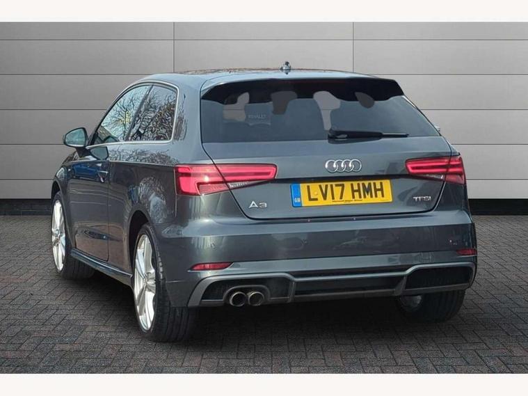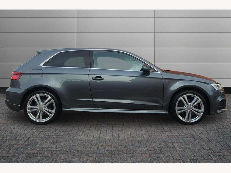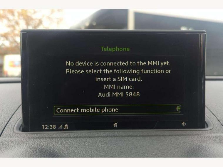 Audi connect, Audi drive select, Audi smartphone interface, Colour driver's information system display, Mobile telephone preparation - bluetooth interface, Service interval indicator, Speed limit display, Voice control system, 2 USB ports, Audi music interface, Auxiliary input socket, DAB Digital radio, Aluminium window trim, Body colour bumpers, Body colour door mirrors with integral indicators, Body colour roof spoiler, Chrome exhaust tailpipes, Electric front windows, Electric operated/heated door mirrors, Heated windscreen washer jets, LED daytime running lights, Matt black radiator grille, Rear wiper, S Line body styling, Sport specific side air inlet grille and diffuser insert, 3 adjustable rear headrests, 3 spoke flat bottomed multi-function leather steering wheel, 4 lashing points to secure luggage, Adjustable front armrest, Black cloth headlining, Dual zone electronic climate control, Front and rear interior lights with delay, Front passenger seat isofix location point, Front/rear floor mats, Height adjustable front seats, Height/depth adjustable steering column, Illuminated door sills, Illuminated glovebox, ISOFIX child seat preparation+airbag deactivation, Jack and tool kit, Stainless steel pedals, Steering wheel gearshift paddles, Storage compartment in centre console, Storage compartment under front seats, Storage compartments in doors, LED interior light pack - A3/RS3, Light and rain sensor pack - A3 Hatchback/Sportback, Storage and luggage pack - A3/RS3, 3 point seatbelts on all seats, ABS/EBD, Active bonnet, Active front headrests, ASR, Curtain airbags, Driver and passenger side airbags, Driver/Front Passenger airbags, Drivers knee airbag, EDL, Electromechanical parking brake, ESC - Electronic Stability Control + traction control, Front passenger airbag deactivation, Manual rear child locks, Multi-Collision braking, Seatbelt warning, Tyre pressure monitor, Warning triangle and first aid kit, Anti theft alarm, Anti-theft wheel bolts, Remote control central locking, Thatcham category 1 alarm + immobiliser, Aluminium air vent surrounds, Aluminium trim elements, Space saver spare wheel,