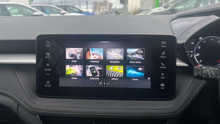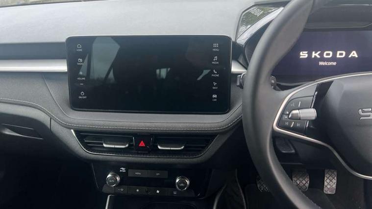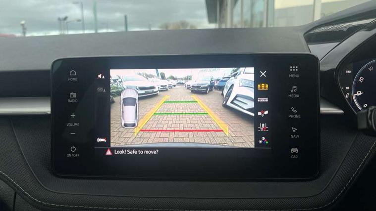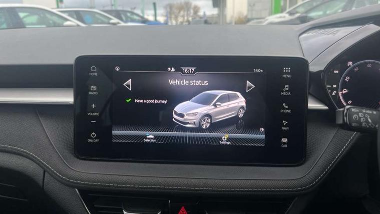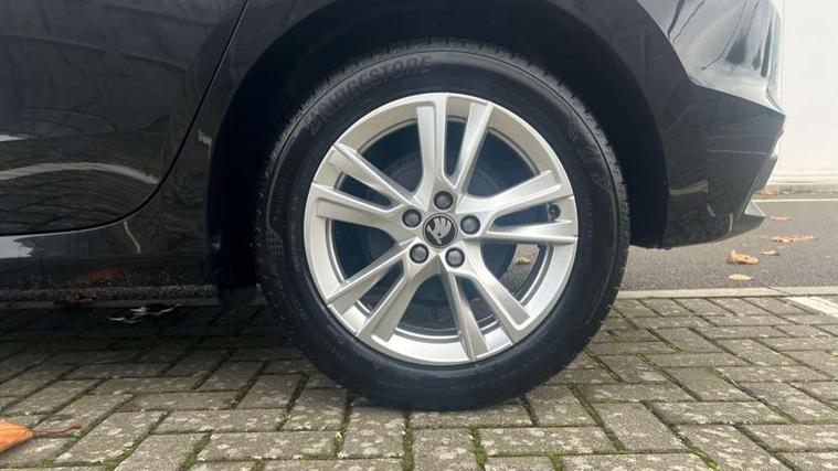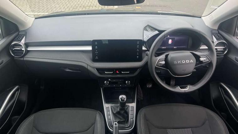 Advanced driver attention and drowsiness monitor, Bluetooth connection, Electromechanical power steering, Exterior temperature gauge, Service interval indicator, Traffic sign recognition, Virtual cockpit with 10.25" colour display, Wireless SmartLink for Apple CarPlay and Android Auto, 6 Speakers (4 in front and 2 in rear), 9.2" colour display skoda navigation system with voice control and web radio, Auxiliary socket for external MP3 player, DAB digital radio reception, Auto dimming rear view mirror, Body colour door mirrors, Body coloured bumpers, Chrome window surround, Door mirror integrated indicators, Front and rear electric windows, Front window wiper intermittent control, Headlight range control - Automatic, Ice scraper in fuel cap, LED 3rd brake light, LED daytime running lights with coming and leaving home feature, LED rear lights, Privacy glass, Rear LED fog light, Rear side wing doors, Rear window wiper with washing nozzles, Roof mounted spoiler, SKODA tailgate lettering in chrome, Unique dark chrome design logo on alloy wheels, 2 LED reading lights in front and rear, 3 rear headrests, Backrest split and folding, Central console with removable cup holder and storage box, Chrome handbrake release button, Comfort seats, Door sills with fabia badging, Dual zone air conditioning with climatronic electronic control, Fabric upholstery, Front centre armrest, Gearshift knob/handle in leather, Hand brake lever handle in leather, Height adjustable front headrests, Height adjustable front seats, Height adjustable steering wheel, ISOFIX and TopTether anchorage points to the outer rear seats, ISOFIX and TopTether on the front passenger seat, Luggage compartment lighting, Manually adjustable lumbar support in front seats, Metallic grey interior door handles, Pollen filter, Rear seat bench unsplit, Single front passenger seat, Skoda lettering on steering wheel, Storm grey headlining, Sun visors with mirror and airbag label on passenger side, Textile floor mats, Ticket holder, Umbrella in drivers door, 3-point height adjustable front seats belts with pretensioner and force limiter, Automatic warning lights in case of crash, Driver and passengers airbag with switch off function, e-Call+, ESC including ABS, MSR, ASR, EDS, HBA and XDS, Front and rear seat belt warning, FRONT ASSIST (AEB City and AEB Inter Urban), Front side airbags, Head airbags, One tone horn, Pedestrian protection, Three rear 3-points safety seat belts with pretensioner and force limiter including stop function for outer rear seat belts, Tyre pressure monitoring system, Anti-theft alarm system including immobiliser, interior monitoring, backup horn, and towing protection, Central locking with radio remote control, interior controls, SAFE function and 2 foldable keys, Black painted air vents, Metallic grey central console cover, Metallic grey upper decorative trim, Satin black door and side trim panel in front, Textile microsuede grey lower decorative trim with art grey stitching, Anti-theft wheel bolts protection, Super-low rolling resistance tyres,