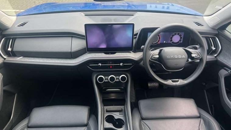 13" satellite navigation touchscreen display, Blind spot detection with door exit warning, Bluetooth system, ChatGPT functionality, Driver alert - Fatigue and drowsiness monitor, Dry display cleaner, Emergency call, Front and rear parking sensors, Front cross traffic assist, Lane assist, PAS, Rear traffic assist, Tailgate unlocking from outside, Traffic sign recognition, USB C Port x 2 in front centre console, Virtual Cockpit - 10.25" digital display, Voice control system, Wireless charging for two smartphones (15W) with cooling function, Wireless SmartLink for Apple CarPlay and Android Auto, Stop/start function, 2x USB-C in the rear, DAB Digital radio, Aero front windscreen wipers with intermittent function, Auto dimming rear view mirror, AWL (all weather lighting) and all weather light with cornering function, Black wheel arch surrounds, Body colour bumpers, Body colour door mirrors and handles, Cornering light and poor weather light, Electric folding /adjustable/separted heated/folding door mirrors, auto dimming with boarding sports and memory function, Electric front and rear windows, Exterior black decorative trims, Heat insulating glass in windshield, Heated rear window, Ice scraper in fuel tank cap, Invisible tailpipe, LED daytime running lights, LED third brake light in rear spoiler, Light assistant with automatic headlight control and coming home feature, Logo projection in door mirrors, Privacy glass, Rear roof spoiler, Rear side wing doors, Rear window wiper, Red decorative strip between rear LED lights, Safety reflectors on front and rear doors, Unique dark chrome design logo on alloy wheels, Window control switches with black trim, Windscreen wipers with rain sensor, Without engine designation, 1.5l bottle holder points in all door, 1x centre rear reading light, 2 seat bench in 3rd row, 3 configurable smart dials with 32mm coloured display, 3 seat bench in 2nd row, 4 foldable roof handles with rear coat hooks, Ambient interior lighting - Dashboard, front-door stowage compartments, front and rear door panels and footwell lighting, Automatic gear selector on steering column, Chrome interior door handles, Driver/front passenger reading lights, Fabric headlining, Fixed bench 40:60:40 split folding backrests, Front and rear floor mats, Front centre armrest with jumbo box storage compartment, cup holder and 12V socket, Height adjustable front headrests, Isofix child seat fittings in outer middle row rear seats and front passenger with top tether, Manually adjustable steering column, Pollen filter, Rear centre armrest with cupholders, Rear seat boot backrest release, Single front passenger seat, Skoda lettering on steering wheel, Storage pocket including mobile phone pockets on the backs of the front seats, Sunvisors with illuminated vanity mirrors, Three rear height adjustable headrests, Ticket holder on A Pillar, Tri zone climate control, Umbrella in door panel x1 made from sustainable materials, Upper and lower glovebox with card holder and coin compartment, USB C port by rear view mirror for charging only (15W), Exterior styling pack - Kodiaq, Auto door release and activation of warning lights in the event of an accident, Driver and front passenger airbag with knee airbag and front passenger airbag deactivation, Electric child locks, Electronic parking brake, ESC (incl. ABS+EMD+MSR+ASR+EDL+HBA+DSR+RBS+ESBS+MCB+TSA+XDS), Front assist with braking reaction to vehicles, pedestrians and cyclists, Front disc brakes, Fuel cut off safety device, Height adjustable front 3 point seatbelts + pretensioners, Hill hold assist, Junction assist with automatic emergency braking, Rear disc brakes, Safety vest holder in door, Seat belt reminder for all seats, Three point rear seat belts, Two tone horn, Tyre pressure monitor, Anti-theft wheel bolts, Immobiliser, Remote central locking with 2 keys,