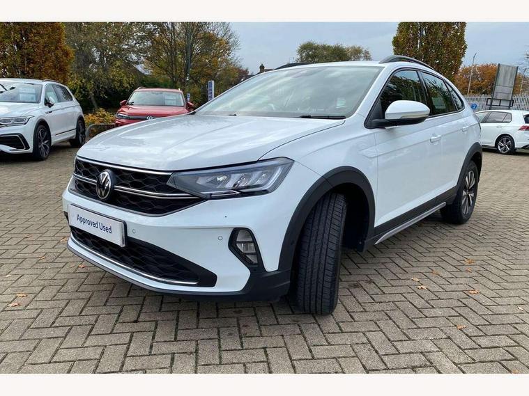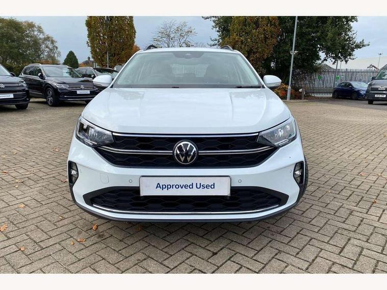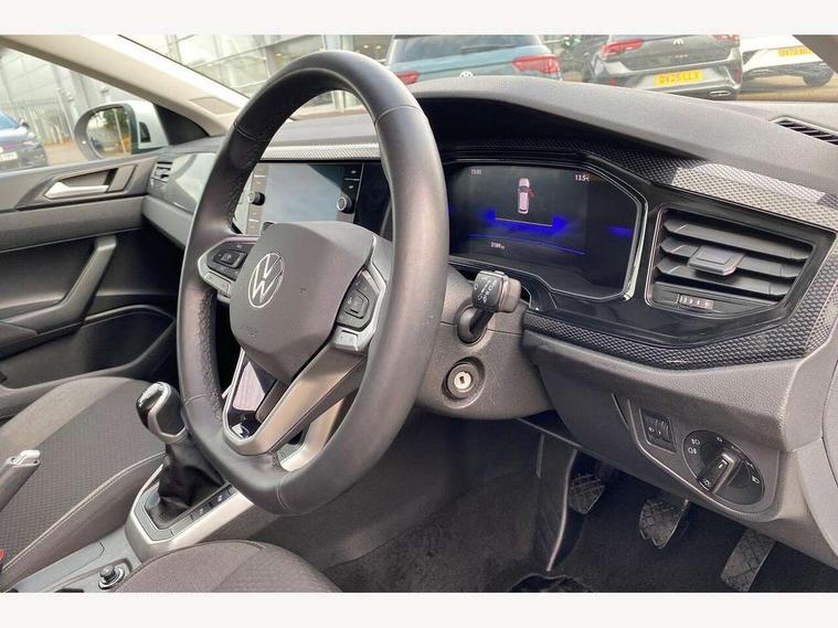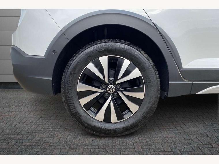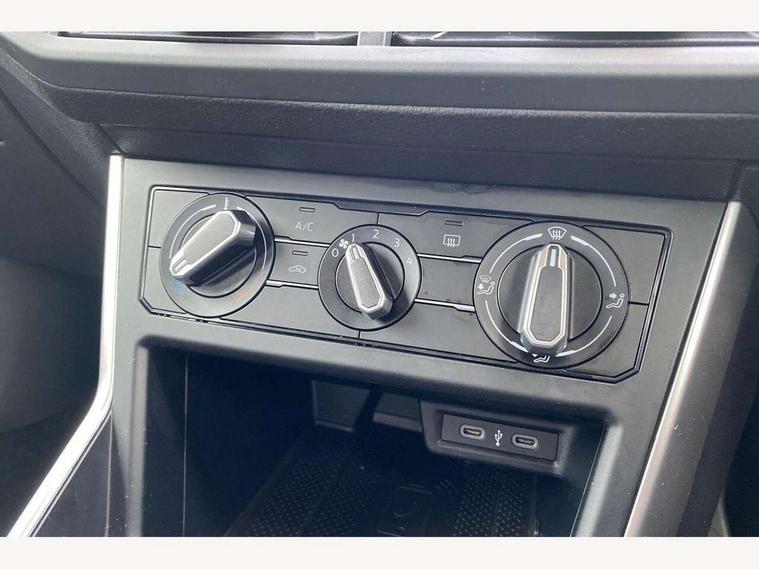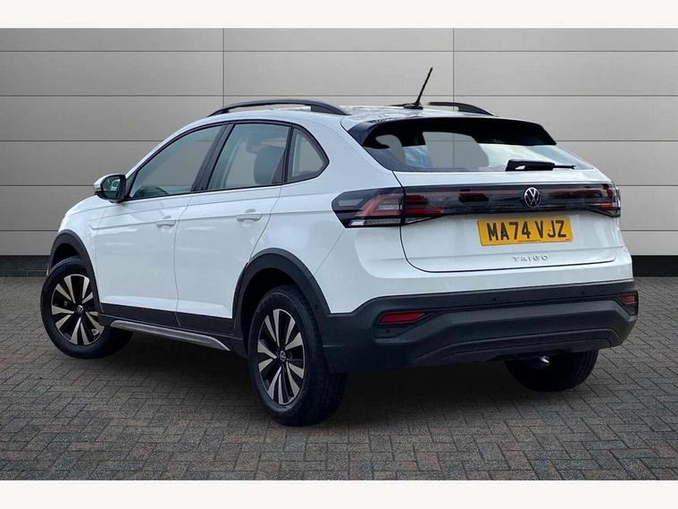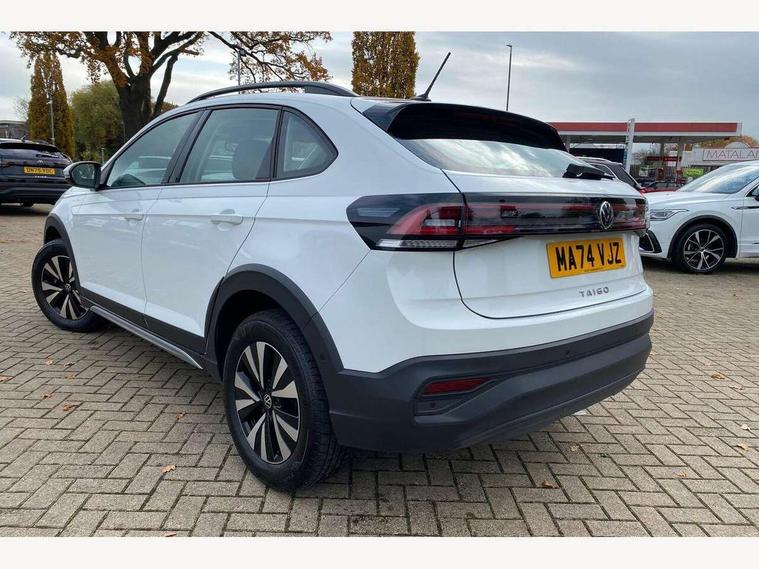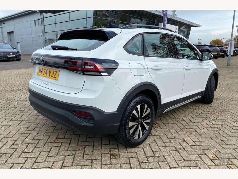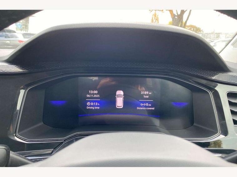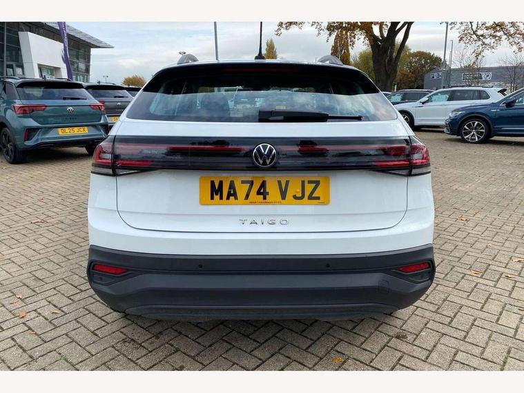 Advanced driver attention and drowsiness monitor, Dynamic road sign display, e-Call (emergency call), Power Steering, Predictive adaptive cruise control, Travel assist including emergency assist, Washer fluid level indicator, Wireless Charging including Bluetooth, Start-stop system with battery regeneration (recuperation - energy recovery during braking), WeConnect plus, Ambient lighting with logo projection, Aspherical driver's exterior mirror, Auto headlights, Body coloured bumpers, Body coloured exterior mirror housings and door handles, Electric windows, External USB type C socket and charging sockets, Heat insulating glass windscreen, LED rear combination lamp, LED third brake light, Left convex exterior mirror, Power folding adjustable/heated exterior mirrors and front passenger exterior mirror lowering function, Rear fog light on one side, reversing light on both sides, Rear side wing doors, Rear wash/wipe with intermittent wipe setting, 'Slash/ Austin' Cloth upholstery, 12V socket in centre console, 2 front reading lights, 3 rear head restraints, 3 seat bench in 2nd row, Black carpets, Child seat anchor for child seat system i-Size, 2x top tether and child seat anchor in front on front passenger side, Door and side trim panels in titan black, Driver and front passenger seat height adjustment, Front centre armrest, Handbrake lever handle in leather, Height and reach adjustable steering wheel, Leather trimmed gear knob, Leather wrapped multifunction steering wheel, Luggage compartment floor, Luggage compartment light, Lumbar support for driver's and front passengers seat, Seat covers in titanium black, Single front passenger seat, Split folding backrest with centre armrest and unsplit rear seat bench, Storage compartment under front seats, Sun visors with illuminated vanity mirrors, Chrome Package - Taigo, Drivers assistance pack - Taigo, Light and Sight pack including High beam assist - Taigo, 2 x 3-point seatbelts/outer rear seats with ECE label, 3-point seat belts in front with pretensioner and height adjustment, 3-point seatbelt for centre rear seat, Adaptive driver and front passenger airbags with passenger airbag deactivation function, Driver and front passenger airbags with front passenger airbag de-activation, front side and curtain airbags, Driver and front passenger safety-optimised head restraints, Electronic stability control, Extended and predictive pedestrian/ cyclist protection, Front and rear disc brakes, Front curtain and side airbags with center airbag, Hill start assist, Manual rear child locks, Single tone horn, Tyre pressure loss indicator, Anti-theft alarm system with interior monitoring, backup horn, and towing protection, Lava stone black gloss/matt decorative inserts in dash and front door panels, Low rolling resistance tyres,