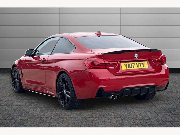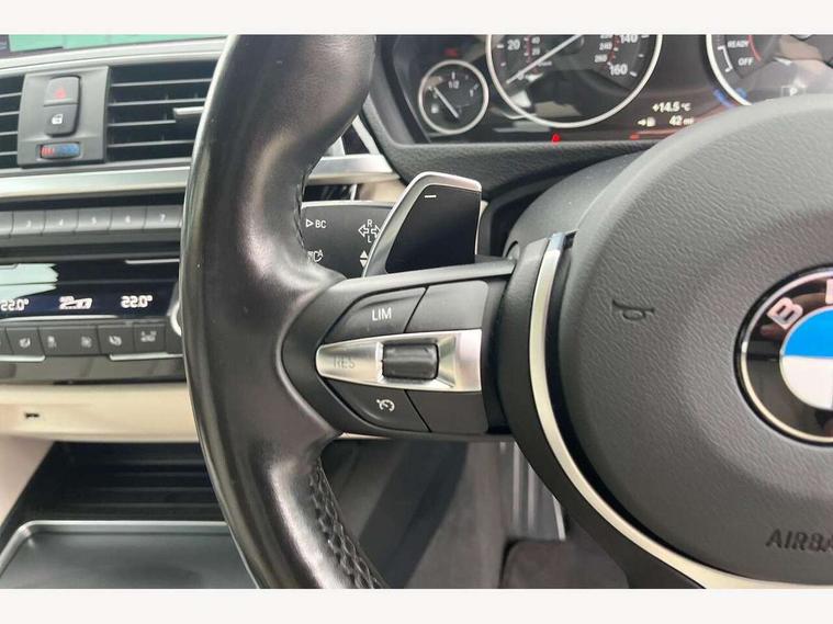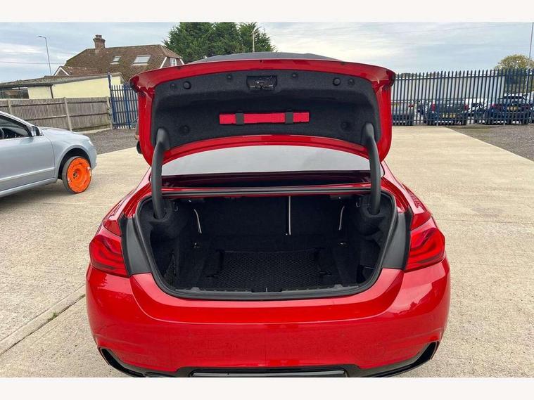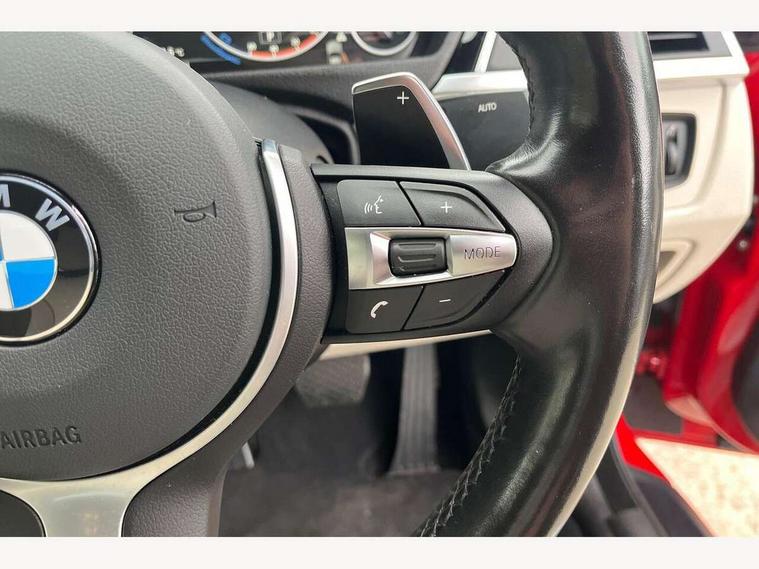 BMW Online services, BMW Teleservices, Brake pad wear indicator warning light, Check control system, Door/boot open warning, Front/rear Parking distance control, Lights on warning, Oil temperature gauge, On board computer, Outside temperature display, Run flat indicator, Service interval indicator, Stop/start button, Drive Performance Control, Sports function on gearbox with steering wheel mounted gearshift paddles, Bluetooth audio streaming, BMW professional radio/CD/MP3, DAB Digital radio, 2 speed adjustable intermittent wipers with wash/wipe function, Auto dimming rear view mirror, Body colour bumpers, Body colour door handles, Body colour door mirrors, Body colour roof mouldings, Chrome kidney grille with black vertical slats, Door sill finishers, Dual chrome exhaust, Electric adjustable heated door mirrors, Electric front windows/one touch facility, Follow me home headlights, Heat insulating tinted glass, Heated windscreen washer jets, High gloss shadow line, LED daytime running lights, LED front fog lights, M aerodynamic bodystyling, Rain sensor including auto headlights activation, Windscreen with grey shadeband, 12V sockets in front centre console and passenger footwell, 3 spoke leather M sport multifunction sports steering wheel, 4 grab handles, Anthracite headlining, Anthracite Velour floor mats, Dual zone climate control, Folding front centre armrest with storage compartment, Folding storage compartment with glasses holder + coin tray, Front cupholders x 2, Front door storage with bottle holder, Front head restraints, Front sports seats with electric side bolster adjustment, Front/rear armrests within door panels, Glovebox with lid, Heated front seats, Integrated rear head restraints, ISOFIX child seat preparation+airbag deactivation, Lashing eyelets in boot, Leather gearknob, Leather handbrake grip, Reach + rake adjustable steering column, Rear centre armrest with 2 cupholders, Storage compartment in rear centre console, Toolkit located in luggage compartment, Extended lights package - 4 Series, 3 point seatbelts on all seats, ABS/EBD, Automatic Stability Control (ASC), BMW emergency call, Cornering brake control (CBC), Crash Sensor - activates hazard/interior lighting + unlocks doors, Driver seatbelt warning indicator, Driver/Front Passenger airbags, DSC+, Dynamic brake control, Dynamic Traction Control - DTC, Front seatbelt force limiters, Front seatbelt pretensioner, Front side airbags, Hill start assist, ITS head airbags for front/rear, Tyre pressure monitor, Warning triangle and first aid kit, Drive away door locking, Electronic immobiliser, Remote central locking, Remote control Thatcham category 1 alarm, Run flat tyres,