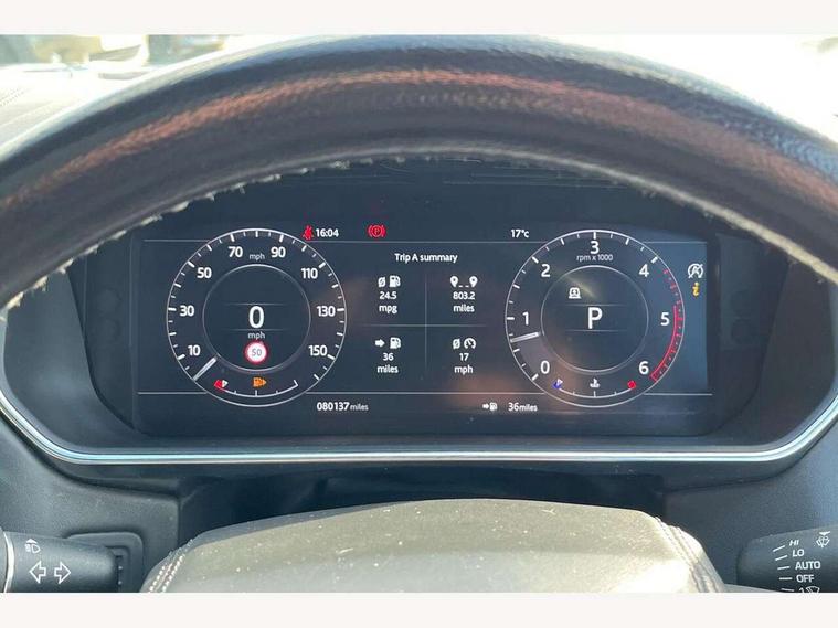 360 degree Park Distance Control, 360 degree surround camera, Blind spot assist, Bluetooth mobile phone connection, Clear exit monitor, Driver condition monitor, Dynamic route guidance, Electric power assisted steering (EPAS), InControl remote premium, InControl secure Tracker, Interactive Driver display instrument cluster, Lane keep assist, Navigation pro system with 10" touch screen, app interface and media storage, Park Assist - Parallel Park/Parking Exit/Perpendicular park, Powered gesture tailgate/boot lid, Pro services and wifi hotspot, Push button starter, Rear camera wash, Rear traffic monitor, Rotary shifter, Service interval indicator, Surround camera system, Touch pro duo system, Traffic sign recognition with adaptive speed limiter, Trip computer, Voice control system, 8 speed automatic transmission, Adaptive dynamics, All terrain progress control, All Wheel Drive (AWD), Automatic access height, Diesel particulate filter, Electronic air suspension, Terrain Response 2 Auto, Twin speed transfer box, Digital Audio Broadcast radio-DAB, Digital TV, InControl app, InControl protect, USB socket, Acoustic windscreen, Auto dimming interior rear view mirror, Auto self levelling headlights, Autobiography badge, Automatic headlights, Body coloured bumpers, Centre high mounted stop light, Door/quarter lights in toughened plate glass, Electric windows with one touch open/close and anti trap, Electrical towing preparation, Follow me home headlights, Front and rear recovery eyes, Front fog lights, Headlamp power wash, Heated rear window, Heated windscreen, Illuminated aluminium treadplates with Autobiography script, Integrated twin tailpipes, Laminated front and rear side glass, LED rear lamps, LED tail lights, Power fold, auto-dimming, heated door mirrors with memory and approach lights, Power front/rear windows with global close, Rain sensing windscreen wipers, Rear fog lights, Rear wash/wipe, Side repeater indicators in mirror, Trailer stability assist, 12V power point in luggage area, 12V power sockets, 3 rear headrests, Centre console with storage and armrest, Configurable Ambient interior lighting, Customer configurable single point entry, Driver and passenger front seat armrests, Easy boot loading, Electrically adjustable steering column, Extreme passenger seat away, Folding rear seats, Four zone climate control, Front and rear cupholders, Front and rear grab handles, Front seat back map pockets, Heated steering wheel, Loadspace cover, Loadspace light, Lockable glovebox, Luggage compartment lighting, Luggage tie down in loadspace, Parking heat with remote control, Perforated Semi-Aniline leather upholstery, Power deployable rear centre console, Premium carpet mats, Rear centre armrest, Rear ISOFIX, Rear seat lumbar and powered headrest with wings, Remote intelligent seat fold, Soft close doors, Through load facility, Twin blade sunvisors with Illuminated vanity mirrors, 3 rear 3 point seatbelts, Anti-lock braking system (ABS), Auto lock system when vehicle in motion, Cornering brake control (CBC), Curtain airbags, Customer configurable autolock, Driver/front passenger head+thorax airbag, Drivers knee airbag, DSC - Dynamic Stability Control, Electronic brake force distribution, Electronic parking brake, Electronic traction control, Emergency brake assist, Emergency braking, ESP, Front airbags with passenger seat occupant detector, Front seatbelt pretensioners with force limiters, Front side airbags, Height adjustable front seatbelts, High speed emergency braking, Hill descent control, Hill launch assist, Low traction launch, Power operated child locks, Roll stability control, Tyre pressure monitoring system (TPMS), Unpainted brake calipers, Immobiliser, Intrusion sensor and alarm, Keyless entry, Locking wheel nuts, Remote central locking,