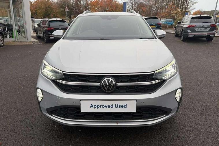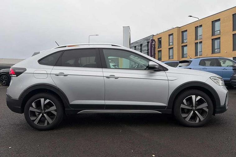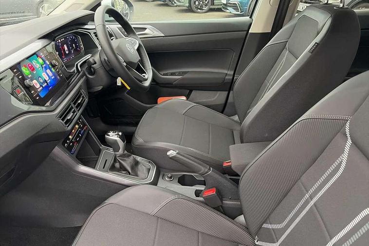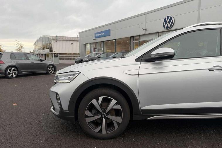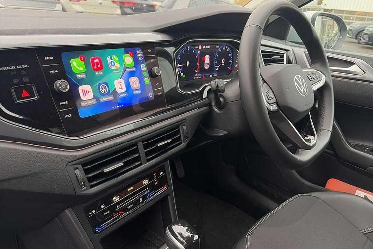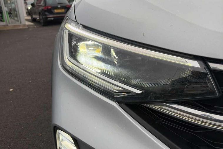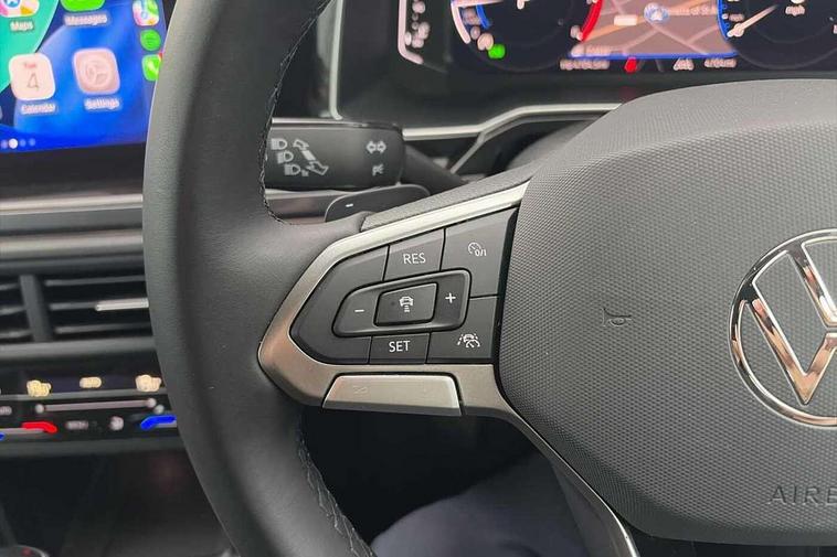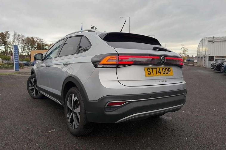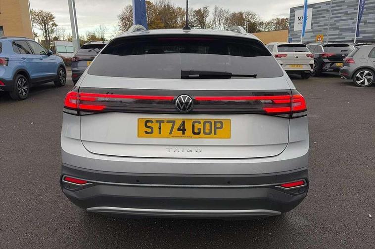 Adaptive cruise control, Advanced driver attention and drowsiness monitor, App-Connect including App-Connect Wireless, Digital cockpit pro - 10.25" high resolution TFT dash display screen with customizable menus and information, Dynamic road sign display, e-Call (emergency call), Power Steering, Travel assist including emergency assist, Washer fluid level indicator, Wireless Charging including Bluetooth, Rear shock absorption, Start-stop system with battery regeneration (recuperation - energy recovery during braking), Digital radio reception (DAB+), Diversity antenna for FM reception, WeConnect plus, Ambient lighting with logo projection, Aspherical driver's exterior mirror, Auto headlights, Body coloured bumpers and radiator grille with chrome trim and front fog lamps with chrome bezel, Dual chrome twin tailpipes on left and right, Electric windows, External USB type C socket and charging sockets, LED rear combination lamp, LED third brake light, Left convex exterior mirror, Power folding adjustable/heated exterior mirrors and front passenger exterior mirror lowering function, Rear fog light on one side, reversing light on both sides, Rear side wing doors, Rear wash/wipe with intermittent wipe setting, 12V socket in centre console, 2 front reading lights, 3 rear head restraints, 3 seat bench in 2nd row, Air care climatronic air conditoning system with active combination filter and 2-zone temperature control, Black carpets, Child seat anchor for child seat system i-Size, 2x top tether and child seat anchor in front on front passenger side, Chrome bezel for instrument cluster, vents, door handles + gear shift, Driver and front passenger seat height adjustment, Front + rear carpet mats, Front centre armrest, Front footwell illumination, Front sports comfort seats, Height and reach adjustable steering wheel, Interior ambient lighting and surround lighting, Leather trimmed gear knob, Leather wrapped multifunction steering wheel, Luggage compartment floor, Luggage compartment light, Lumbar support for driver's and front passengers seat, Single front passenger seat, Split folding backrest with centre armrest and unsplit rear seat bench, Storage compartment under front seats, Sun visors with illuminated vanity mirrors, Chrome Package - Taigo, Drivers assistance pack - Taigo, IQ.LIGHT - LED matrix headlights pack - Taigo, Light and sight pack - Taigo, 2 x 3-point seatbelts/outer rear seats with ECE label, 3-point seat belts in front with pretensioner and height adjustment, 3-point seatbelt for centre rear seat, Adaptive driver and front passenger airbags with passenger airbag deactivation function, Driver and front passenger safety-optimised head restraints, Electronic stability control, Extended and predictive pedestrian/ cyclist protection, Front and rear disc brakes, Front curtain and side airbags with center airbag, Hill start assist, Manual rear child locks, Single tone horn, Tyre pressure loss indicator, Anti-theft alarm system with interior monitoring, backup horn, and towing protection, Low rolling resistance tyres,