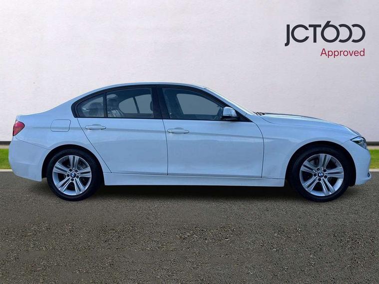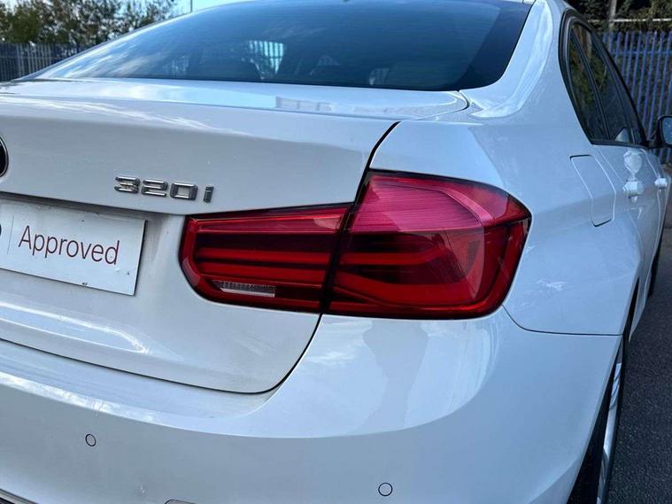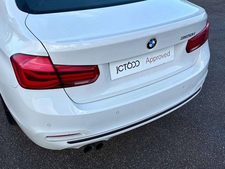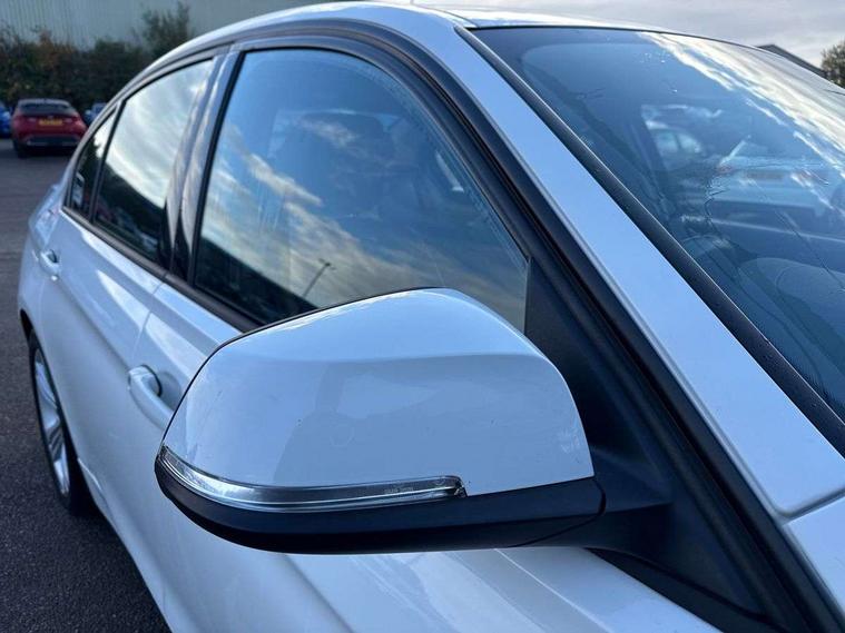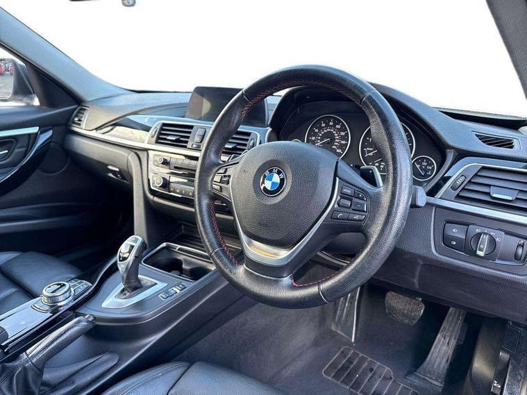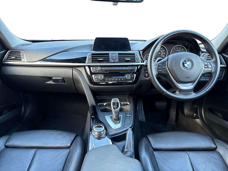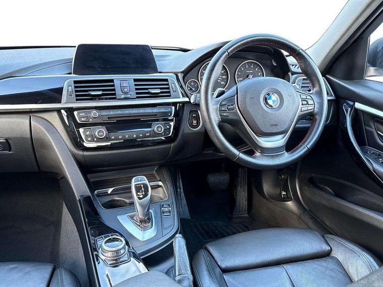BMW Online services, BMW remote services, BMW Teleservices, Brake force display, Brake pad wear indicator warning light, Check control system, Digital clock, Door/boot open warning light, Lights on warning, Oil temperature gauge, On board computer, On board diagnostics, Operation warning of all exterior lights, Outside temperature display, Push button starter, Real time traffic information, Run flat tyre indicator, Service interval indicator, Traffic message channel (TMC), Drive Performance Control, Electronic differential lock, Sports function on gearbox with steering wheel mounted gearshift paddles, BMW professional radio/CD/MP3, CD Changer preparation, DAB Digital radio, 2 speed adjustable intermittent wipers with wash/wipe function, Auto dimming rear view mirror, Automatic headlight beam throw control, Body colour bumpers, Body colour door handles, Body colour roof mouldings, Chrome exhaust tailpipe, Clear indicator lenses, Dynamic brake lights, Electric adjustable door mirrors, Electric front and rear windows with one touch/convenient open/close function, Front ornamental grille with black kidney bars and chrome bezel, Green tinted heat insulating glass, Heated rear window with automatic switch off, Heated windscreen washer jets, LED daytime running lights, LED fog lights, LED welcome home lights, Rain sensor + automatic driving lights control, Shark fin roof aerial, 12V sockets in front centre console and passenger footwell, 2 x folding cupholders in instrument panel above glovebox, 3 rear seat head restraints, 4 foldable grab handles - rear with clothes hook, 4 lashing points to secure luggage, 40:20:40 split folding rear bench seat, Automatic interior light soft on/soft off system, Driver and passenger sunvisors with vanity mirrors + slide cover, Dual zone automatic air conditioning, Folding front centre armrest + storage, Front and rear door armrests, Front and rear velour floor mats, Front door storage bins with bottle holder, Front sports seats with electric side bolster adjustment, Glovebox light, Height adjustable front headrests, Indirect front interior illumination - soft-light function, Isofix system on outer rear seats, Leather gear knob, Leather gear selector lever handle, Leather handbrake grip, Lockable glovebox, Luggage compartment lighting, Multi-function controls for steering wheel, Reach + rake adjustable steering column, Rear centre armrest with 2 cupholders, Rear storage compartment in multifunction centre console with sliding cover, Storage compartment in rear doors, Toolkit located in luggage compartment, Extended lighting package - 3 Series, 3 point inertia reel seatbelts + pre-tensioners on outer rear seats, ABS, Automatic Stability Control (ASC), BMW emergency call, Cornering brake control (CBC), Crash sensor, Driver and passenger airbags, DSC+, Dynamic brake control, Dynamic Traction Control - DTC, Front and rear head airbags, Front passenger airbag deactivation, Front seat side impact airbags, Front seatbelt pretensioners + load limiters, Hill start assist, Rear child proof door locks, Seatbelt warning, Three 3 point rear seatbelts, Twin horns, Tyre pressure monitor, Warning triangle and first aid kit, Automatic drive away locking facility, Central locking fuel filler cap, Centre lock switch, Electronic immobiliser, Key integrated remote control central locking, Remote control alarm, Low rolling resistance tyres, Run-flat tyres,