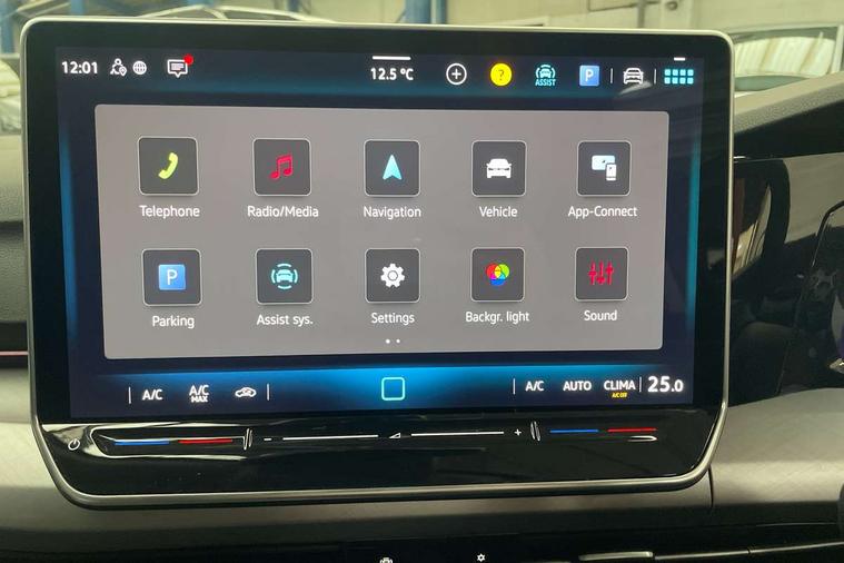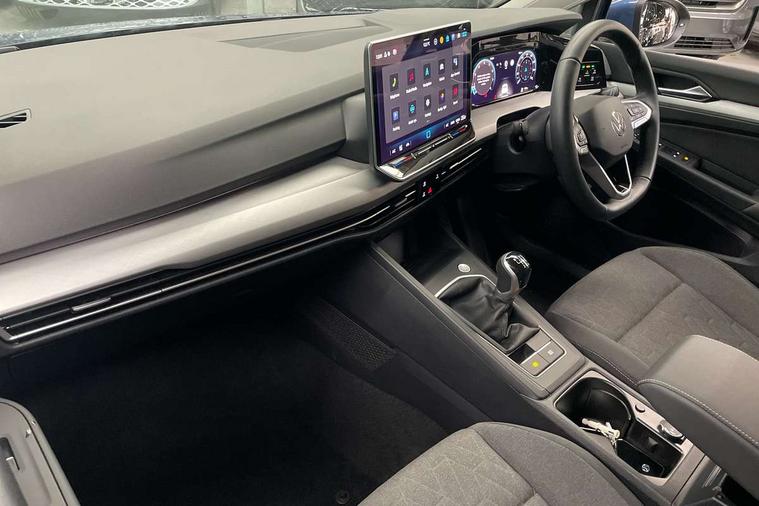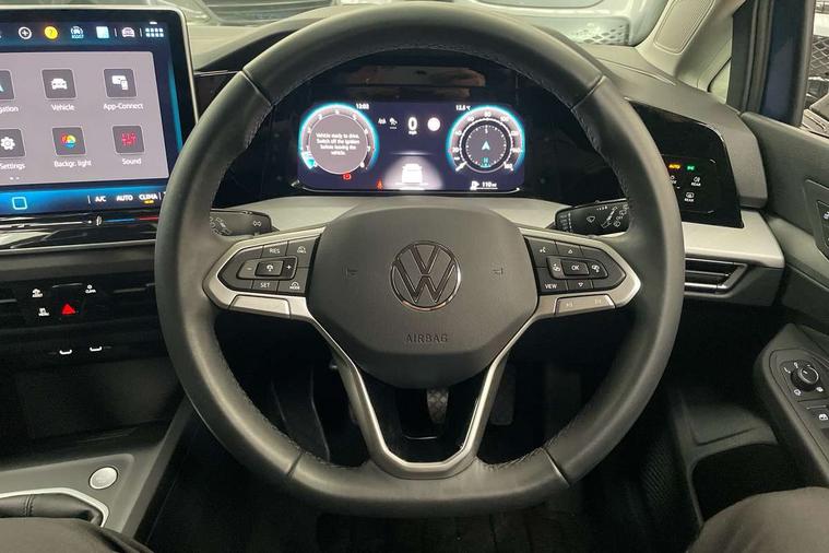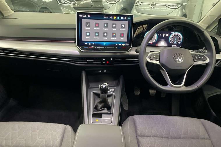 Activated carbon canister, Adaptive cruise control (ACC), Advanced driver attention and drowsiness monitor, Dynamic road sign display, E-Sim card for online connectivity, eCall emergency call system, Multi-color Digital cockpit pro, selection of different info profile possible, Multifunction front facing camera for distance control, Navigation system, Oncoming vehicle braking when turning including swerve support, Preparation for light assist system, Speed limiter, Speedo, rev counter, electronic odometer, trip, service interval display, exterior temperature and fuel gauge, Voice enhancer and voice control, Warning signal and warning light for front and rear seatbelts not fastened, We connect plus preparation, We connect preparation, Wireless app connect, Petrol Particulate Filter, Start-stop system with battery regeneration (recuperation - energy recovery during braking), XDS electronic differential lock for improved traction and handling, 2 USB C ports in front, 2 USB charging sockets on the centre console in the rear charging capacity upto 45W, Comfort telephony + wireless charging, without wireless aerial connection, Digital radio reception (DAB), Diversity antenna for FM reception, Gaming platform via car app, Infotainment system with 12.9" display, Mobile phone interface with inductive charging feature, 3rd brake light, Auto dimming rear view mirror, Auto headlights, Automatic headlamp activation with Coming home and Leaving home feature, Body colour door handles, Body colour door mirrors, Exterior ambient lighting with illuminated door handles, Exterior mirrors convex on the left and aspherical on the right, Front and rear electric windows, Heat insulating windshield made of laminated glass, LED daytime running lights, Rain sensor, Rear exhaust tailpipe, Rear fog light on one side and reversing lights on both sides, Rear side wing doors, Rear tinted glass 65% light absorbing from B pillar backwards, Rear windscreen washer and wiper with interval delay, Remote electrically foldable door mirrors, puddle lights and reverse activated passenger's door mirror, Standard bumpers, Welcome light with surround lighting, 12V socket in front centre console, 12V socket in luggage compartment, 3 rear head restraints, 3 seat bench in 2nd row, Chrome plated radiator grille inserts, air vent surrounds and light switch surrounds, Front centre armrest, Front head restraints, ISOFIX anchors for child seats on outer rear bench seats and on front passanger seat compatible for i-Size, Leather gearshift handle, Luggage compartment lighting, Rear cupholder and loadthough, Single front passenger seat, Soul black instrument panel, Split folding backrest with centre armrest and unsplit rear seat bench, Standard pedal cluster, Storm grey roof lining, Sun visors with illuminated vanity mirrors, Parking and comfort pack - Golf Estate/Hatchback, 3 point height adj front seatbelts + pretensioners, 3 rear three point seatbelts, ABS, Autonomous emergency braking front assist with pedestrian and cyclist monitoring, Child locks on rear doors, Driver and front passenger airbag with front passenger airbag deactivation, Electronic parking brake with auto hold, ESC (Electronic Stability Control), Extended pedestrian protection measures, Rear disc brakes, Two tone horn, Tyre pressure loss indicator, Volkswagen roadside assistance, Alarm with interior protection, Anti theft wheel bolts, Keyless start with SAFE lock, Preparation for alcohol interlock, Nature cross brushed decorative inserts for dashboard and front door panels,