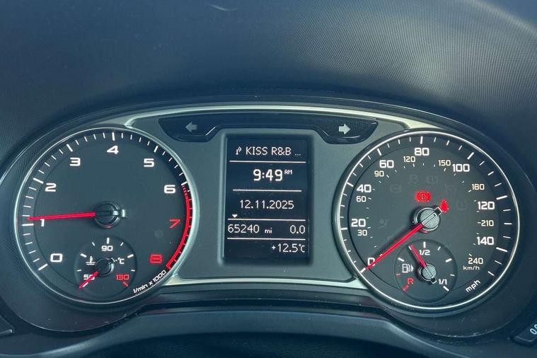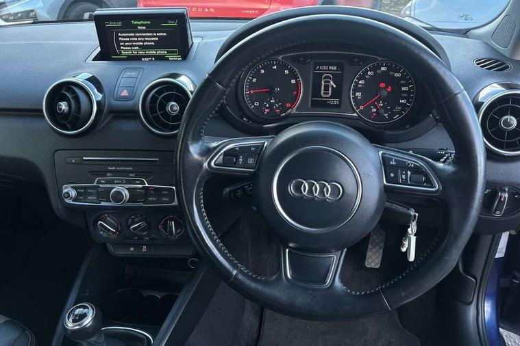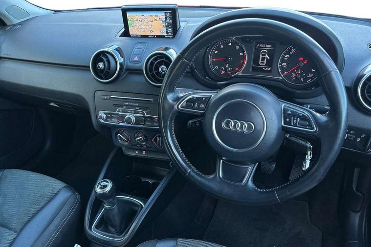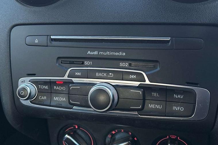 Cruise control, Driver's information system, Electro-mechanical PAS, Low washer fluid indicator, Service interval indicator, Voice control system, Additional SD card reader, Audi music interface, Bluetooth audio streaming, DAB Digital radio, Adaptive brake lights, Body coloured bumpers, Body coloured door mirrors, Electric adjustable door mirrors, Electric front windows, Front fog lights, Heat insulating glass, Heated door mirrors, Heated rear windscreen, Rear wiper, 12V Accessory socket in centre console, 3 spoke leather multifunction sports steering wheel, Adjustable rear head restraints, Cupholders in centre console, Door sills trims with aluminium inlays, Front floor mats, Front head restraints, Front seats - 'Easy Entry', Front sports seats, Height adjustable front seats, Illuminated glovebox, Isofix attachments on outer rear seats, Jack and tool kit, Leather handbrake, Lumbar adjustment for front seats, Rake/reach adjustable steering wheel, Split folding rear seats, Titanium grey cloth headlining, Non smoking pack - A1, ABS/EBD, Brake assist function, Driver and passenger side airbags, Driver/Front Passenger airbags, EDL, ESP with ASR, First aid kit, Front and rear seatbelt reminder, Front passenger airbag deactivation, Head airbags, Height adjustable front seatbelts, Rear three point seatbelts x 2, Tyre pressure monitor, Warning triangle, Locking wheel bolts, Remote control central locking, Thatcham category 1 alarm + immobiliser, Tyre repair kit,