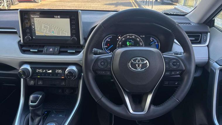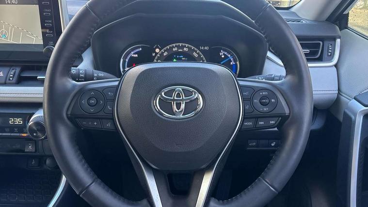 7" colour TFT display, Adaptive cruise control with lane trace assist, Adjustable speed limiter, Apple car play and Android auto, Blind spot monitoring with rear cross traffic alert, Bluetooth system, Cyclist Detection, Drive mode selector, eCall emergency call system, ECO-driving indicator, Electric power steering, EV audible alert, Hybrid system indicator, Lane departure warning system, Lights on warning, Low screen washer fluid warning, Night Time Pedestrian Detection, Pedestrial detection, Power boot opening and closing, Rear parking camera, Rear parking sensors, Remote boot door release in cabin, Tachometer, Touch 2 Go navigation system including 3D maps and voice control, Traffic sign recognition, Trip computer, Voice control system, Vehicle Stability Control (VSC), 6 speakers, 8" Multimedia display touch screen, Auxiliary socket for external MP3 player, DAB audio, Steering wheel mounted audio controls, Toyota touch media system, USB connection, Auto dimming interior mirror, Auto high beam, Automatic headlamp levelling, Automatic headlights, Automatically retractable door mirrors, Black roof rails, Body colour door handles, Body colour door mirrors, Body colour rear spoiler, Body coloured bumpers, Body coloured Shark-fin antenna, Door mirror puddle lights, Electric adjustable door mirrors, Emergency brake-light signal (EBS), Follow me home headlights, Front fog lights, Headlight cleaners, Heated door mirrors, LED daytime running lights, LED High mounted stop lamp, LED rear lights, Meshed upper front grille, Power front windows, Power rear windows, Privacy glass, Projector LED headlights, Rear screen wiper - intermittent, Rear windscreen defogger, Silver front under-run, Silver rear under-run, Trailer sway control, Turning signal integrated indicators in door mirrors, Windscreen wiper de-icer, 3 rear headrests, 60/40 split fold rear seat back, Boot light, Clean air filter, Driver and front passenger personal light, Driver and front passenger Whiplash Injury Lessening seats, Driver and passenger sunvisors with illuminated vanity mirrors, Driver seat memory function, Dual sided deck board in boot, Dual zone automatic air conditioning, Floor mats, Folding rear centre armrest, Front and rear bottle holders, Front centre armrest, Front footwell lights, Front headrests, Front seat and rear pockets, Front/rear roof mounted assist grips, Grey roof lining, Heated driver and front passenger seats, Heated steering wheel, Isofix child seat preparation, Leather gear shift with chrome surround, Leather upholstery, Light blue ambient lighting on front cupholders and open tray, Manual telescopic and tilt 3-spoke leather steering wheel with Chrome insert, Manually reclining and sliding front passenger seat, Pollen filter, Power height-adjustable sliding reclining and lumbar support for driver seat, Rear coat hooks, Rear door armrests, Rear passenger air vents, Reclining rear seats, Satin chrome interior door handles, Sunglasses holder, 3x3 point rear seatbelts, ABS/EBD, Adjustable front driver and passenger seat belt extender, Brake assist function, Child proof door locks, Collision mitigation braking system, Driver/Front Passenger airbags, Driver/front passenger side airbags, Drivers knee airbag, Electronic parking brake, Electronic Stability Programme (ESP), Emergency brake light system (EBS), Front and rear curtain airbags, Front and rear seatbelt reminder, Hill start assist, Passenger airbag cut-off device, Seatbelt pretensioners with load limiters, Traction control, Tyre pressure warning, Alarm/immobiliser, Glass-breaking alarm sensors, Light - on and Key in reminder, Remote central locking, Smart entry + Smart start, Speed sensitive auto door locking, Tilt detection sensors, Piano black centre console with silver insert, Soft-touch black lower dashboard, Soft-touch black upper dashboard with silver insert, Full size spare wheel,