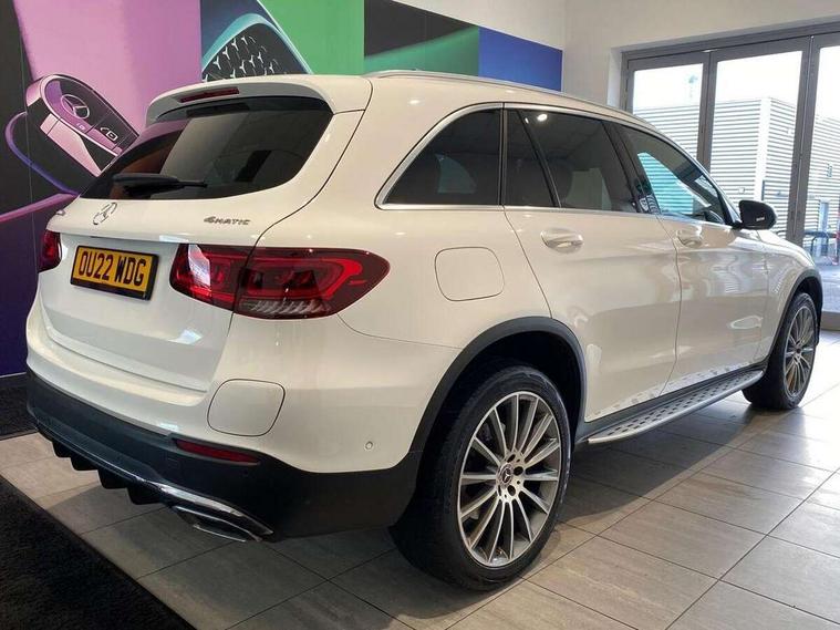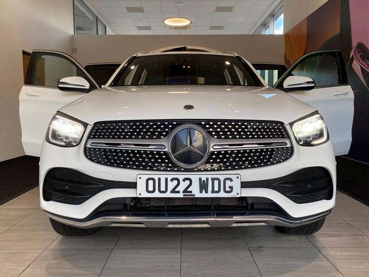Active parking assist with parktronic system, Attention assist, Bluetooth interface for hands free telephone, Collision prevention assist plus, Cruise control with speedtronic variable speed limiter, Direct steer speed sensitive steering, DYNAMIC SELECT with a choice of driving modes (ECO, Comfort, Sport, Sport+ and Individual), Easy pack automatic powered tailgate, eCall emergency call system, ECO start/stop function, Hard disk navigation, Hey Mercedes Voice activation, Instrument cluster with12.3-inch digital instrument cluster display. High resolution instrument cluster screen with choice of three display styles, MBUX Interior assistant, Mercedes connect me with remote online services, Multi function trip computer, Outside temperature display, rear seatbelt status indicator, Remote and charging services plus, Remote boot release, Reversing camera, Service indicator (ASSYST), Smartphone integration with Apple CarPlay and Android auto, Traffic sign assist, 1 x 3 pin domestic 8m straight charging cable, 1 x type 2 and 3 phase 4m straight wallbox cable, 4MATIC permanent four wheel drive, 50 litre fuel tank, 9G TRONIC plus automatic transmission with steering column gear selector, DIRECT SELECT steering wheel gearshift paddles, Diesel particulate filter, Sports suspension tuned for improved handling and driving dynamics, 5 speakers, Frontbass loudspeakers, MBUX multimedia system with DAB digital radio and touchpad, Media display 10.25-inch touchscreen display, Pre installation for Mercedes Benz Link, USB ports x 2 in centre console, Adaptive brake lights, Aluminium roof rails, AMG bodystyling - AMG front apron with sporty air intakes and chrome trim element, AMG diffuser-look rear apron with insert in black, Body colour door mirrors, Body coloured bumpers, Electric windows one touch open/close, Electrically adjustable and heated door mirrors, Front, side and rear exterior chrome trim, Headlamp assist automatic headlamp activation, High level LED brake light, LED high performance headlamps with integrated LED daytime running lights, LED tail lamp, Motor way mode function and locator lighting, Privacy glass with dark glass from B pillar backwards, Radiator diamond grille, Rain sensor windscreen wipers, Range adjustable headlights, Rear side wing doors, Rear wiper, Roof spoiler, Running boards, Tinted glass all round with single layer safety glass, Tinted rear windows, Two chrome plated tailpipe trim elements, Variable front intermittent wipers, 2 way rear head restraints, 3-spoke multifunction sport AMG steering wheel in black nappa leather with flattened bottom section, chrome insert and perforated leather in grip area, 40:20:40 split folding rear seats, Ambient lighting, AMG floor mats with edging and embroidered AMG lettering, AMG sports seats, Artico man-made leather upper dashboard with contrast topstitching, Automatic child seat recognition sensor, Black roof lining, Dividing net - rear, Double cup holder in centre console, Easy-pack removable load compartment cover, Front armrest with storage box, Front door sills with Mercedes Benz lettering, Front head restraints, Front passenger seat, Front seats with electric adjust (backrest, height and seat cushion inclination) with 4 way electric lumbar support and manual cushion depth adjust, Heated front seats, Height/reach adjustable steering column, Illuminated and lockable glove compartment, Leather upholstery, Pre-entry climate control, Rear top tether child seat ISOFIX attachment, Sports pedals with stainless steel surfaces and rubber studs, Steering wheel with touch control buttons, THERMOTRONIC 3 zone automatic climate control, Interior lighting pack - GLC, Mirror pack - GLC, Storage pack - GLC, 3 rear 3 point seatbelts, Active bonnet, Adaptive brake system with HOLD function and brake drying in the wet, ASR, Black seat belts, Brake calipers with Mercedes-Benz lettering + perforated brake discs, Child proof door locks, Dual-stage airbags - driver and front passenger, driver knee bag and window bags for driver, front passenger and rear passengers, Electronic parking brake, Electronic stability programme (ESP) with curve dynamic assist and cross wind assist, Front and rear seatbelt reminder, Front passenger seat occupancy sensor, Hill hold function, Radar-based recuperation, Tyre pressure monitoring system, Warning triangle and first aid kit, Alarm system/interior protection/immobiliser, Automatic door locking, KEYLESS-GO starting function, Remote central locking, Open pore black ash wood trim, 20" AMG multi spoke design alloy wheels painted in titanium grey with high sheen finish, Run flat tyres, Summer tyres,