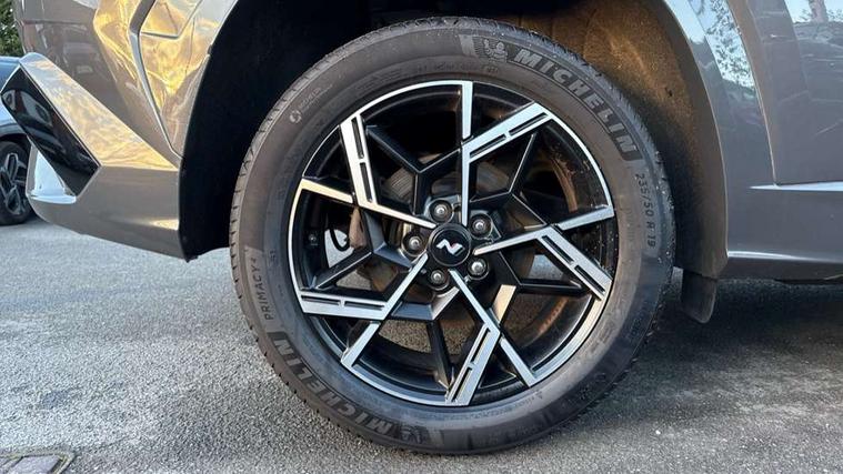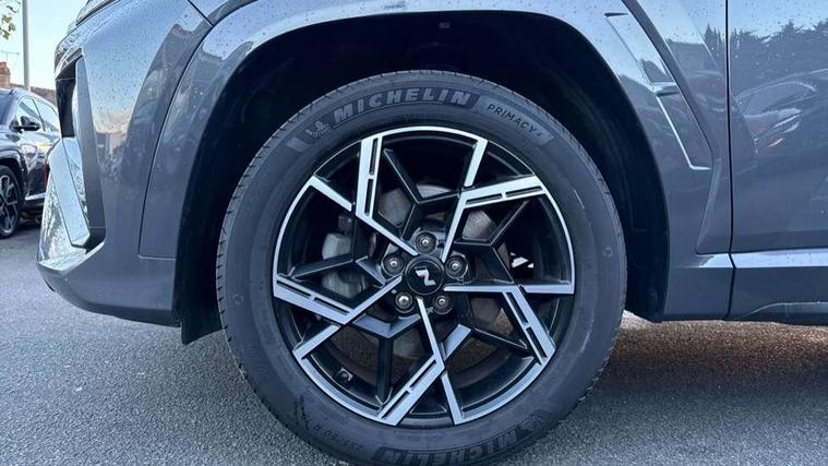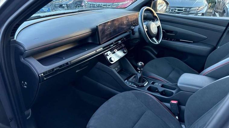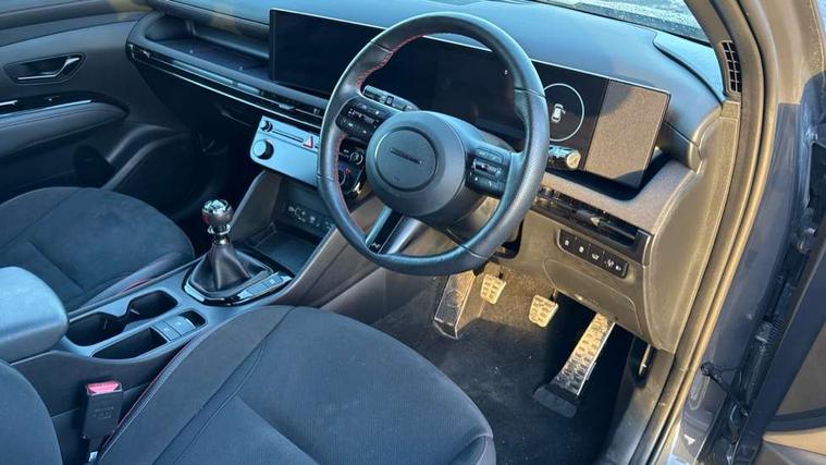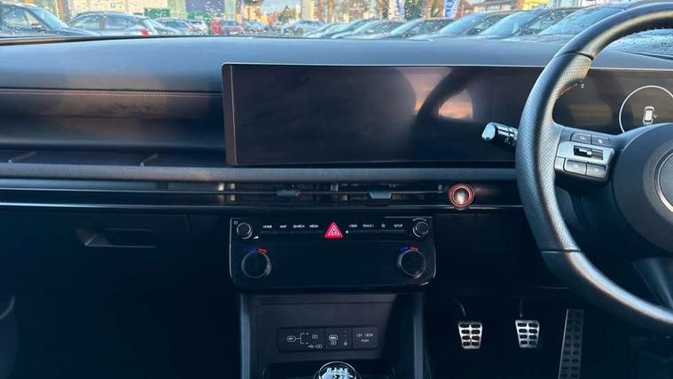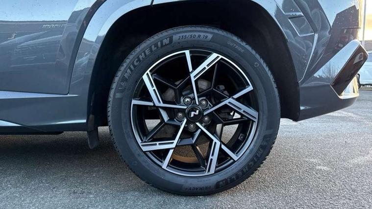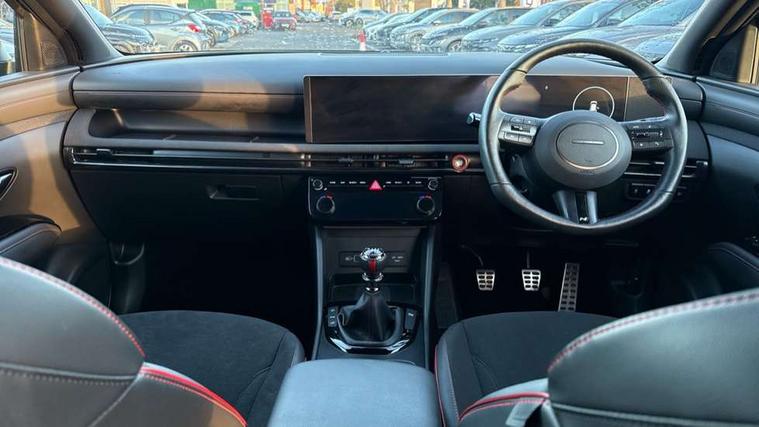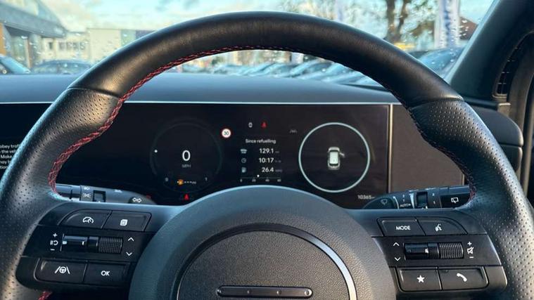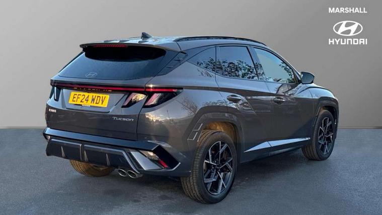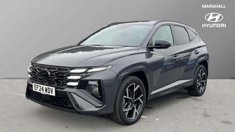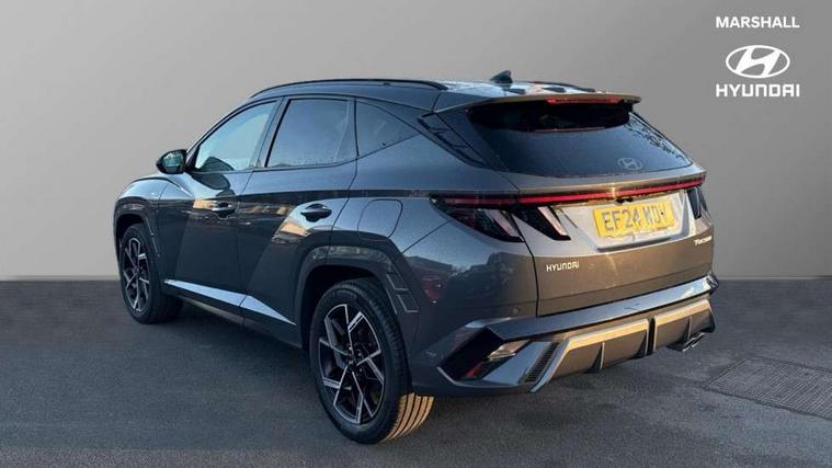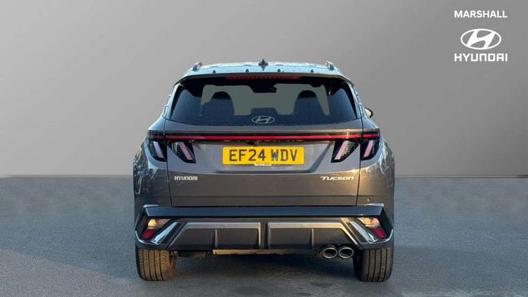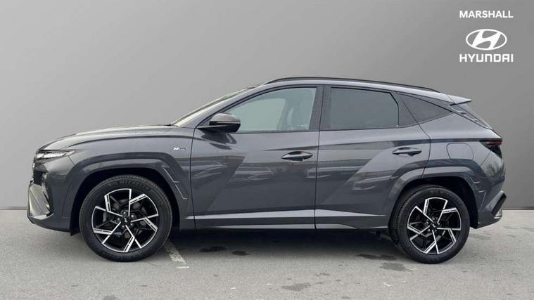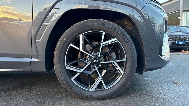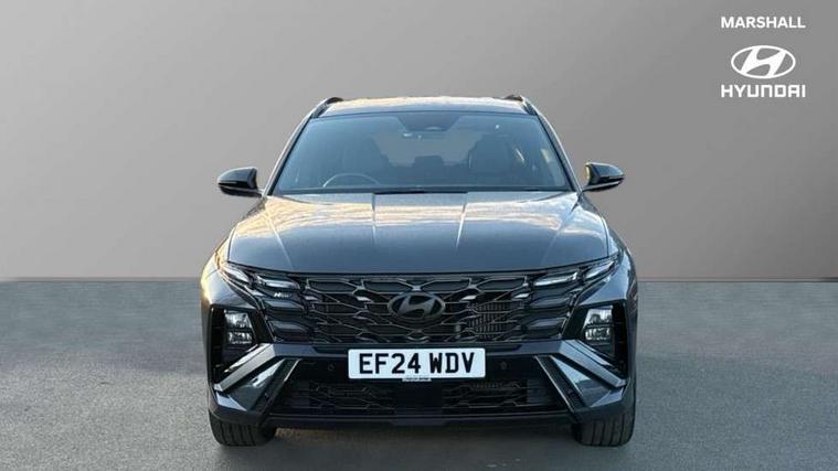 12.3" LCD display with driver's supervision instrument cluster, 12.3" widescreen navigation with bluelink and mapcare, Bluetooth system, Cruise control, Digital clock, Drive mode selector, Driver attention warning, E-call, Emergency stop signalling system, Forward Collision Avoidance Assist (FCA) - Car, Pedestrian and Cycle, Forward Collision Avoidance Assist Junction Turning (FCAJX), Front and rear parking sensors, Hyundai road side assistance, Intelligent speed limit assist, Lane follow assist, Lane keep assist, Over the air updates(OTA), PAS, Rear camera and guidance parking system, Rev counter, Smart power tailgate, Tailgate open warning light, Trip computer, Trip odometer, Voice recognition, Water temperature gauge, Windscreen washer fluid sensor and warning indicator, Wireless Apple CarPlay/Android Auto, Wireless phone charging pad, 2 front and 2 rear speakers with 2 tweeters, 2 front and 2 rear USB-C ports, DAB Digital radio, Steering wheel mounted audio/phone controls, Adjustable intermittent front windscreen wipers with aero wiper blade, Auto dimming rear view mirror, Automatic defog system, Automatic headlights with dusk sensor, Automatic windscreen wipers with rain sensor, Body colour bumpers, Body colour door mirrors with integrated indicators, Body colour exterior door handles, Body coloured wheel arches, Electrically adjustable, heated and power folding door mirrors, Follow me home headlights, Front and rear electric windows with anti-trap mechanism and one touch control, Front fog lights, Glossy black bumper mouldings, LED daytime running lights, LED Headlights, LED rear lights, Positioning Lights - LED, Privacy glass - Rear windows and tailgate, Rear side wing doors, Rear wash/wipe with intermittent wipe setting, Roof rails, Soft touch rear door paneling, Tinted glass with windscreen shade band, Trailer stability assist, 12V power outlets in front console and luggage compartment, 3 seat bench in 2nd row, 40/20/40 split folding rear seat, 64 colours interior ambient lighting, Adjustable head restraints (Up and down), Cupholders in rear armrest, Door courtesy lights, Driver and passenger sunvisors with illuminated LED vanity mirrors, Driver's seat manual height adjust, Dual zone climate control, Front and rear door pockets, Front armrest with storage box, Front centre console and door bottle holders, Heated front seats, Heated steering wheel, Height/reach adjustable steering column, Illuminated/air conditioned glove compartment, ISOFIX child seat anchorage points attached on outer rear seats, Leather wrapped steering wheel and gear knob, Leather/faux textile suede upholstery, LED interior lighting, Luggage compartment lighting, Luggage cover, Luggage hooks, Luggage net, Manual height adjustable front passenger seat, Map and reading lights, Metal pedals, Rear seat remote folding function, Rear side window sunblind, Reclining rear seats, Retractable load cover, Single front passenger seat, Sunglasses holder, Touch sensitive climate controls with temperature dials, TUCSON branded metal door scuff plate, Underfloor boot compartment, N Line design package - Tucson, N Line interior design package - Tucson, Trailer wiring package - Tucson, 3x3 point rear seatbelts, Active bonnet, Airbag - Front, front side, curtain and centre front airbags, Anti-lock brake system (ABS), Brake assist function, Childproof rear door locks, Curtain airbag roll over sensor, Downhill brake control, Electric parking brake, Electronic stability control, Front and rear seatbelt reminder, Front passenger airbag deactivation switch, Front seatbelt pretensioners, Hill start assist control (HAC), Multi-Collision braking, Outer rear seatbelt height adjustment, Seatbelt height adjustment for front seats, Traction control, Tyre pressure monitoring system with individual tyre pressure display - TPMS, Vehicle stability management, Deadlocks, Immobiliser, Locking wheel nuts, Remote control central locking, Smart key with keyless entry and engine start/stop button, Speed sensitive auto door locking, Thatcham category 1 alarm, 19" Alloy wheels, Tyre repair kit,