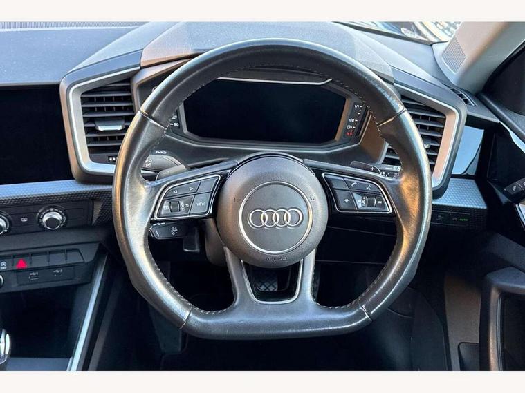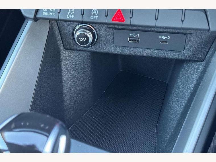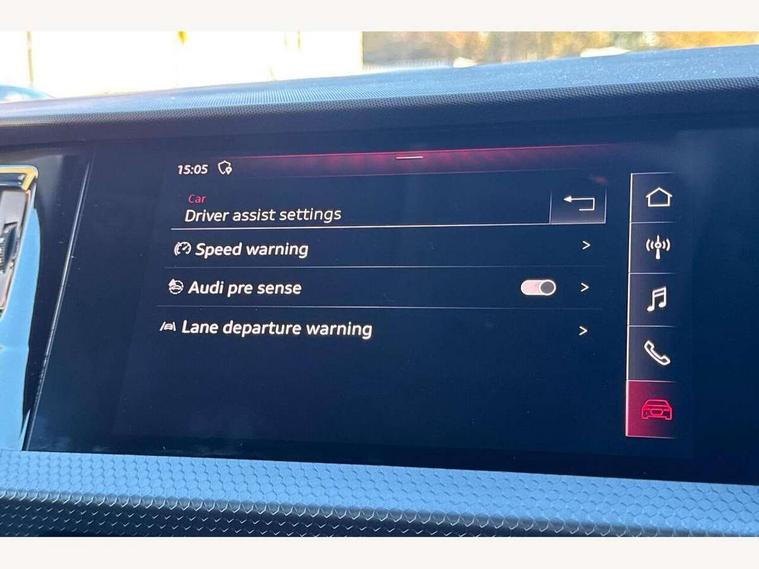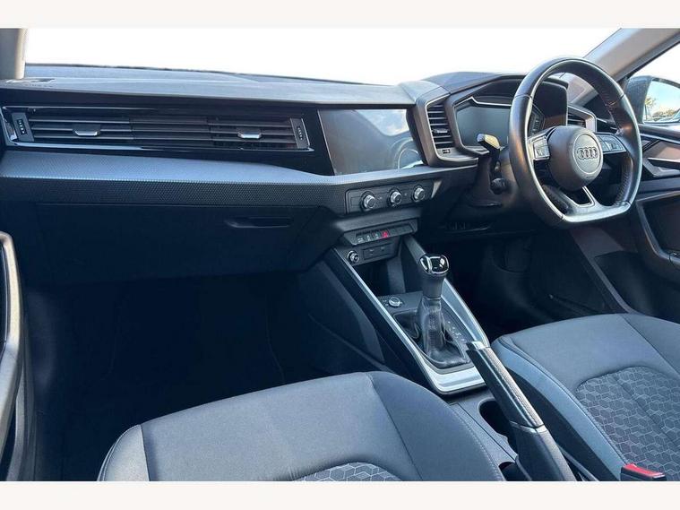 10.25" Digital instrument cluster display classis style instrument dials + speed, odometer, time, outside temperature, telephone menu + fuel level warning, Audi connect safety emergency and service including E-call, Audi drive select - power steering assistance + engine + gear shift 3 preset modes (auto, dynamic, efficiency and an Individual mode), Audi smartphone interface with connect compatible smartphone via USB directly MMI display + Nav, music, third party apps controlled via MMI controller, Automatic start/stop system, Bluetooth interface, Cruise control, Driver's information system, Electromechanical power steering, Lane departure warning system, Rear parking sensor, Service interval indicator, Speed limiter, Voice control system, Washer fluid level indicator, Dynamic suspension, 1 x SDXC card reader, 1 x USB type C and 1 USB type A charging points, DAB Digital radio, MMI radio plus with 8.8" colour MMI display screen and MMI touch, Auto dimming rear view mirror, Body coloured bumpers, Body coloured door mirrors, Electric front and rear windows, Electrically adjustable, heated, folding door mirrors with integrated LED side indicator, Front side air inlets in grained matt black and C frame in titanium black, Heat insulating glass windscreen and side windows, Heated rear windscreen, LED headlights with LED rear lights + dynamic rear indicators + headlight adjustment and high beam, turning light + LED daytime running lights, Radiator grille and rear diffuser in matt titanium black, Radiator protective grille frame in matt aluminium silver, Rain and light sensors, Rear fog lights, Rear wiper, Scandium grey tailpipe trim, Side front spoiler lips in grained matt black, 12V socket in centre console with two cup holders, 3 rear seats with headrests, 40:60 Split folding rear seat or folded fully, Door sill trims with aluminium inlay, Driver and passenger seat with manual height adjust with forward and backwards adjustment, Front head restraints, Front/rear floor mats, Height and reach adjustable steering wheel, ISOFIX child seat mounting for front passenger and outer rear seats including top tether attachment point of outer rear seats, Leather gear knob with aluminium trim, Leatherette handbrake grip, Luggage compartment light with front and rear reading lights, Manually adjustable lumbar support in front seats, Novum cloth upholstery with front sport seats, Titanium grey cloth headlining, Luggage compartment pack - A1, 3x3 point rear seatbelts, Audi pre-sense front with pedestrain and cyclist recognition, Brake assist function, Driver and front passenger airbag with front side and head airbags, Electronic Stability Control including ABS, EBD, ASR and EDL, Front and rear seatbelt reminder, Front passenger airbag deactivation switch, Hill hold assist, Seatbelt height adjustment for front seats, Seatbelt monitoring, Tyre pressure warning light, Warning triangle and first aid kit, Anti theft alarm, Anti theft wheel bolts and loose wheel warning, Immobiliser, Remote central locking with 2 foldaway keys, Aluminium trim for control switches, air vents and digital instrument cluster, Silver grey accent areas including air vents, door handle recesses and centre console in diamond paint finish, Slate grey inlays polygon structure in fine paint finish,
