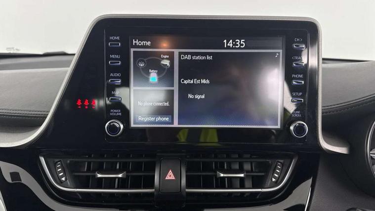 4.2" coloured TFT screen for multi-information display, Adaptive cruise control, Bluetooth connectivity, E-call, Electric power steering, Hybrid system indicator, Lane departure alert with steering control, Lane trace assist, Push button start, Push button tailgate release, Remote boot door release in cabin, Remote boot door release in key, Reversing camera, Road sign assist - RSA, Smart voice assist, Trip computer, Voice recognition, Vehicle Stability Control (VSC), 6 speakers, AM/FM radio, DAB Radio (Digital Audio Broadcasting), Toyota touch 2 multimedia system with 8" display, USB connector, Wi-fi connectivity, Anti-jam protection on power windows, Auto high beam, Auto up and down function on all power windows, Automatic headlights, Automatic headlights cut-off, Black and body coloured rear bumper, Black lower front grille, Black upper front grille, Body colour door handles, Body colour door mirrors, Body colour front spoiler lip, Body coloured front bumper, Boot door release with push button, Electric heated door mirrors, Follow me home headlights, Front and rear power windows, Front fog lights, Headlight cut off reminder, Honeycomb lower front grille, LED daytime running lights, LED High mounted stop light, LED rear brake lights, LED rear combination lights, Manual headlight levelling, Manually retractable door mirrors, Noise reduction layer on front windows and windscreen, Power adjustable door mirrors, Rear side wing doors, Rear spoiler, Rear tailgate, Rear window defogger, Rear window wiper, Reflective LED headlights, Shark fin antenna, UV-filter on driver and passenger windows, UV-filter on rear windows, 12v power outlet - front, 3 rear headrests, 3 seat bench in 2nd row, 3 spoke leather steering wheel, 60/40 split folding rear seat, Adjustable rear headrests, Adjustable speed limiter switch on steering wheel, Assist grips front and centre pillar, Audio and telephone switches on steering wheel, Black front door assist grips, Boot light, Chrome interior door handles, Cloth upholstery, Driver and front passenger personal light, Driver and front passenger Whiplash Injury Lessening seats, Dual zone automatic air conditioning, Floor mats, Front cupholders, Front head restraints, Front sports seats, Glovebox with internal light, Hard tonneau cover, Hooks for luggage holding net, Humidifying Nanoe air purifier, Illuminated entry system, Isofix attachments on outer rear seats, Leather gearshift, Light on driver sun visor, Light on passenger sun visor, Manual telescopic steering wheel, Manual tilt steering wheel, Manually adjustable lumbar support on driver seat, Manually height adjustable driver seat, Manually height adjustable front passenger seat, Manually reclining driver seat, Manually reclining front passenger seat, Manually sliding driver seat, Manually sliding front passenger seat, Microphone on front personal light, Mirror on driver sun visor, Mirror on passenger sun visor, Multimedia switches on steering wheel, Pollen filter, Shopping bag hooks, Single front passenger seat, Slow opening on lower glovebox, Voice recognition switch on steering wheel, 16 Disk front wheel brake, 3x3 point rear seatbelts, ABS+EBD+Brake assist, Electronic parking brake, Front and rear seatbelt reminder, Front passenger airbag on/off switch, Hill start assist control (HAC), Pre collision system with pedestrian detection, Pre-tensioners and force limiters, Rear door child safety locks, SRS Airbags - Driver + Front passenger, front side, front and rear curtain and driver's knee airbags, Toyota safety sense, Tyre pressure monitoring system, Tyre pressure warning system, Acoustic vehicle alert system (AVAS), Glass-breaking alarm sensors, Immobiliser, Intrusion alarm, Intrusion sensor, Motion sensor alarm, Power door locks, Power passenger window lock, Remote central locking, Black lower dashboard, Black upper dashboard, Grey deco line on upper dashboard, Matte black centre console, Tyre repair kit,