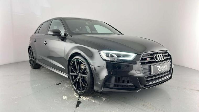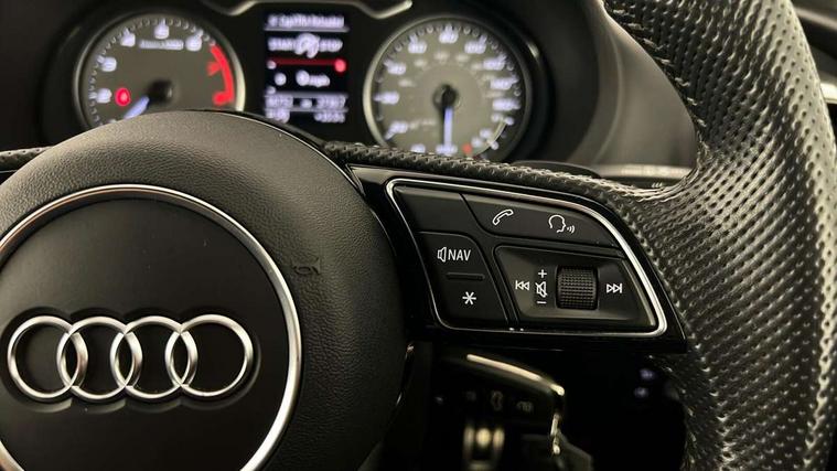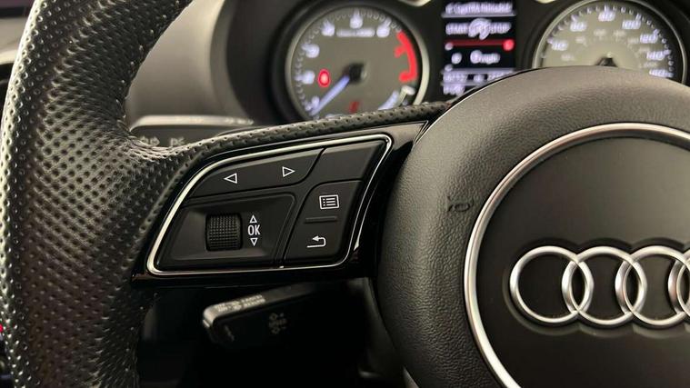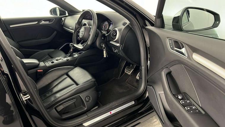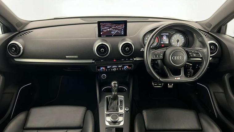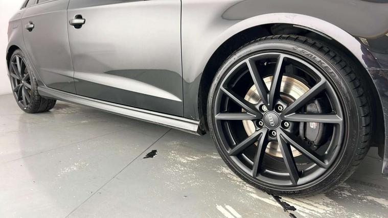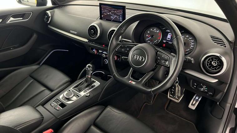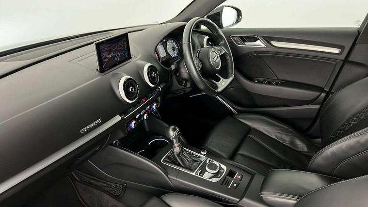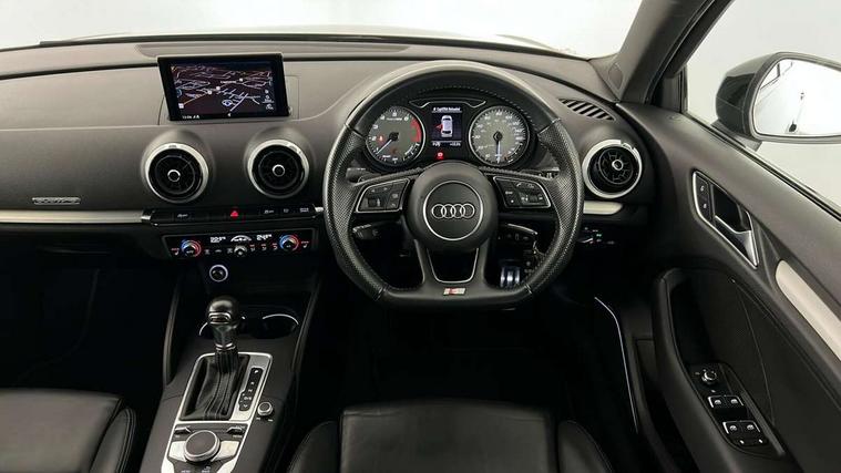 Audi connect, Audi drive select, Audi smartphone interface, Colour driver's information system display, HDD satellite navigation system radio single CD/DVD player MMI control system, Mobile telephone preparation - bluetooth interface, Progressive power assisted steering, Service interval indicator, Speed limit display, Voice control system, S sports suspension, 2 USB ports, Audi music interface, Auxiliary input socket, Bang + Olufsen advanced sound system, CD player, DAB Digital radio, MMI radio plus with 7" colour MMI screen and MMI controller, Auto dimming rear view mirror with light and rain sensors, Black door mirrors, Black window surrounds, Body colour bumpers with black insert, Body colour roof spoiler, Electric front windows, Electric operated/heated door mirrors, Electric rear windows, Headlight washers, Heated windscreen washer jets, LED daytime running lights, Matt black radiator grille, Platinum grey radiator grille with double chrome bars, Privacy glass, Rear wiper, S body styling, Twin oval chrome trimmed exhaust tailpipes, 3 adjustable rear headrests, 3 spoke flat bottomed multi-function leather steering wheel, 4 lashing points to secure luggage, Adjustable front armrest, Dual zone electronic climate control, Front and rear interior lights with delay, Front passenger seat isofix location point, Front/rear floor mats, Heated front seats, Height/depth adjustable steering column, Illuminated glovebox, ISOFIX child seat preparation+airbag deactivation, Jack and tool kit, Rock grey headlining, Stainless steel pedals, Steering wheel gearshift paddles, Storage compartment in centre console, Storage compartment under front seats, Storage compartments in doors, Black styling pack - A3/S3, LED interior light pack - A3/RS3, Non smoking pack - A3, Storage and luggage pack - A3/RS3, 3 point seatbelts on all seats, ABS/EBD, Active bonnet, Active front headrests, ASR, Curtain airbags, Driver and passenger side airbags, Driver/Front Passenger airbags, Drivers knee airbag, EDL, Electromechanical parking brake, ESC - Electronic Stability Control + traction control, Front passenger airbag deactivation, Hill hold assist, Manual rear child locks, Multi-Collision braking, Seatbelt warning, Tyre pressure warning, Warning triangle and first aid kit, Anti theft alarm, Anti-theft wheel bolts, Remote control central locking, Thatcham category 1 alarm + immobiliser, Aluminium air vent surrounds, Aluminium trim elements, Matt brushed aluminium inlays, Space saver spare wheel,