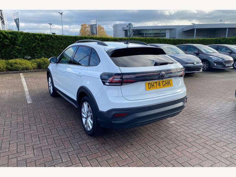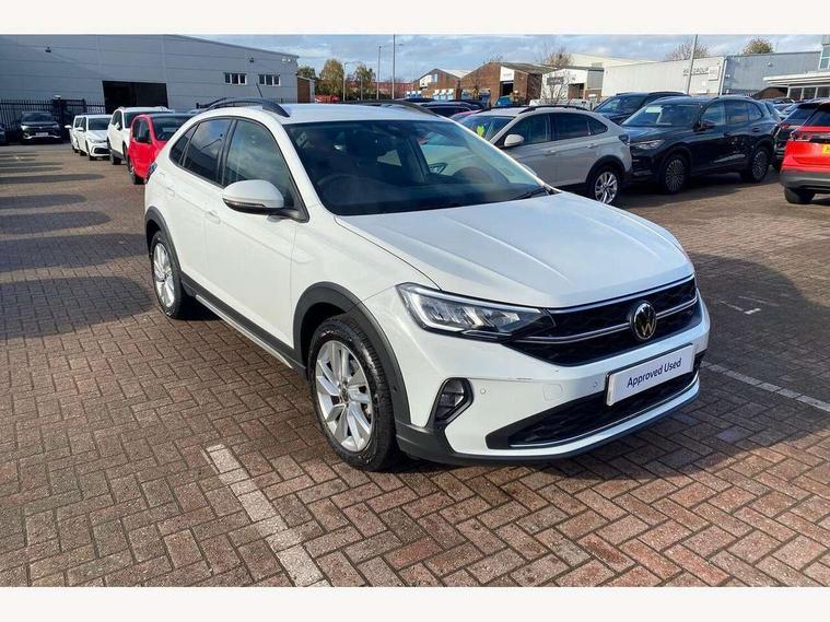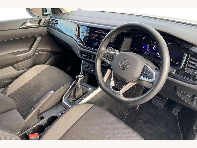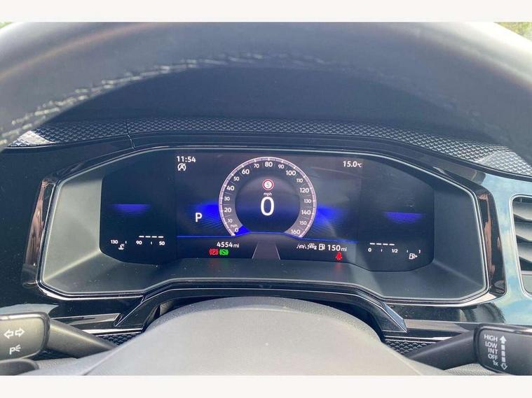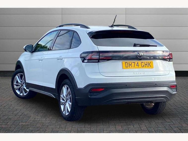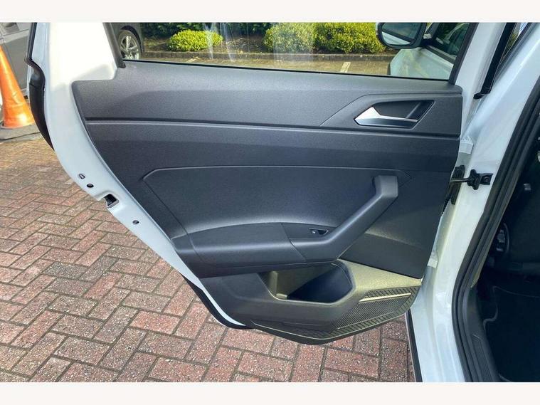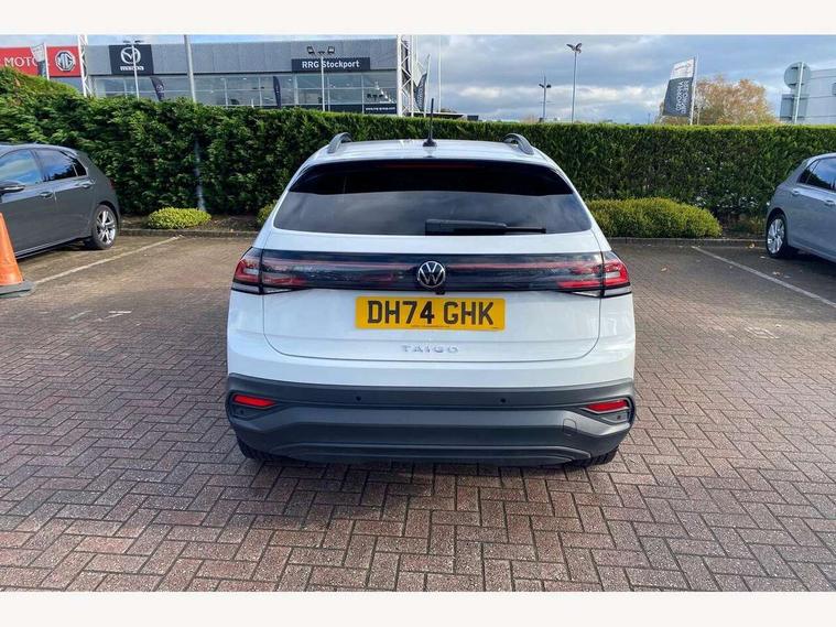 Adaptive cruise control, Advanced driver attention and drowsiness monitor, Dynamic road sign display, e-Call (emergency call), Power Steering, Rear view camera, Travel assist including emergency assist, Washer fluid level indicator, Wireless Charging including Bluetooth, Start-stop system with battery regeneration (recuperation - energy recovery during braking), WeConnect plus, Ambient lighting with logo projection, Aspherical driver's exterior mirror, Body coloured bumpers, Body coloured exterior mirror housings and door handles, Electric windows, External USB type C socket and charging sockets, Heat insulating glass windscreen, LED rear combination lamp, LED third brake light, Left convex exterior mirror, Power folding adjustable/heated exterior mirrors and front passenger exterior mirror lowering function, Rear fog light on one side, reversing light on both sides, Rear side wing doors, Rear wash/wipe with intermittent wipe setting, Side windows in heat-insulating glass, from B-pillar and rear window dark tinted, 'Slash/ Austin' Cloth upholstery, 12V socket in centre console, 2 front reading lights, 3 rear head restraints, 3 seat bench in 2nd row, Black carpets, Ceramique headliner, Child seat anchor for child seat system i-Size, 2x top tether and child seat anchor in front on front passenger side, Door and side trim panels in titan black, Driver and front passenger seat height adjustment, Front centre armrest, Handbrake lever handle in leather, Height and reach adjustable steering wheel, Leather trimmed gear knob, Leather wrapped multifunction steering wheel with paddle shift, Luggage compartment floor, Luggage compartment light, Lumbar support for driver's and front passengers seat, Seat covers in titanium black, Single front passenger seat, Split folding backrest with centre armrest and unsplit rear seat bench, Storage compartment under front seats, Sun visors with illuminated vanity mirrors, Titanium black instrument panel, Chrome Package - Taigo, Drivers assistance package - Taigo, Light and sight pack - Taigo, 2 x 3-point seatbelts/outer rear seats with ECE label, 3-point seat belts in front with pretensioner and height adjustment, 3-point seatbelt for centre rear seat, Driver and front passenger airbag with front passenger airbag deactivation, Driver and front passenger safety-optimised head restraints, Electronic stability control, Extended and predictive pedestrian/ cyclist protection, Front and rear disc brakes, Front curtain and side airbags with center airbag, Hill start assist, Manual rear child locks, Single tone horn, Tyre pressure loss indicator, Anti-theft alarm system with interior monitoring, backup horn, and towing protection, Keyless locking and starting system keyless access with safelock, Black (slush) Dashboard, Lava stone black gloss/matt decorative inserts in dash and front door panels, Low rolling resistance tyres,