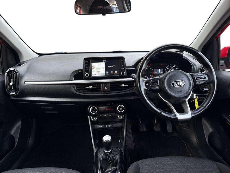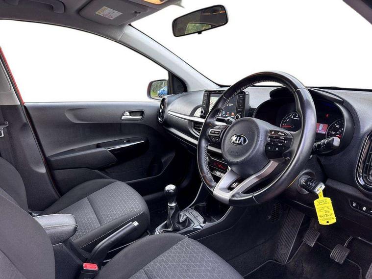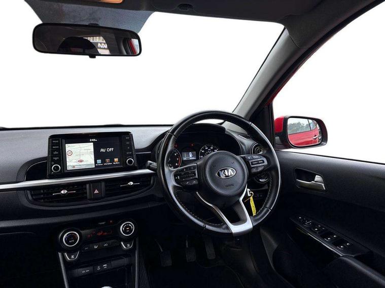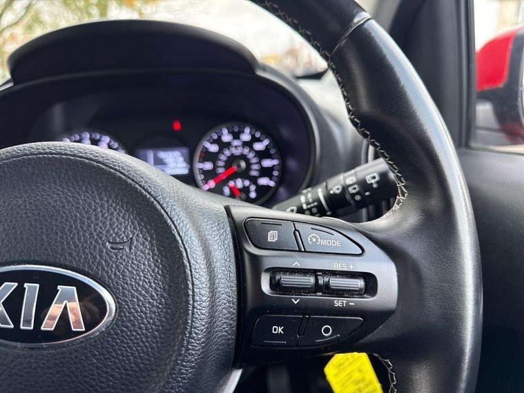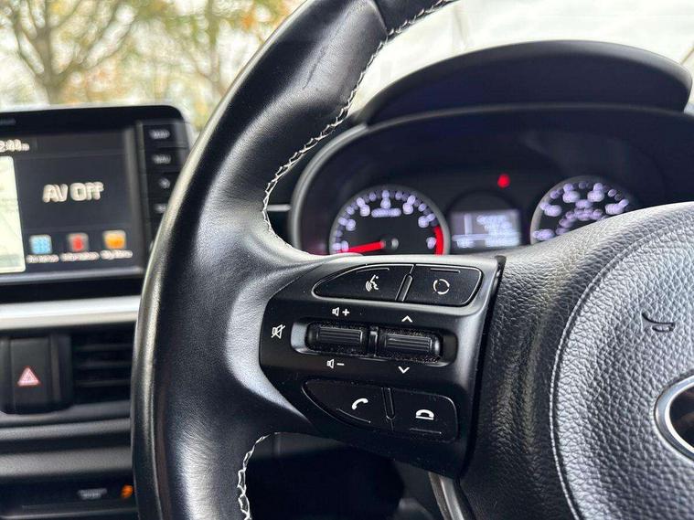 7" touch screen, Apple car play/Android Auto, Bluetooth audio streaming with voice recognition, Cruise control + speed limiter, Digital clock, Emergency stop signalling system, External temperature gauge, Kia connected services, PAS, Rear parking sensors, Reversing camera, Satellite navigation system, Supervision cluster, Tachometer, Trip computer, 6 speakers, DAB Digital radio, Steering wheel mounted controls, USB and auxiliary socket, Automatic headlights, Black grille with chrome surround, Body colour bumpers, Body colour door mirrors, Chrome door handles, Day/night rear view mirror, Daytime running lights, Electric adjustable/heated/folding door mirrors, Front and rear electric windows, Front fog lights, Headlamp levelling, Heated rear window, Rear wash/wipe, Tinted glass, Variable front intermittent wipers, Welcome home function, 12V socket, 60/40 split/folding 2nd row of seats, Assist grips, Automatic air conditioning, Centre console storage and sliding armrest, Coat hooks, Cupholders in centre console, Driver seat height adjust, Driver/passenger front seatback pockets, Front interior light, Glovebox, Height adjustable front seat head restraints, Height adjustable rear seat head restraints (x2), Isofix child seat attachment, Leather steering wheel and gear knob, Load area light, Premium cloth upholstery, Rear parcel shelf, Silver interior door handles, Slide/reclining front seats, Sunvisors with vanity mirrors, Tilt adjustable steering wheel, 3x3 point rear seatbelts, ABS/EBD, Automatic unlocking of doors in case of impact, Autonomous emergency braking, Curtain airbags, Dual front airbags, ESC + BAS + VSM + HAC, Front seatbelt pretensioners + load limiters, Front side airbags, Height adjustable front seatbelt anchors, Hill start assist, Passenger airbag deactivate switch, Rear child proof door locks, Seatbelt warning, Side impact protection, Traction control, Tyre pressure monitoring system, Anti theft alarm, Engine immobiliser, Folding key, Locking wheel nuts, Remote central door locking, Speed sensitive auto door locking, High gloss black centre fascia, 15" Alloy wheels, Tyre repair kit,